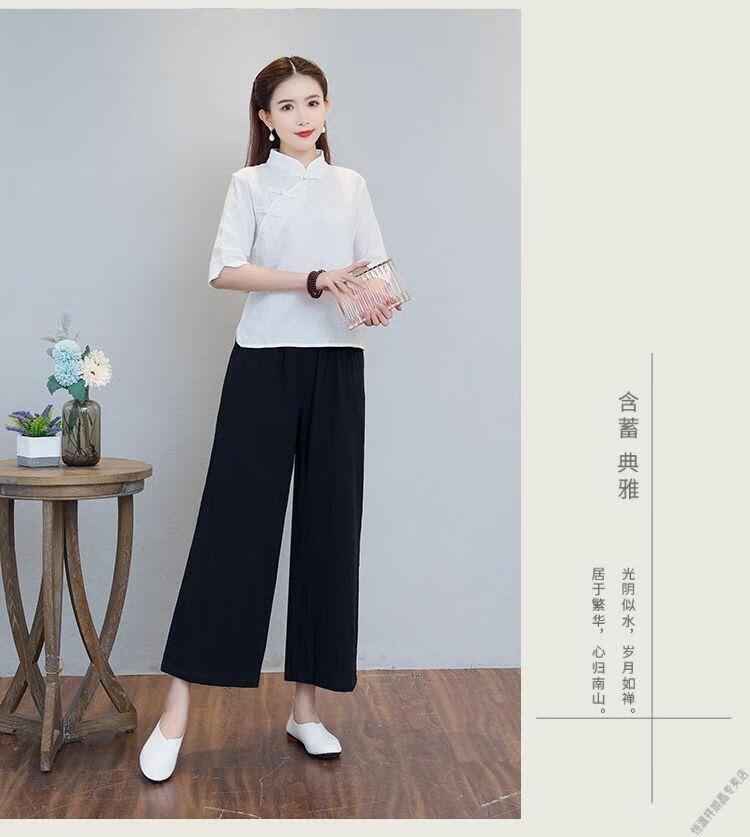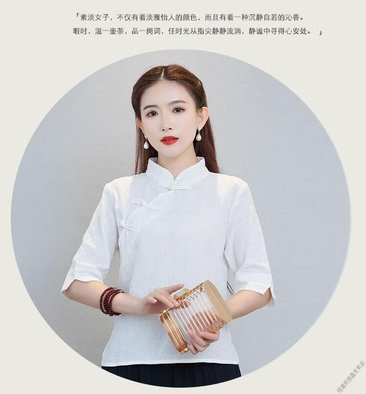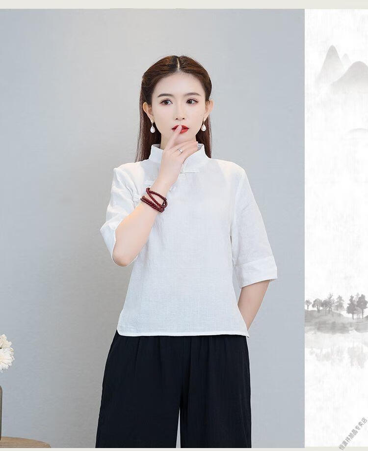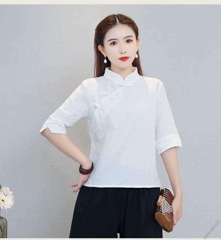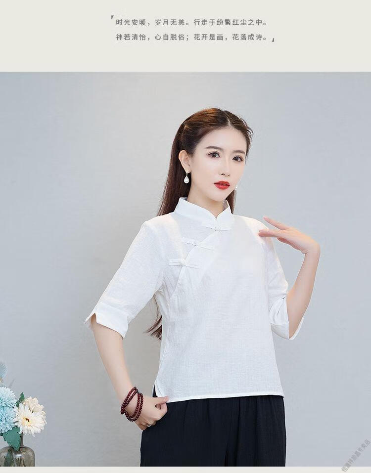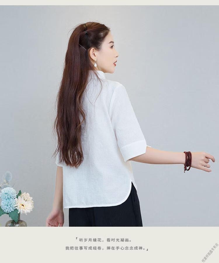Hengyuanxiang Sommer chinesischer Stil Retro-Schnalle chinesischer Laienanzug aus Baumwolle und Leinen schlanker Teeanzug Stehkragen Hemdoberteil Damen Ethno-Stil F186 weißes Oberteil M empfohlen 80-95Jin Jin entspricht 0,5 kg