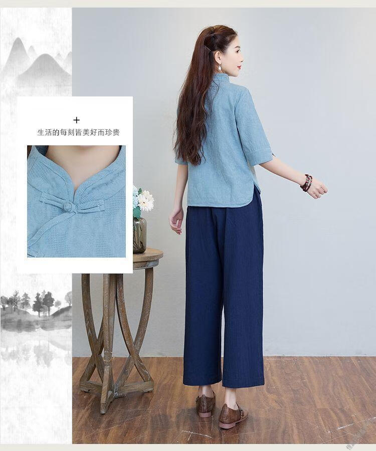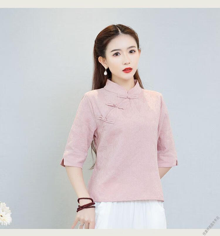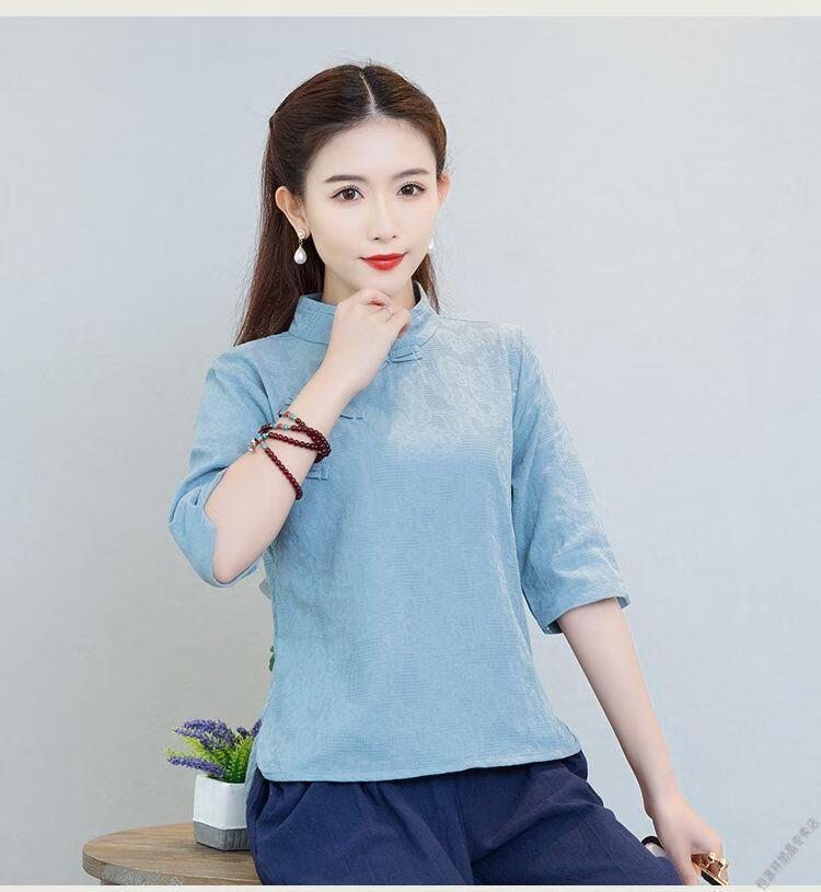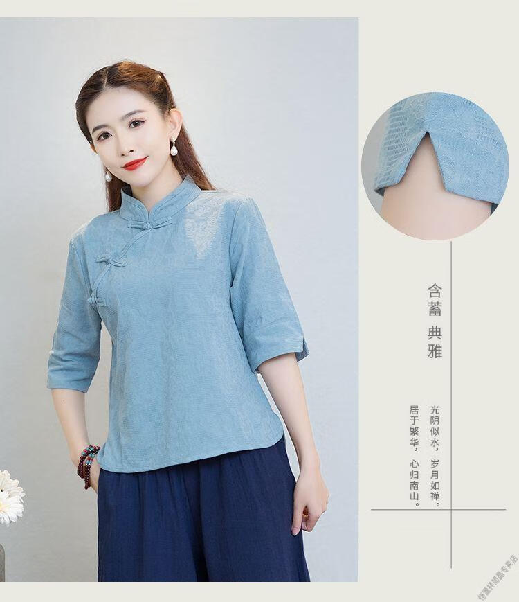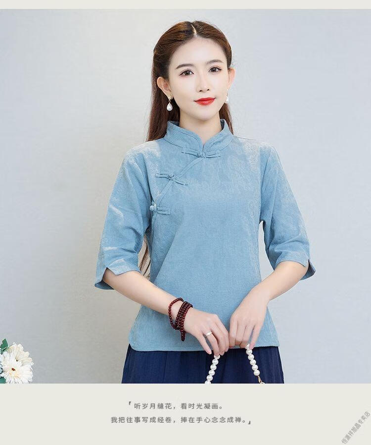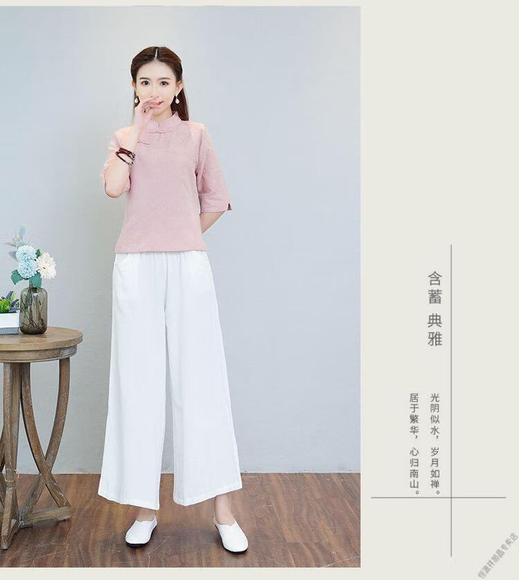 Hengyuanxiang Sommer chinesischer Stil Retro-Schnalle chinesischer Laienanzug aus Baumwolle und Leinen schlanker Teeanzug Stehkragen Hemdoberteil Damen Ethno-Stil F186 weißes Oberteil M empfohlen 80-95Jin Jin entspricht 0,5 kg