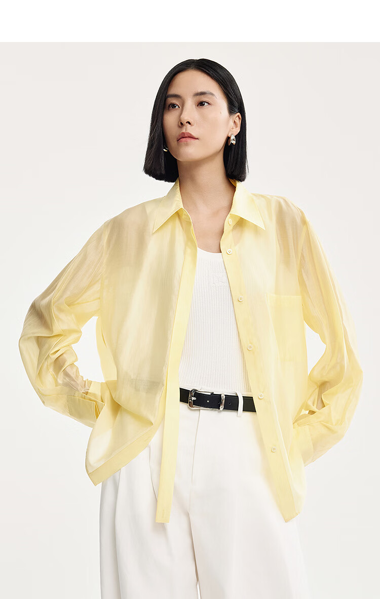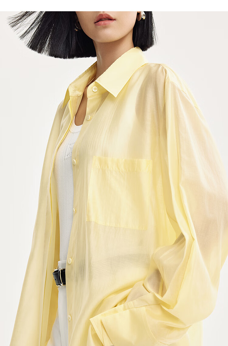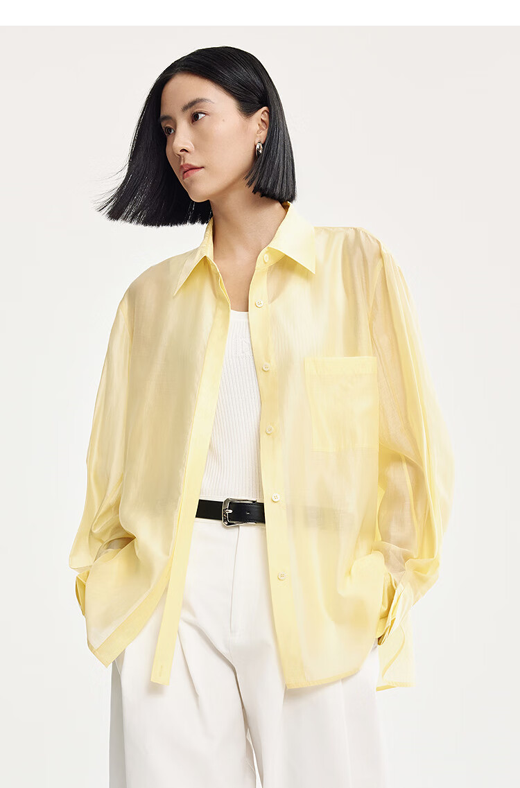 DESIGNICE 2026 spring new smart commuting temperament casual loose mulberry silk cotton long-sleeved shirt for women Chardonnay Yellow S
