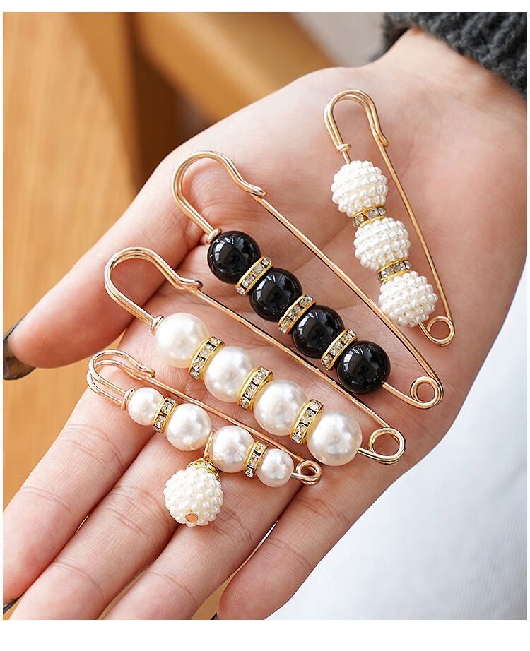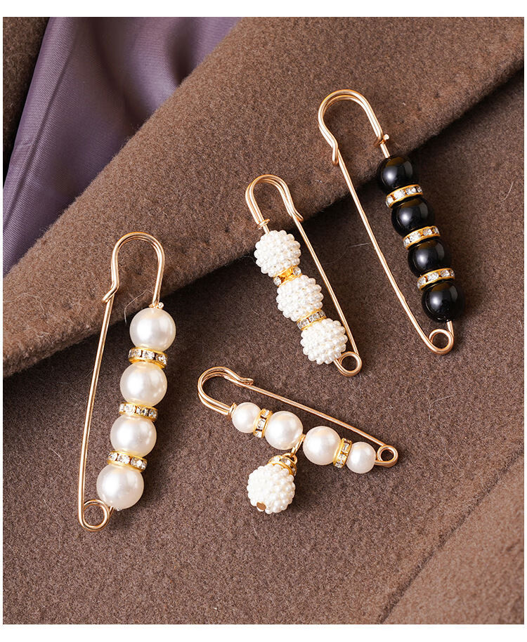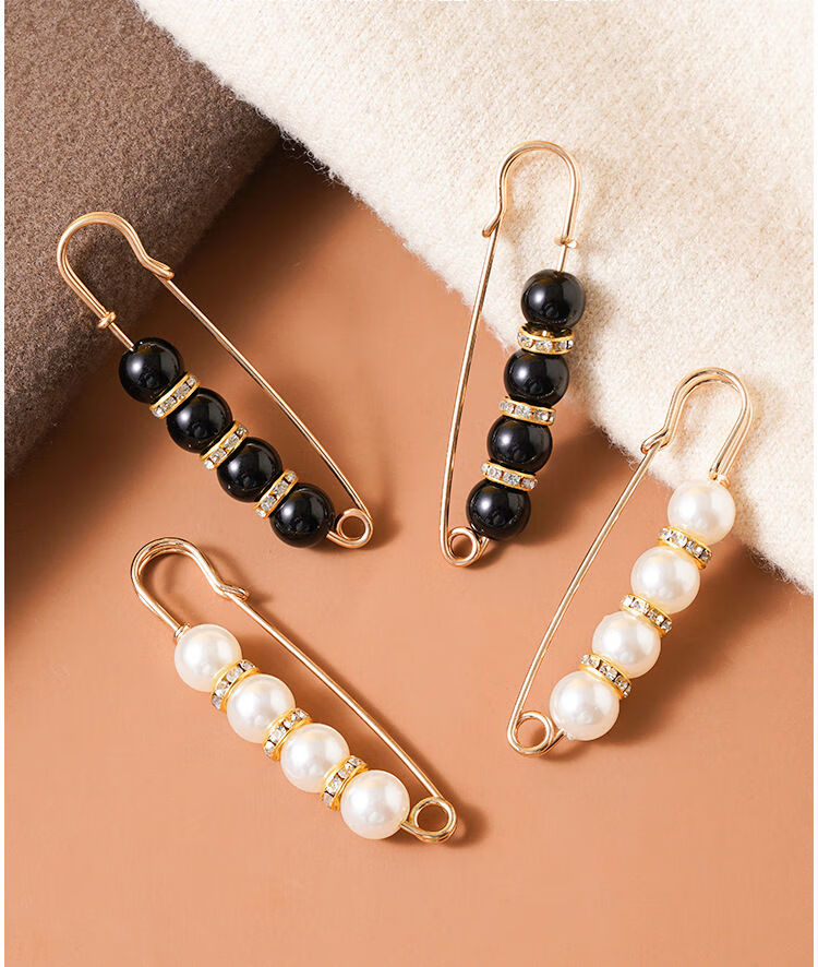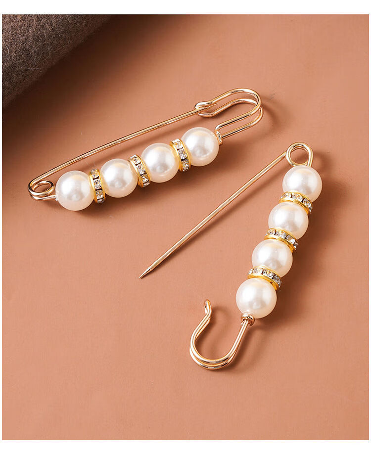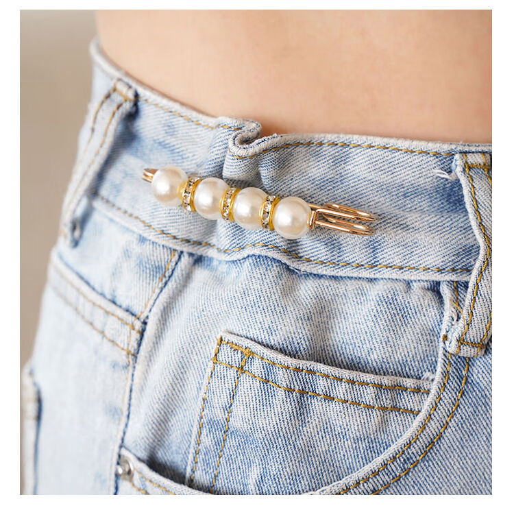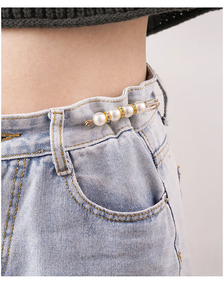 Shantou Lincun Taillennadel an der Hosentaille, kleine Nadel, Brosche, Clip-Einstellschnalle, Damennadel zum Befestigen von Kleidungszubehör, Anti-Expositions-Schnalle, zwei Perlen, 4 cm, kleine weiße