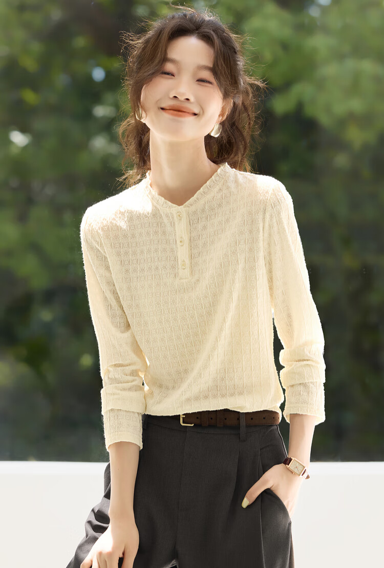 Mohan Yimei Light Commuting Fungi Shirt 2025 Autumn New Style French Style Layered Textured Shirt for Women Off-White L