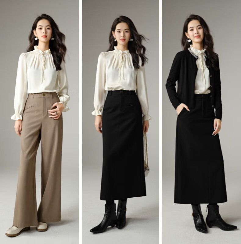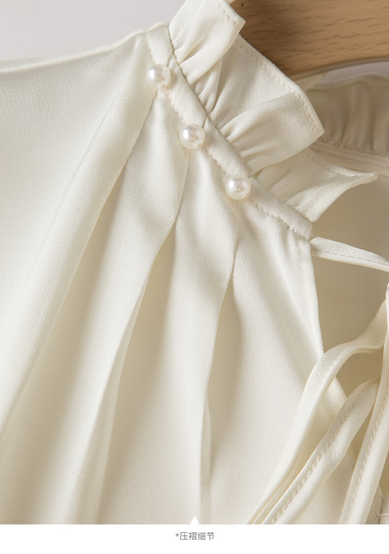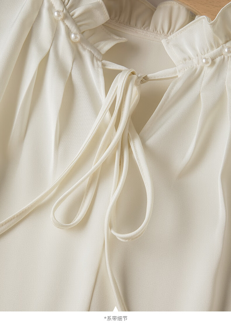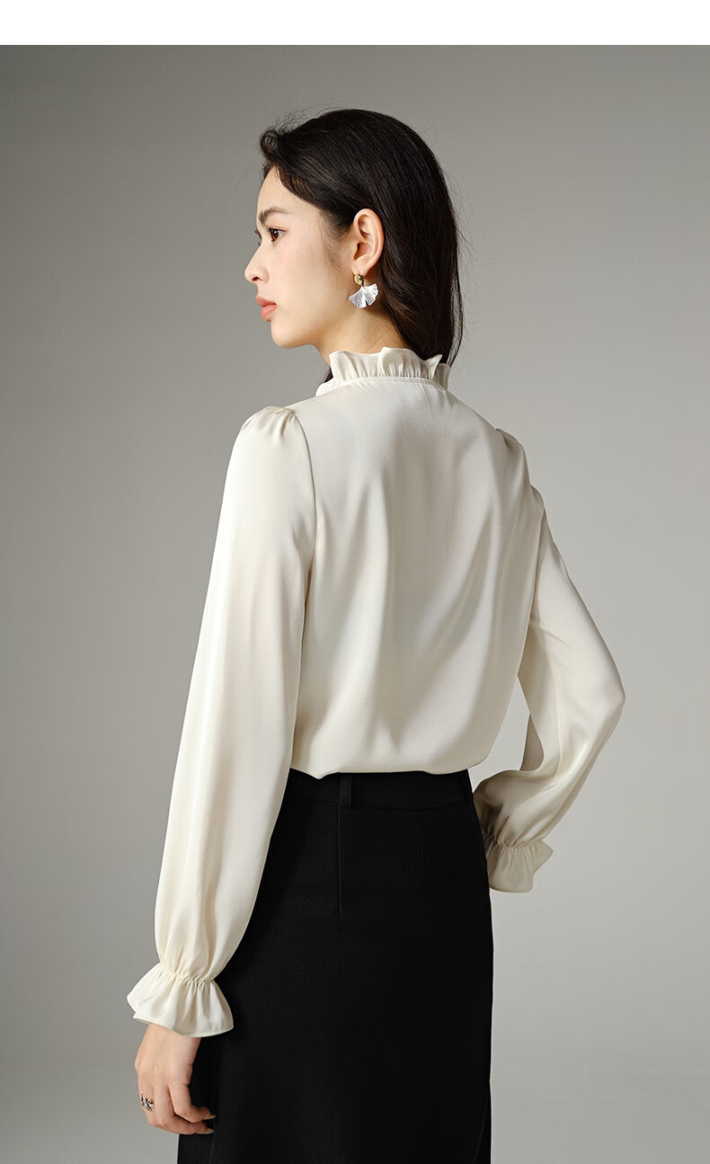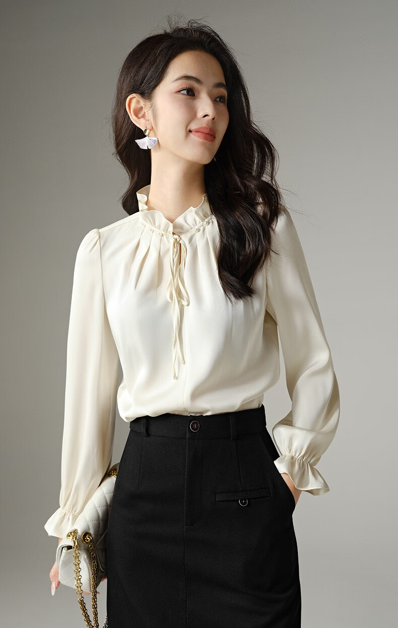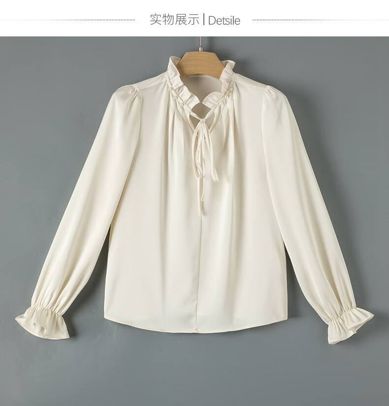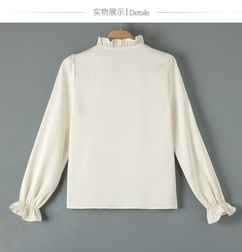 Late White New Product 2025 Autumn Solid Color Temperament Fashion Top Lace Stand Collar Skin Friendly Versatile Shirt for Women Beige L