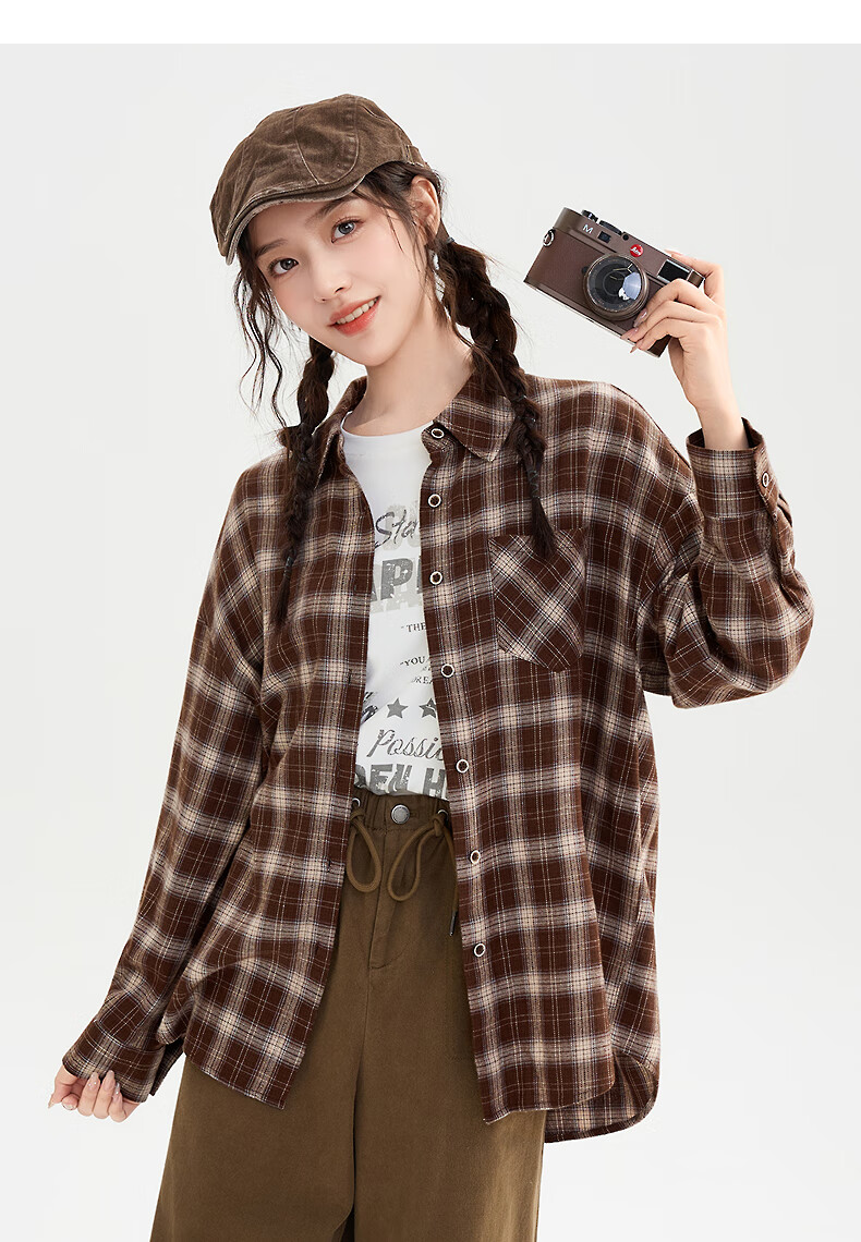 Sanfu (SANFU) langes Hemd 2025 Winter einfache Reverstasche Mode lose karierte Top Damen 512983 Ka Ge S