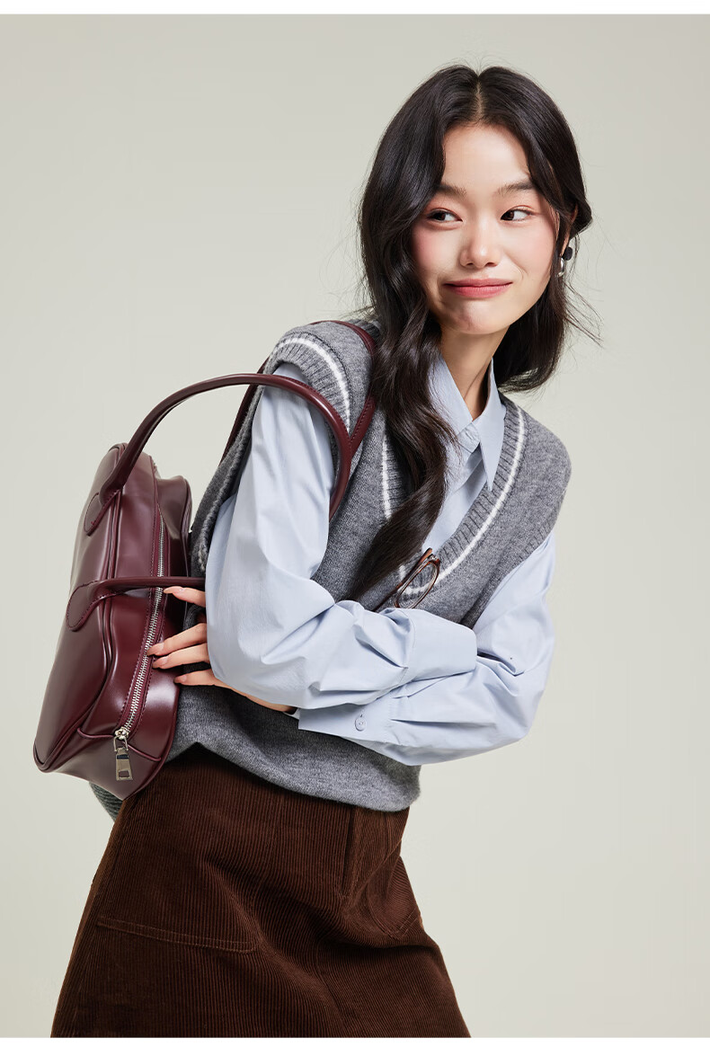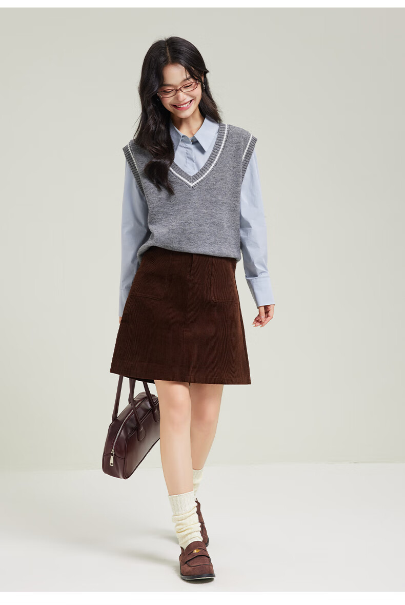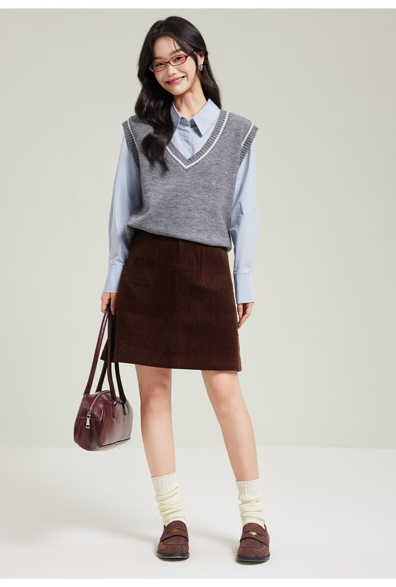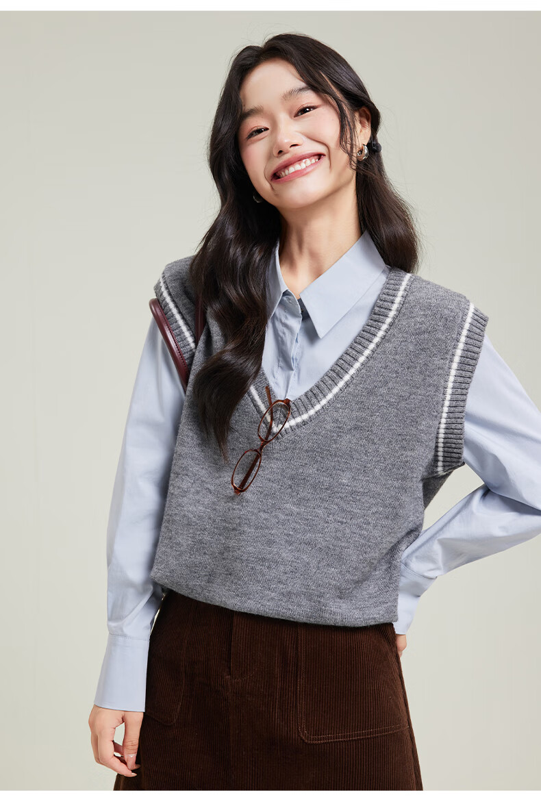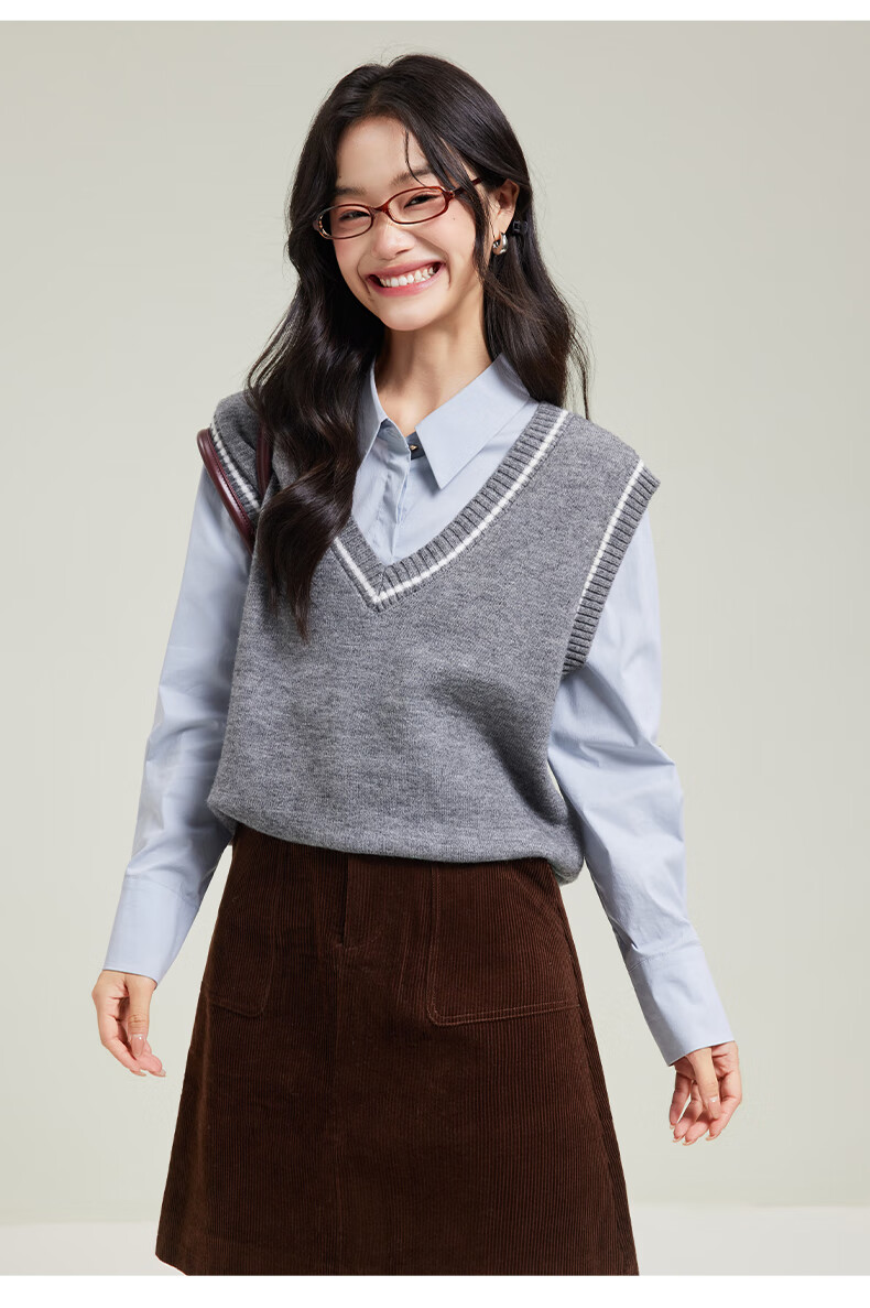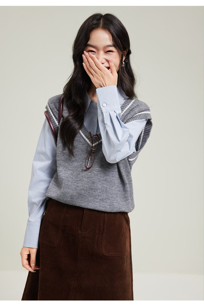 Tumanduo blue shirt women's autumn new gray loose sweater vest layered shirt two-piece top blue shirt S