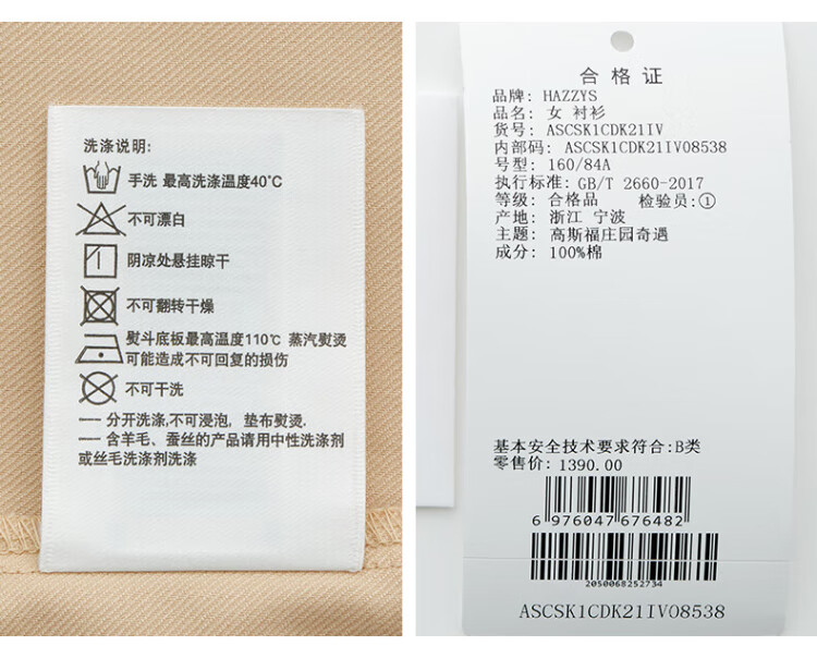 HAZZYS Haggis Women's 2025 Winter New Women's Plaid Commuting Casual Long-Sleeved Shirt Women's ASCSK1CDK21 Milky White IV S (155/80A 36)