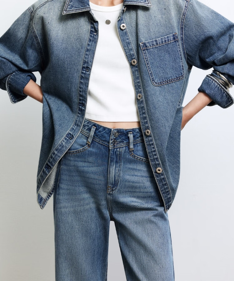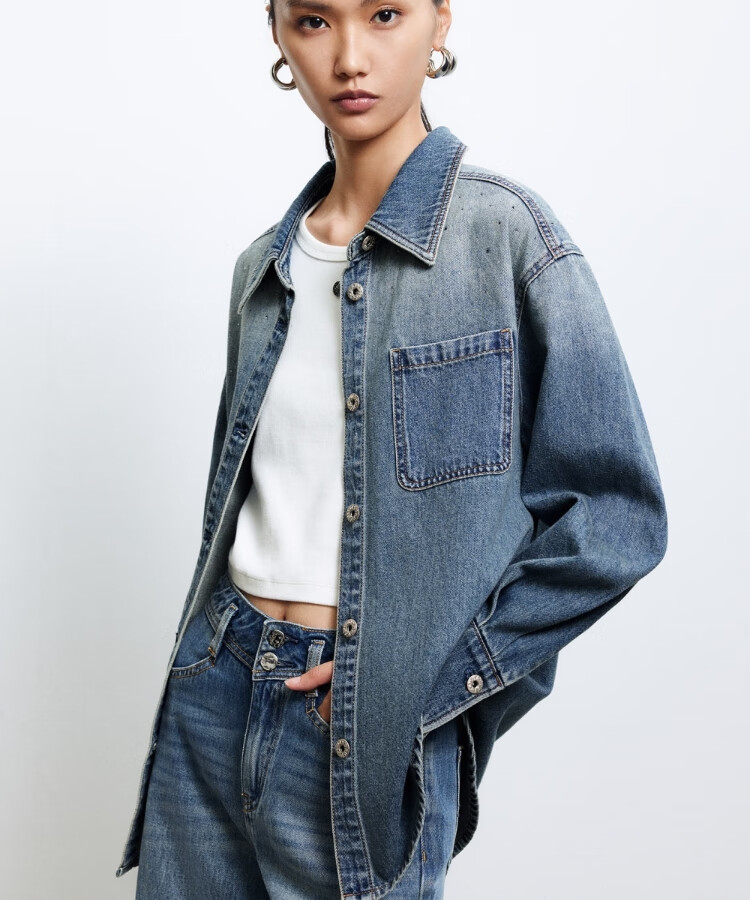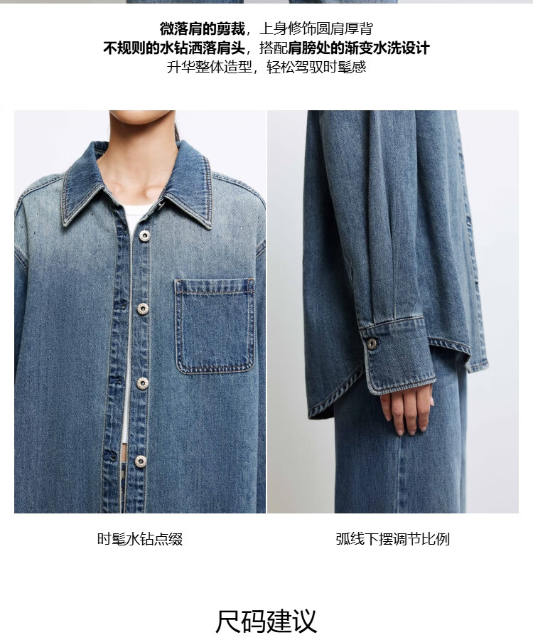 NUR 2025 neuer Herbststil, modische Persönlichkeit, Strass, lockerer Farbverlauf, gewaschenes Jeanshemd für Frauen | 125362004 J3E New Retro Washed M