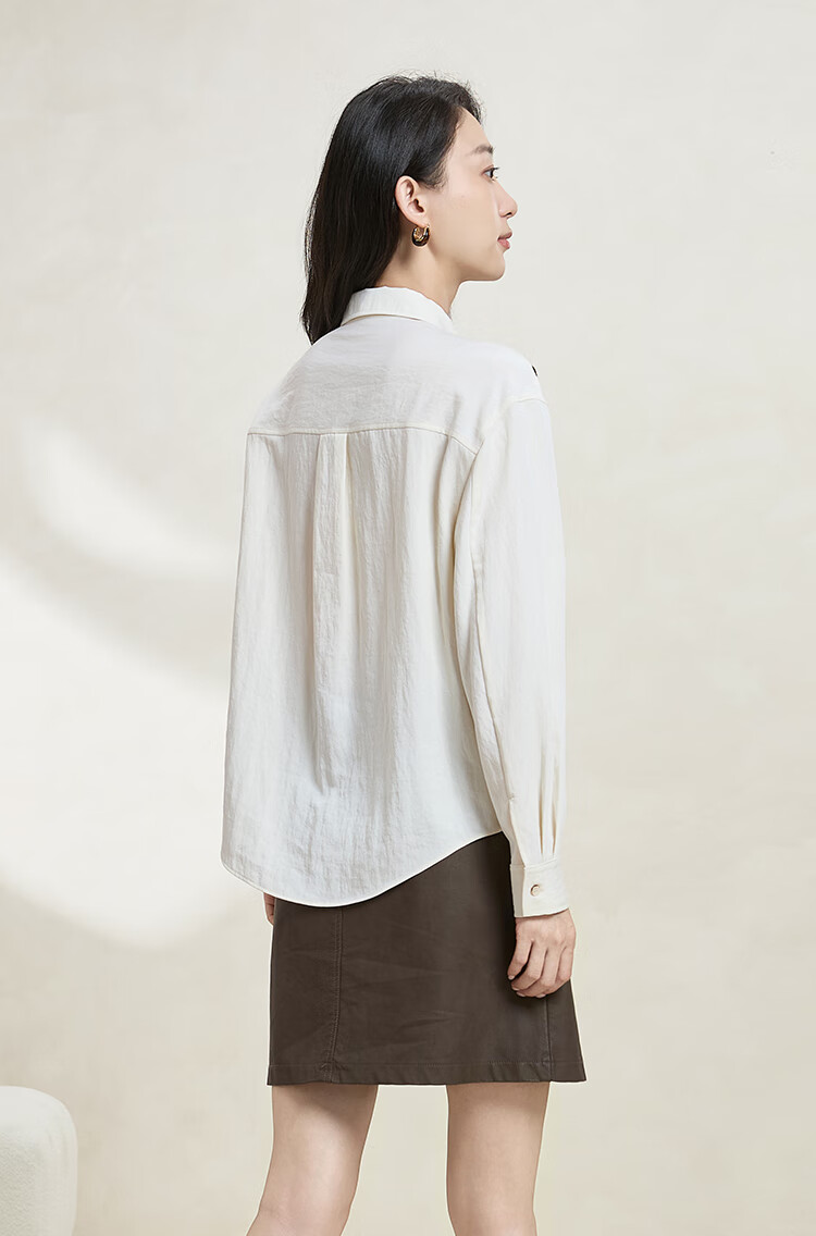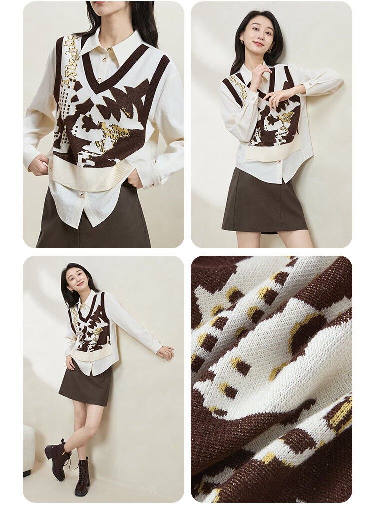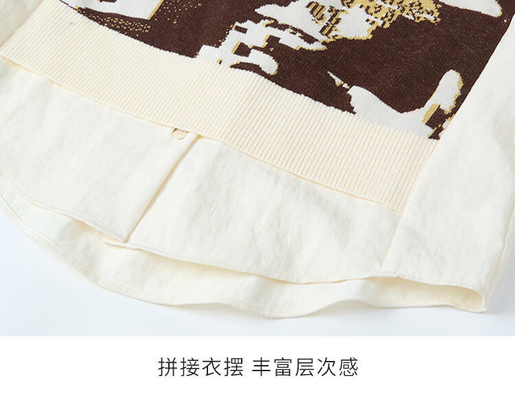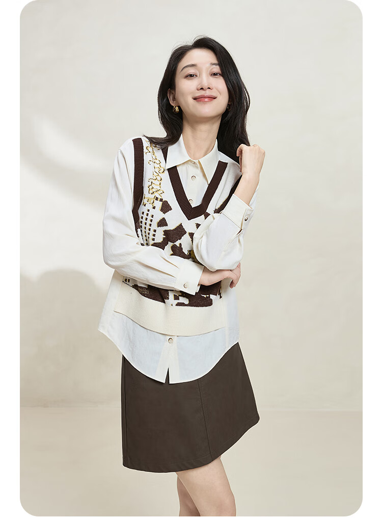 XIRAN 2025 Winter neue Mode modisches vielseitiges lässiges Design Nähte gefälschtes zweiteiliges Langarmshirt für Damen Creme Aprikose XL
