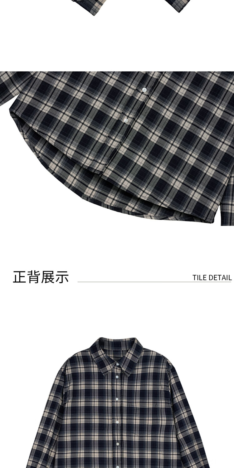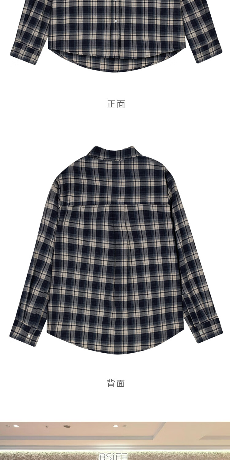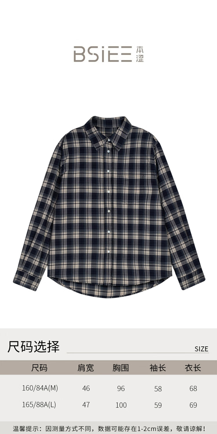 BSIEEBSiEE 2025 winter new style lapel POLO long-sleeved classic plaid single pocket casual plaid shirt navy M