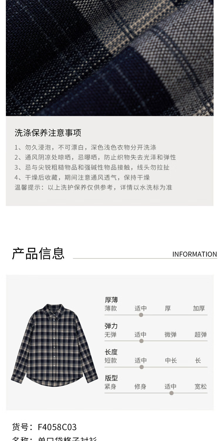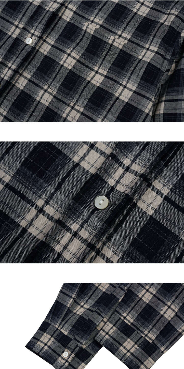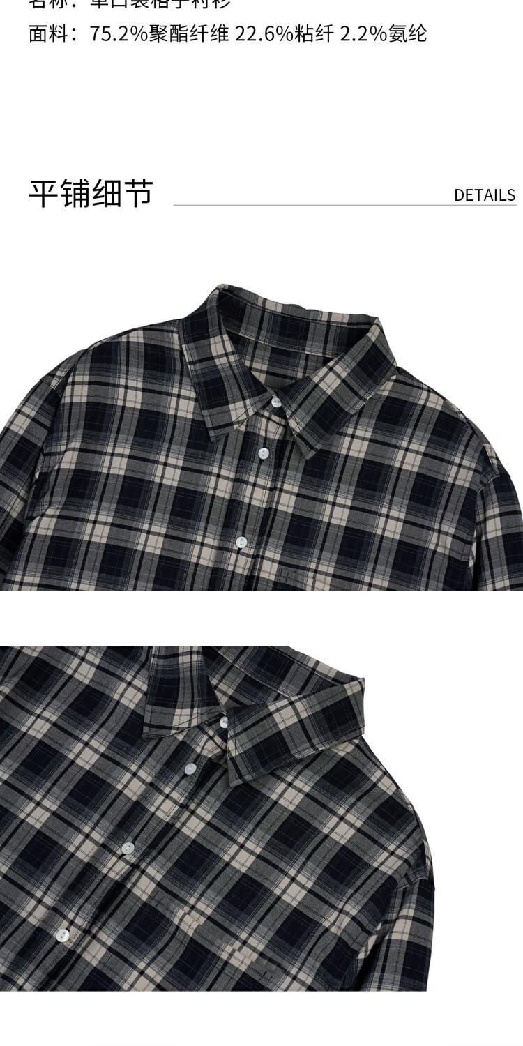 BSIEEBSiEE 2025 winter new style lapel POLO long-sleeved classic plaid single pocket casual plaid shirt navy M