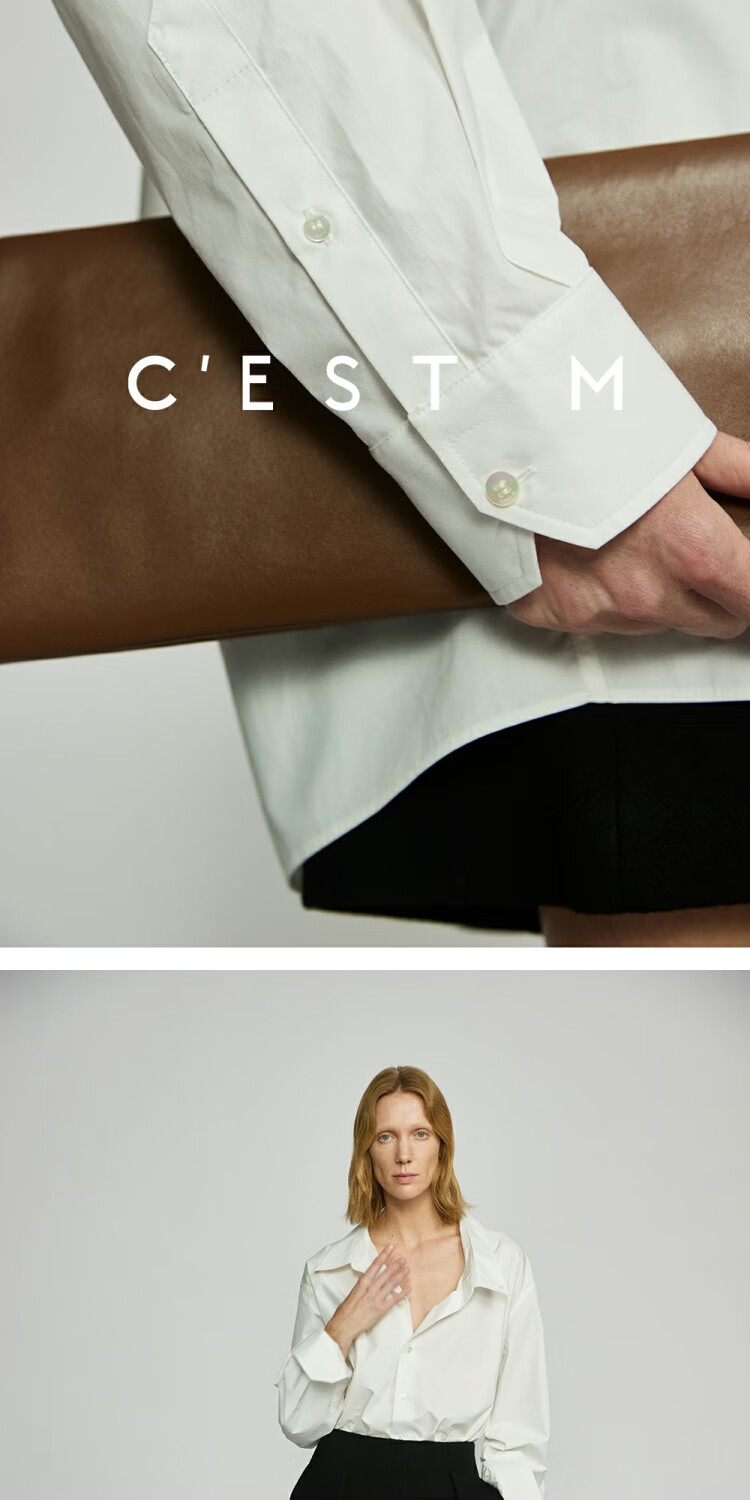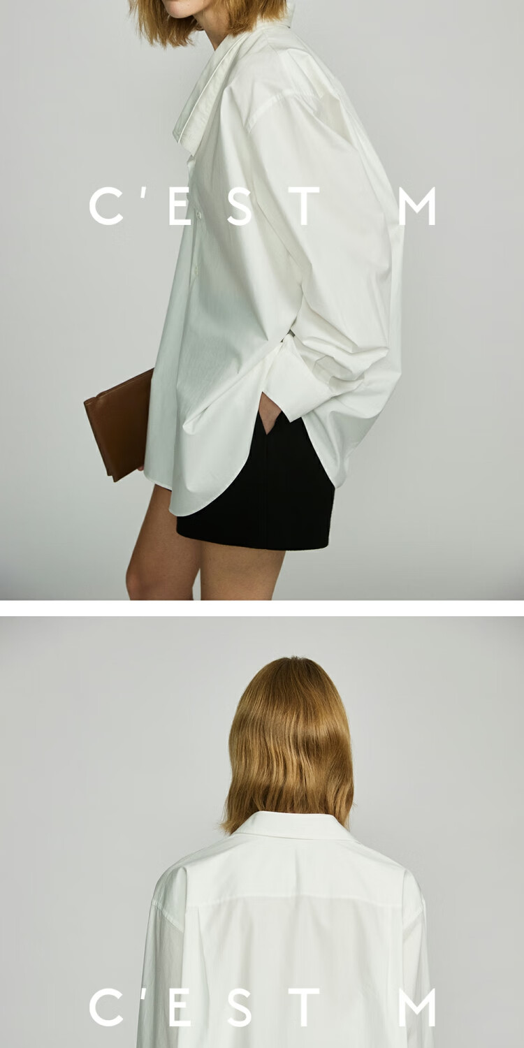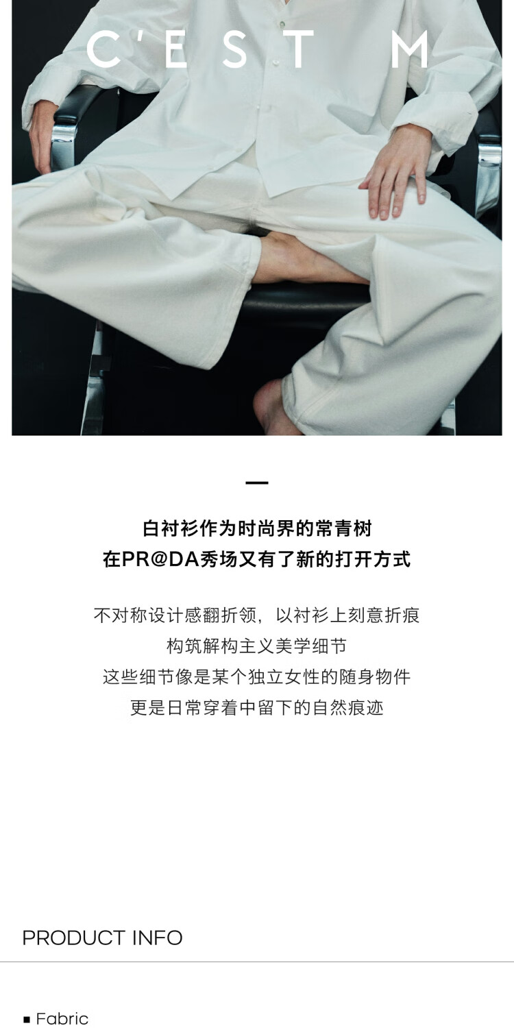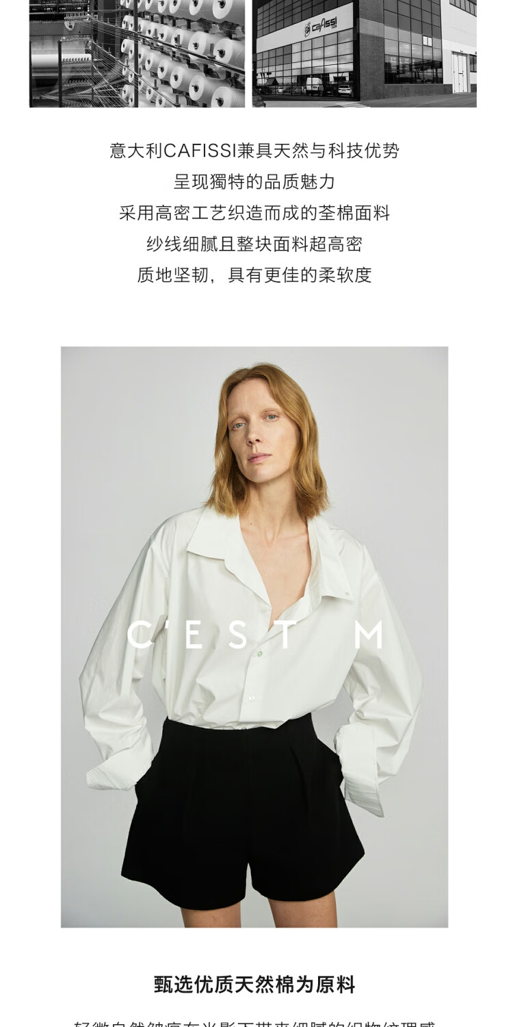 C EST M丨Italian imported CAFISSI cotton poplin PRA show deconstructed crease collar silhouette shirt Italian CAFISSI classic white S pre-sale 25-30 days