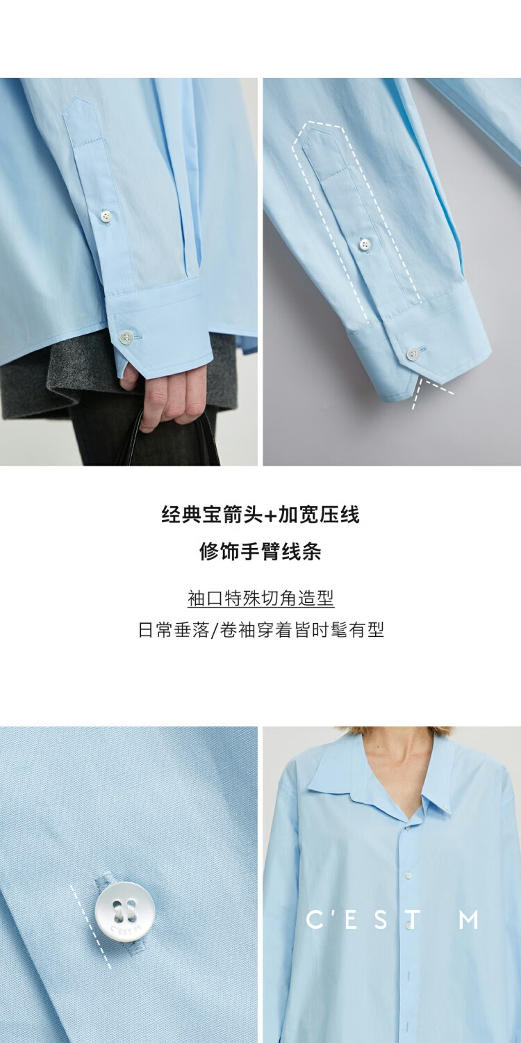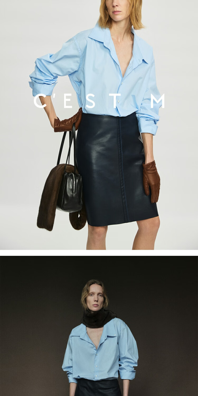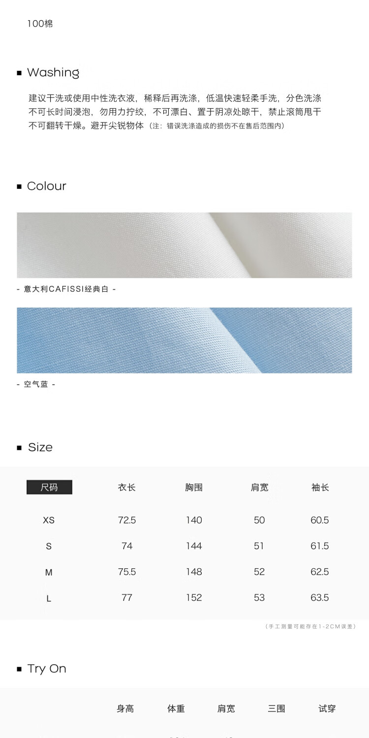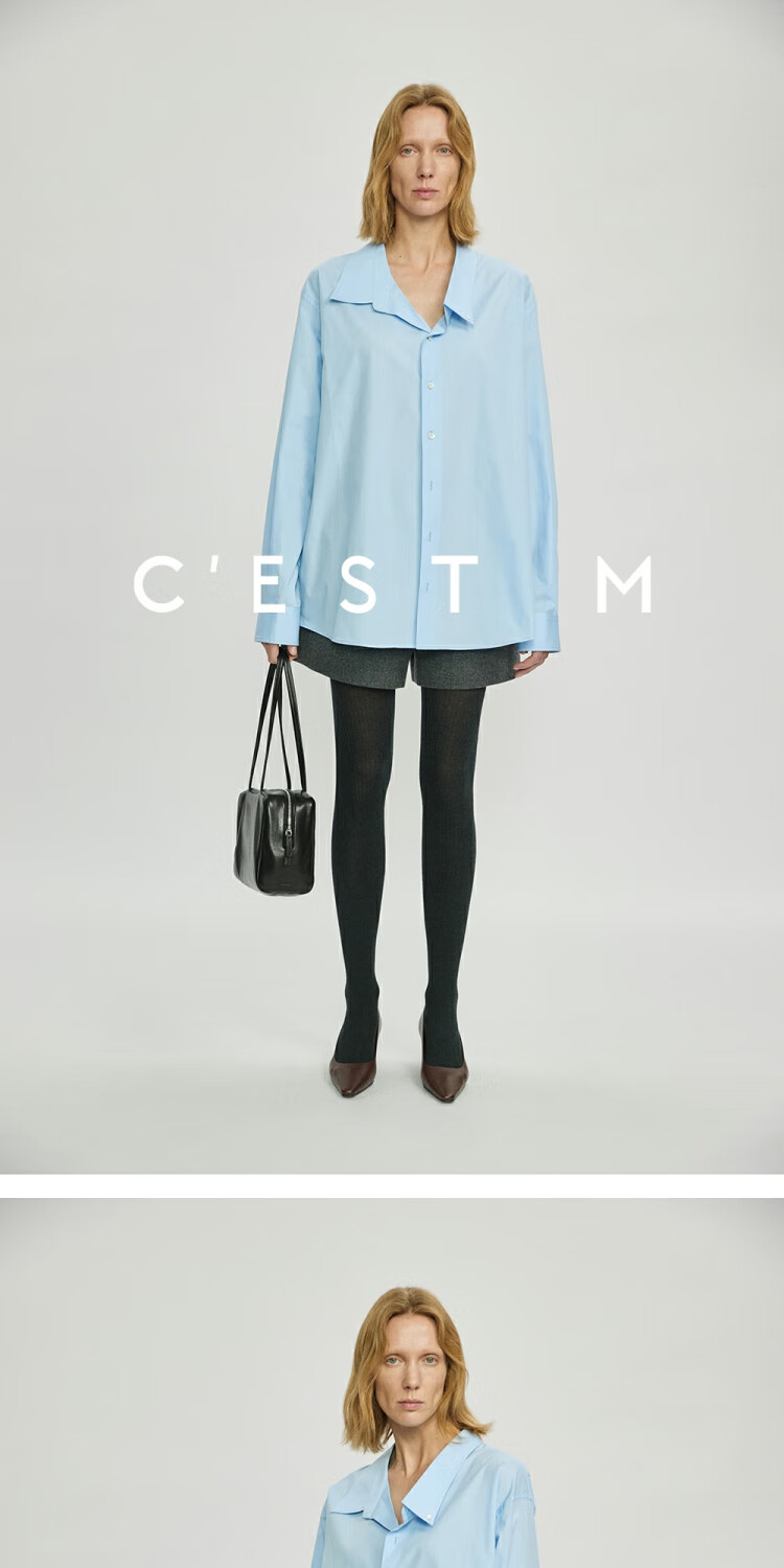 C EST M丨Italian imported CAFISSI cotton poplin PRA show deconstructed crease collar silhouette shirt Italian CAFISSI classic white S pre-sale 25-30 days