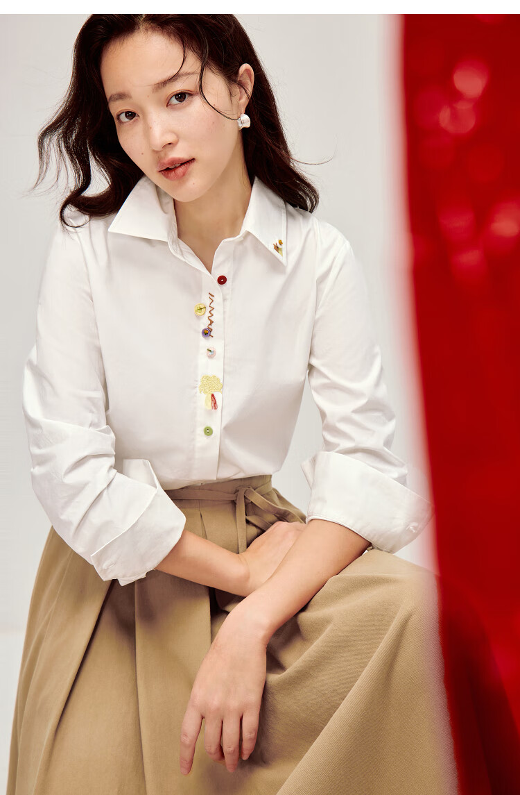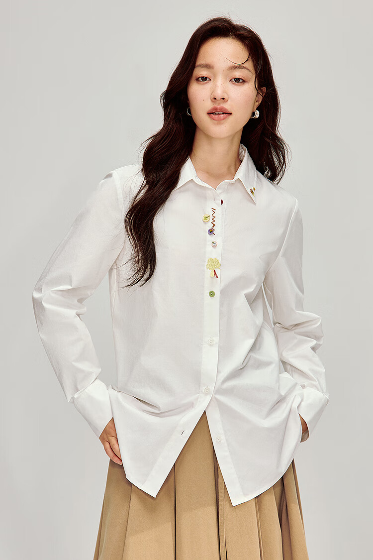 INMAN colorful button embroidered cotton poplin shirt 2026 spring women's new versatile commuter long-sleeved shirt white M