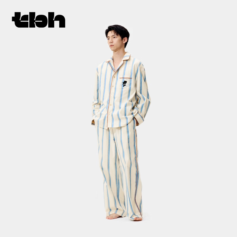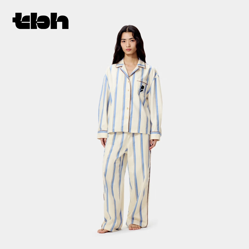 Brutalist Home (tbh) Brutalist Home Brutalist Home tbh Urban Beast Panther Cotton Flannel Panther Thickened Cotton Flannel Home Clothing Set Blue and White Stripes XS