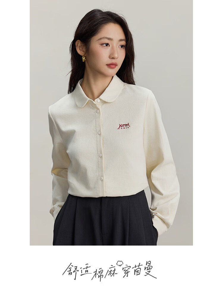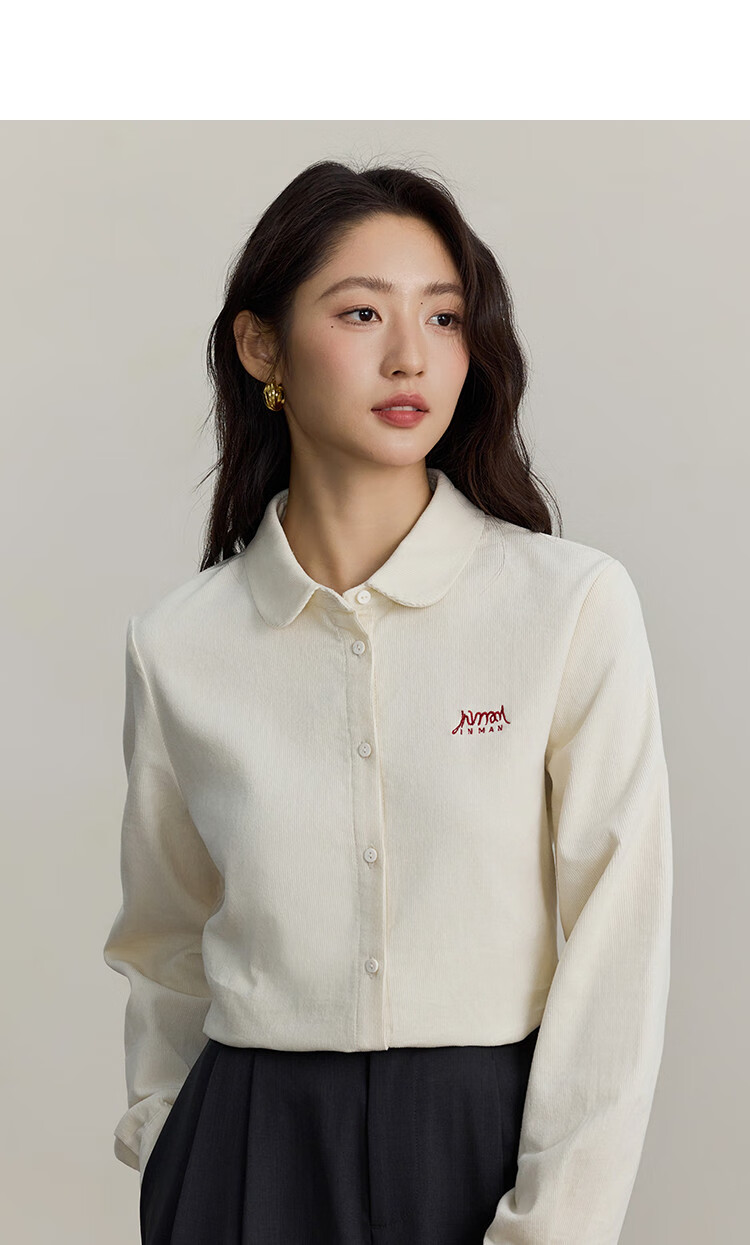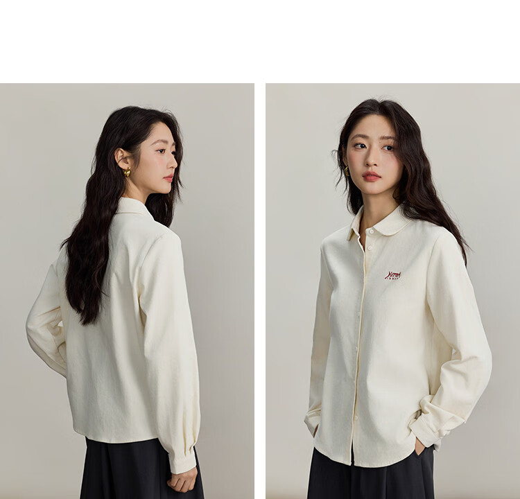INMAN pure cotton commuting simple long-sleeved shirt for women 2025 autumn and winter versatile loose casual corduroy shirt beige L