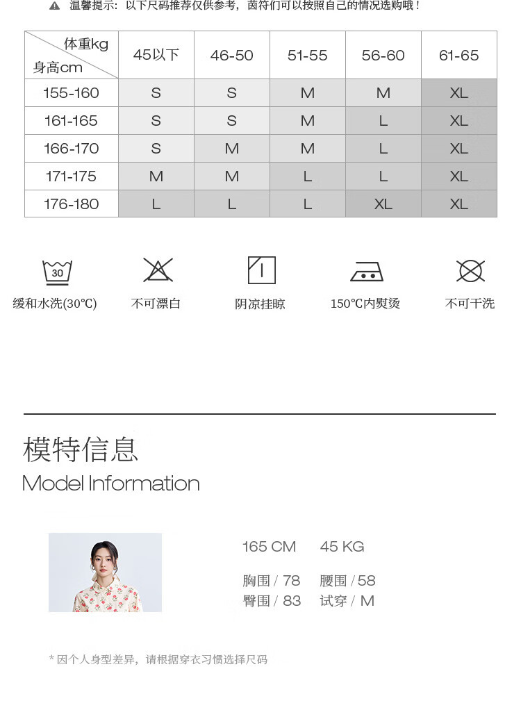 China (cm) 160-165/84-86 165-170 / 88-90 167-172 / 92-96 168-173 / 98-102 170-176 / 106-110