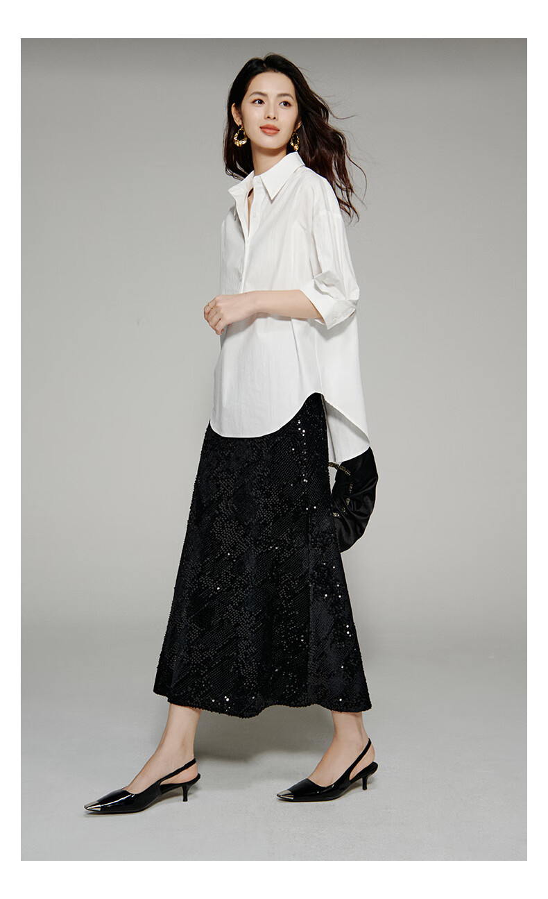 Spätes weißes neues Produkt, 100 % Baumwolle, Damen-Shirt, locker, groß, künstlerischer Stil, High-End-Temperament-Top, weiß, M