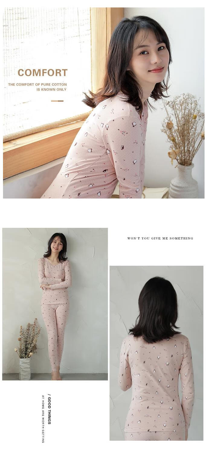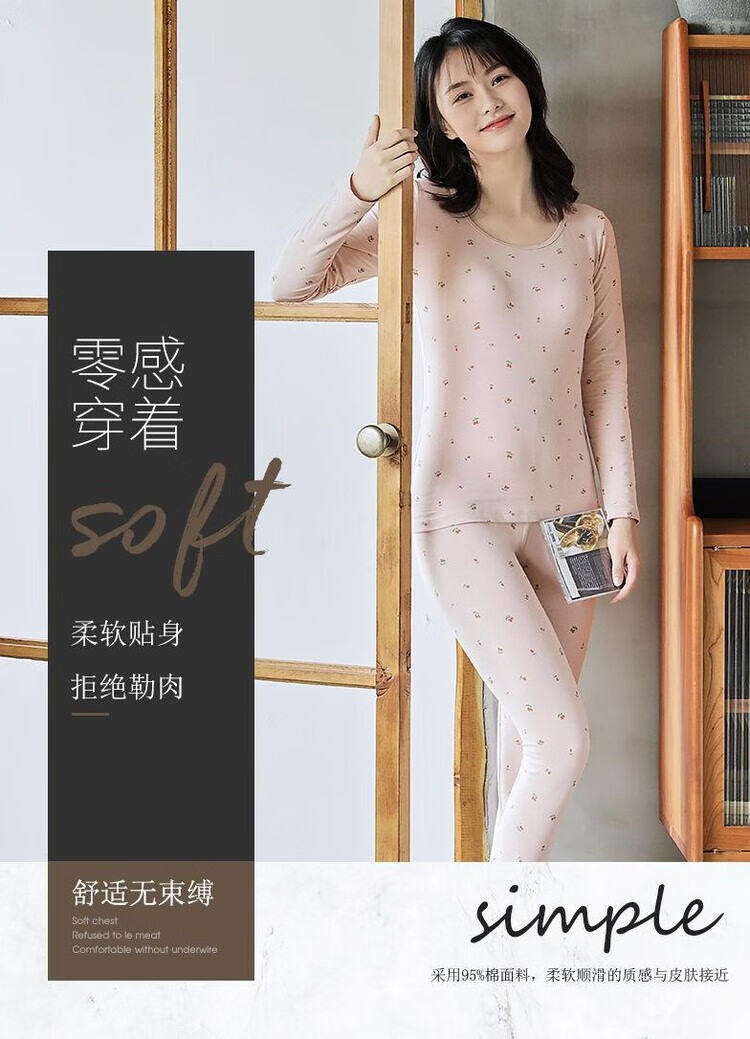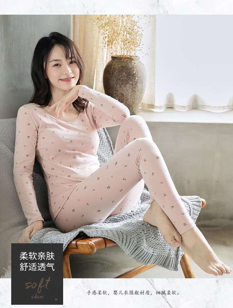 Urban Beauty Lycra Cotton Autumn Clothes and Autumn Pants Women's Bottoming Pure Cotton Suit Thin Thermal Underwear Cotton Sweater Autumn and Winter Shirts and Underwear YNE-301 Pink M (80-100Jin Jin equals 0.5kg)