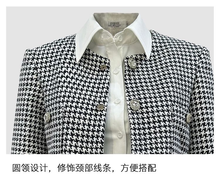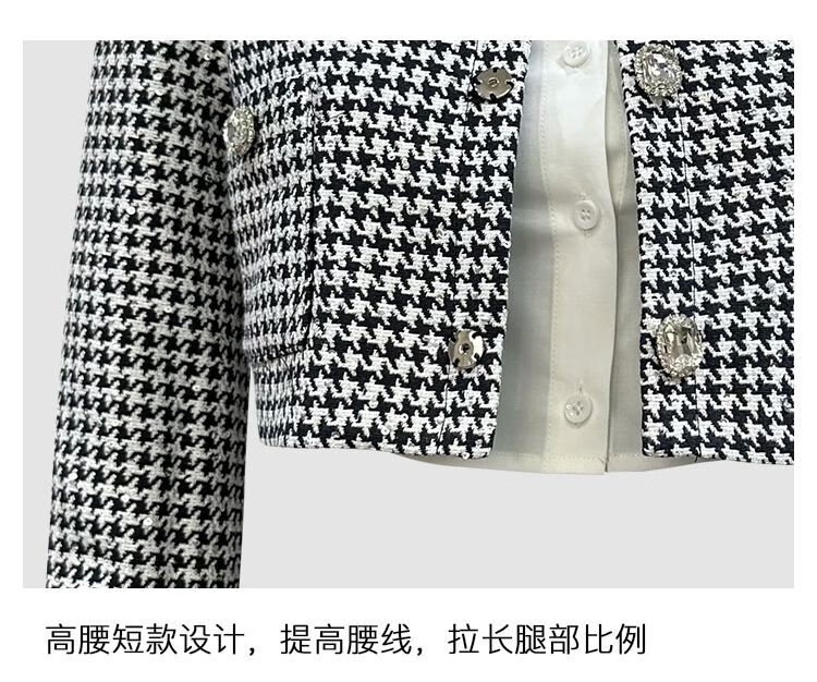 格子外套女短款玫瑰故事黄亦玫感纽扣长袖小香风外衣 衬衣 S S