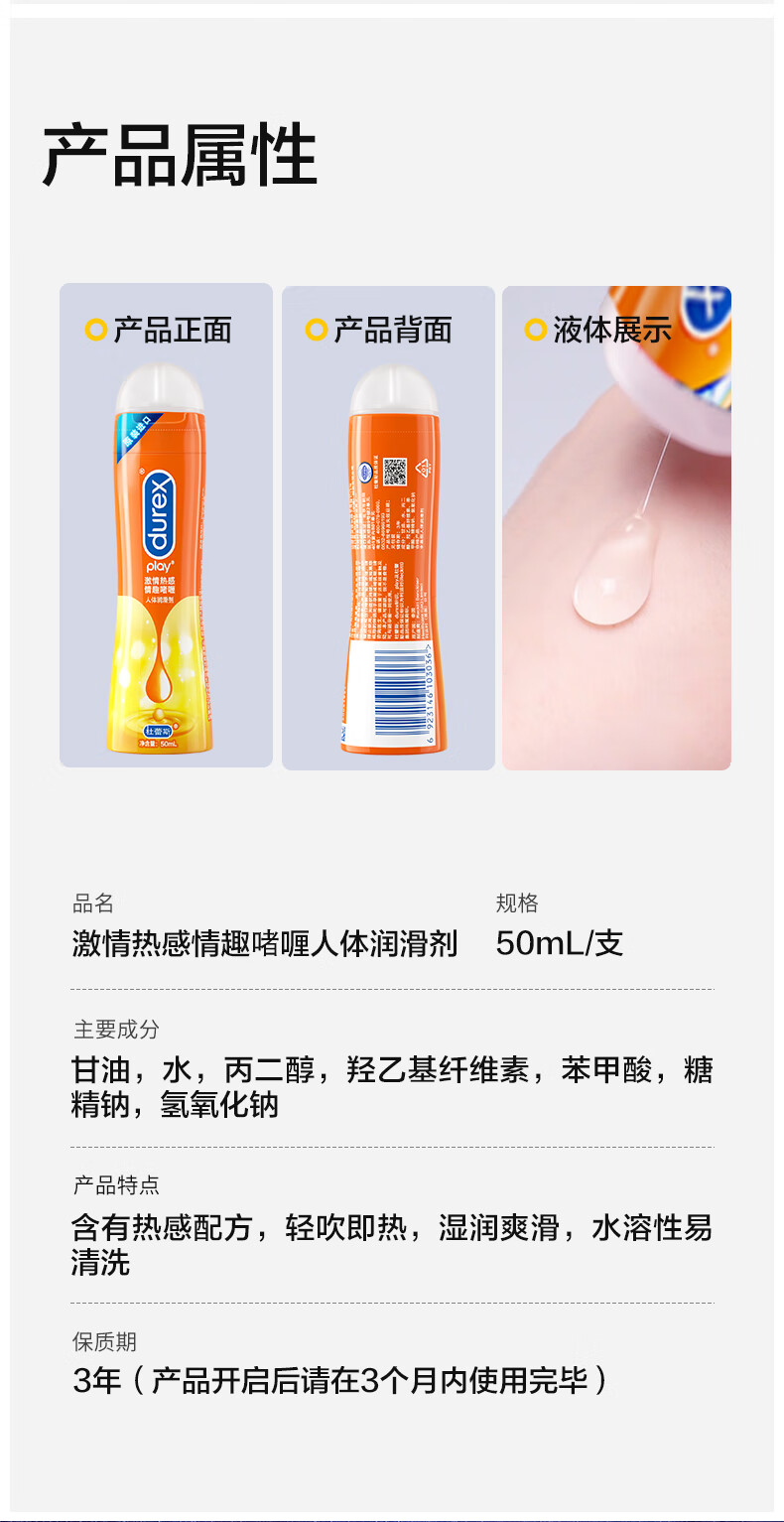 杜蕾斯 热感人体润滑液50ml 水溶性润滑剂 情趣用品 原装进口 durex