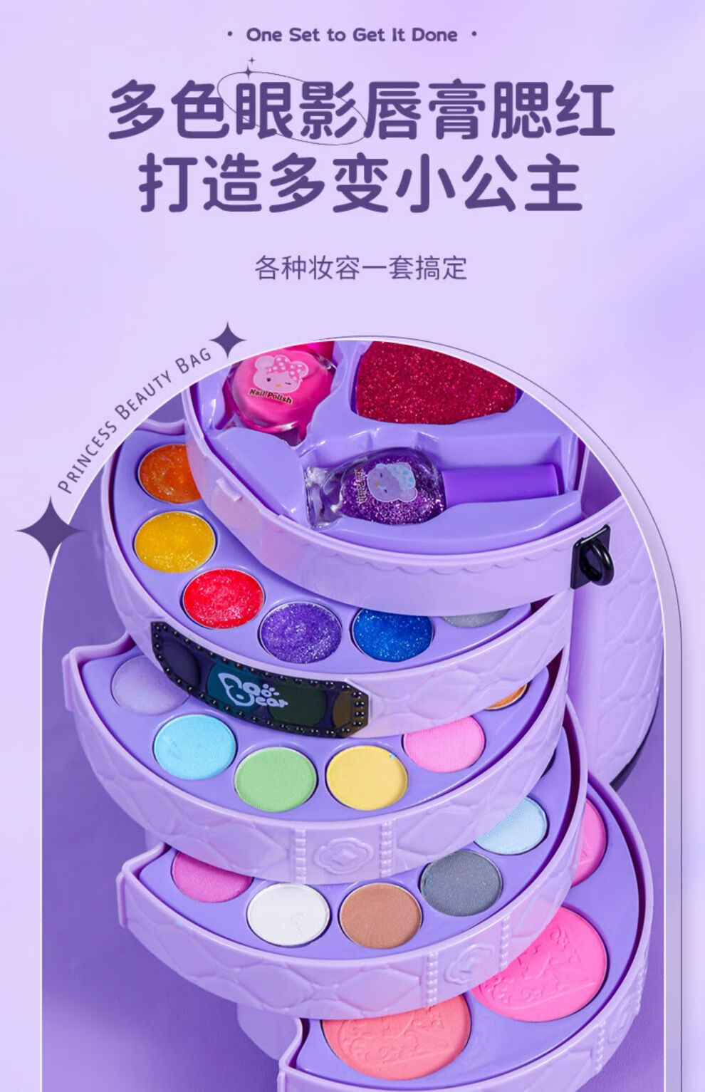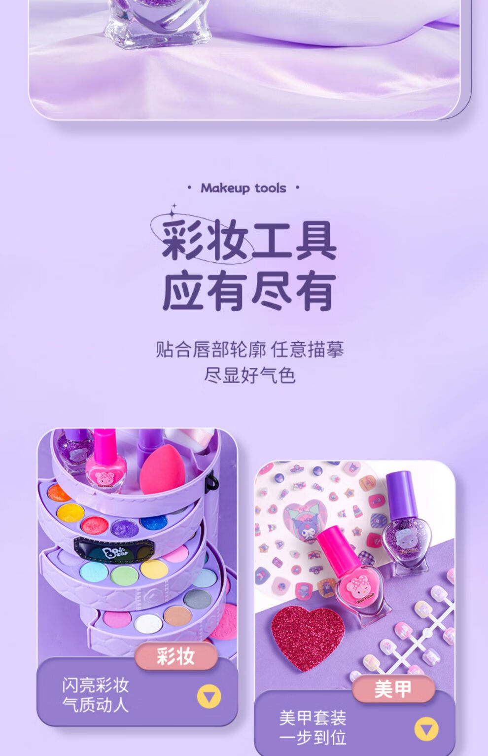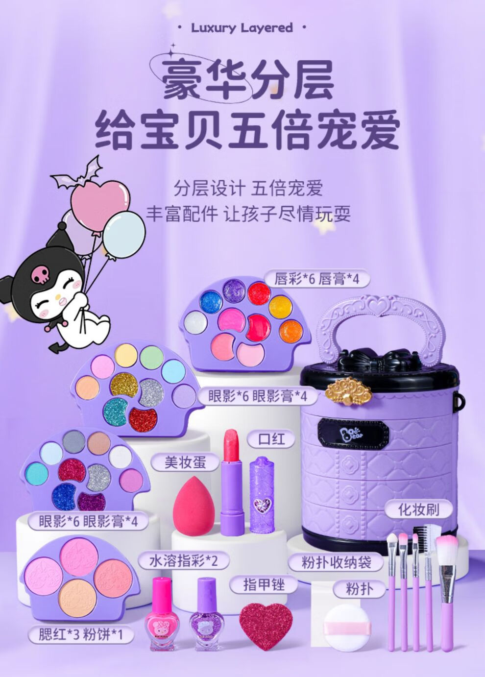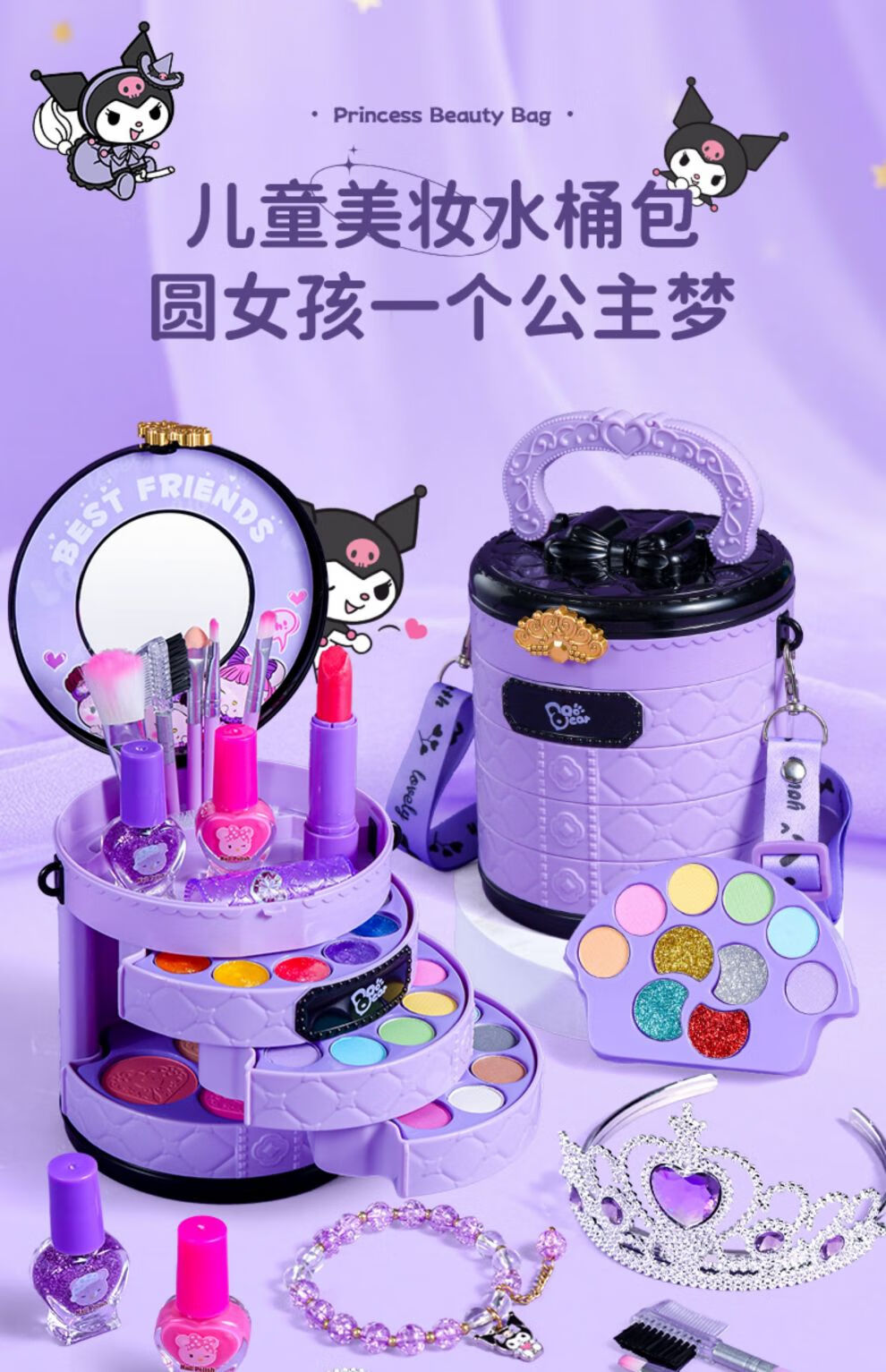 Shantou Lincun Kuromi children's toys 3 to 6 years old and above cosmetics set washable girls 10th birthday gift dream bucket beauty bag (set of 49) comes with genuine Kuromi stickers