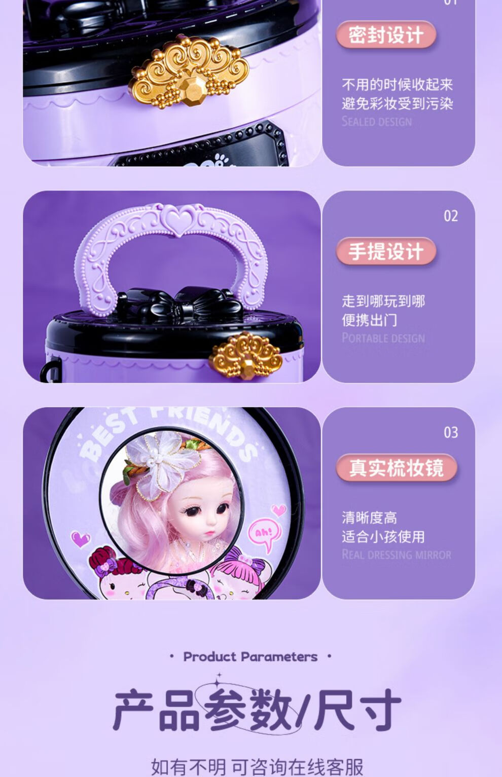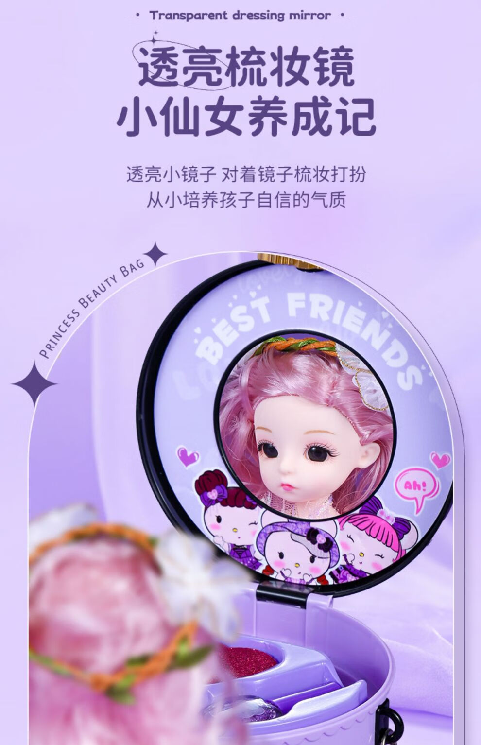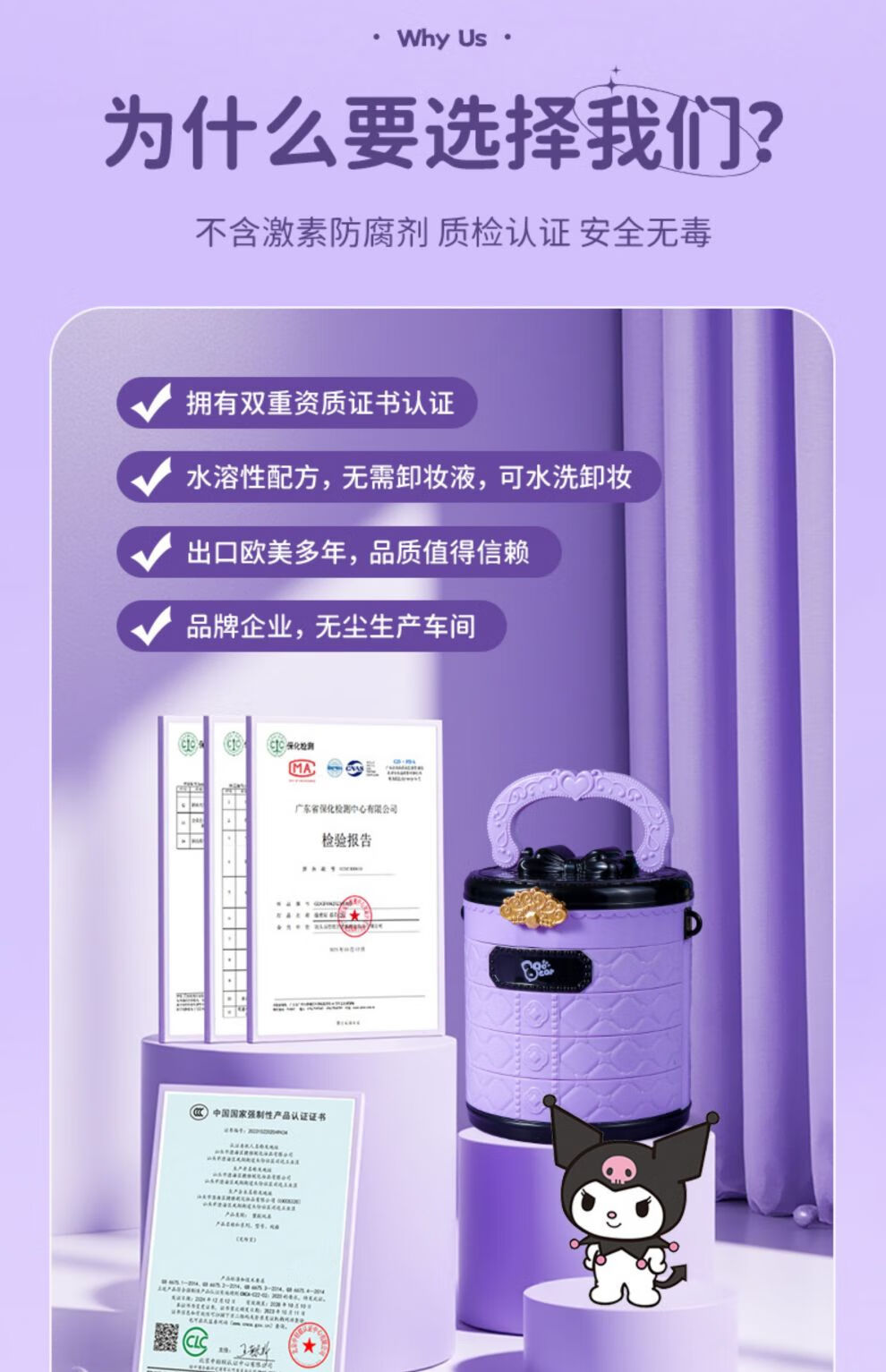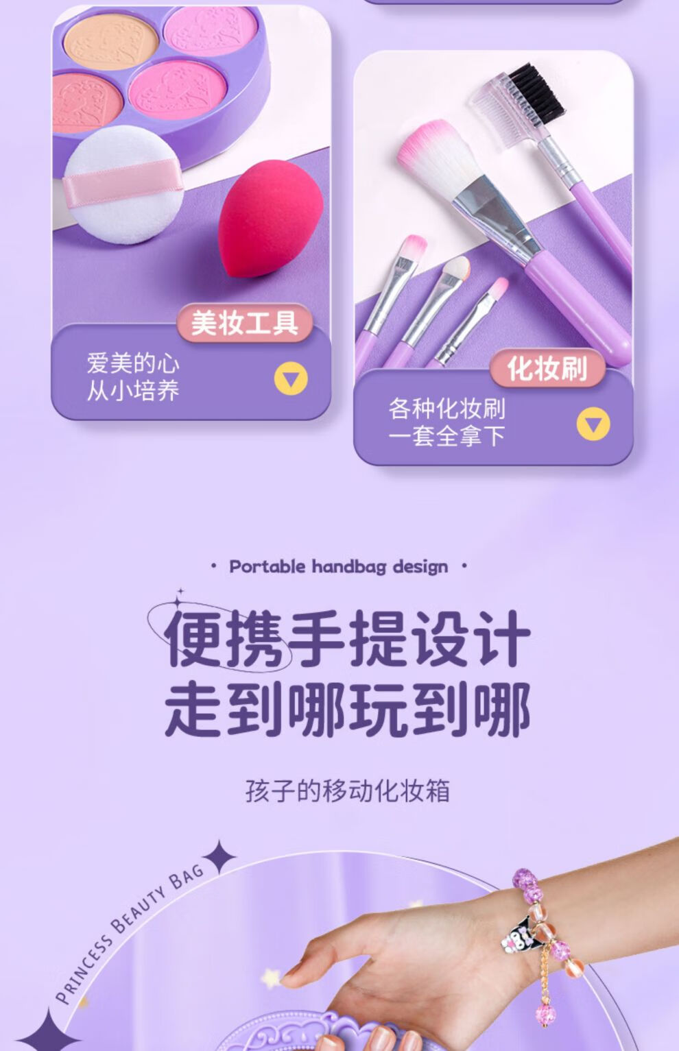Shantou Lincun Kuromi children's toys 3 to 6 years old and above cosmetics set washable girls 10th birthday gift dream bucket beauty bag (set of 49) comes with genuine Kuromi stickers