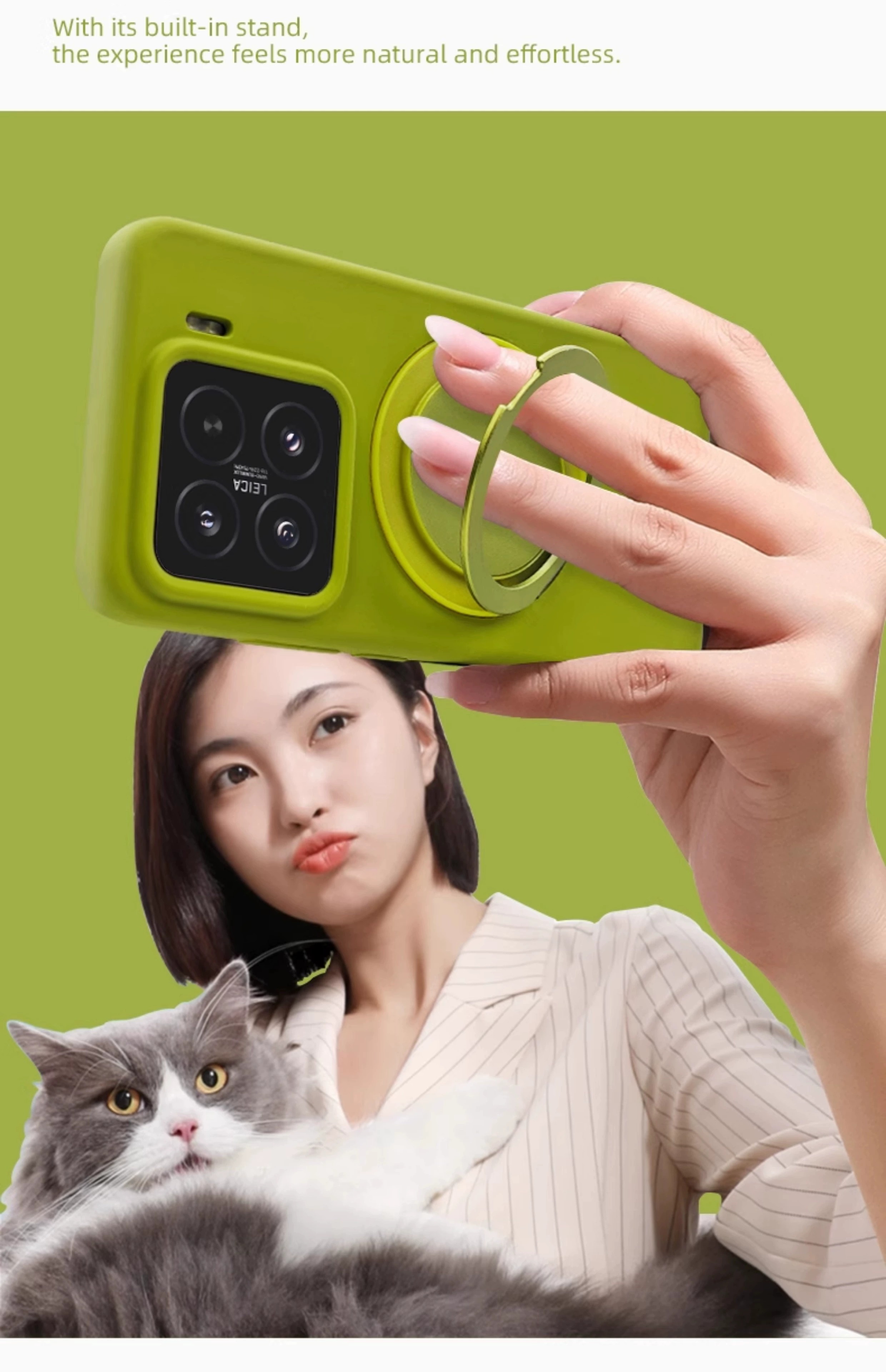 Suitable for Xiaomi 15Pro mobile phone case, new 360 swivel stand, Xiaomi 14pro liquid silicone anti-fingerprint simple matte women's anti-fall skin feel all-inclusive 17Pro dirt-resistant blue mist blue liquid silicone comes with 360 swivel stand Xiaomi 15