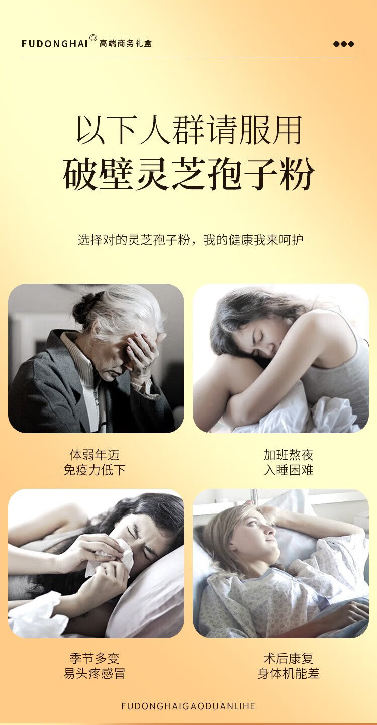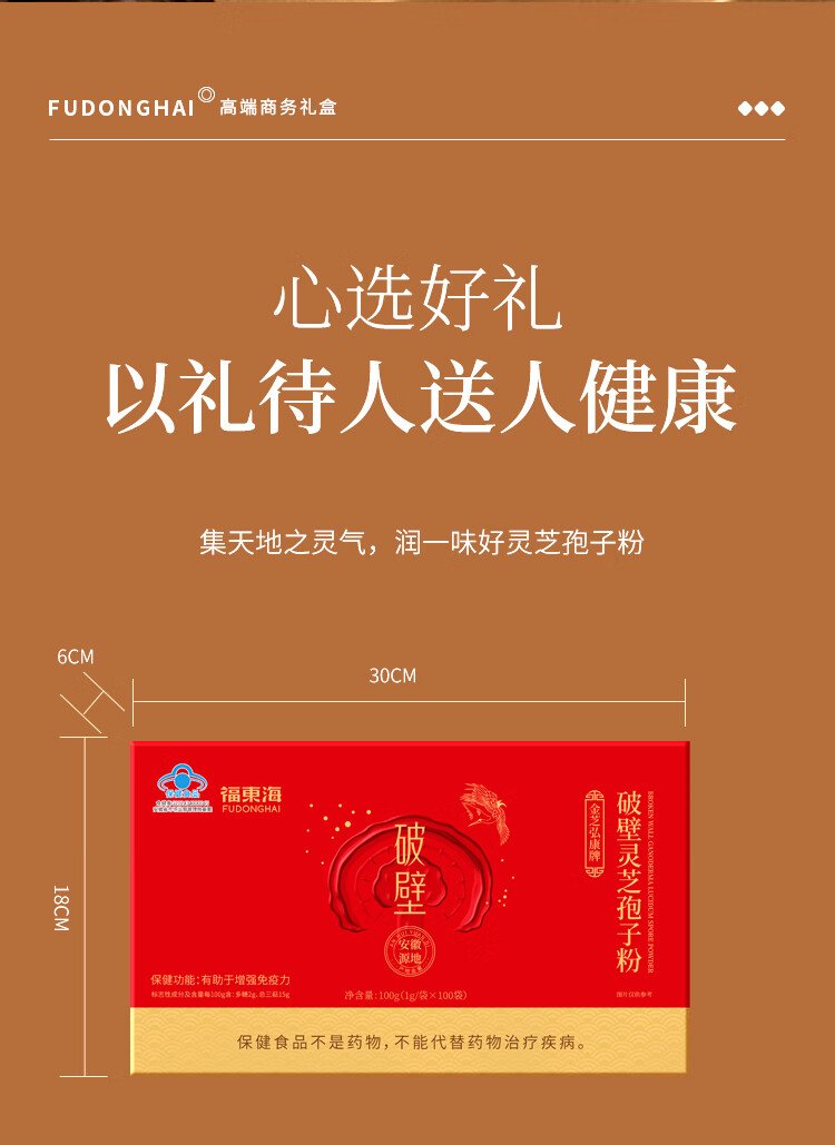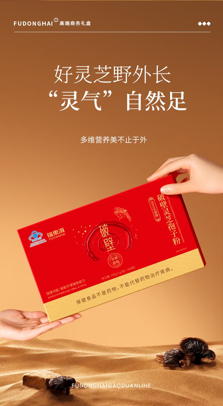 福东海 破壁灵芝孢子粉300g礼盒(3盒)增强力免疫术后恢复营养品送长辈