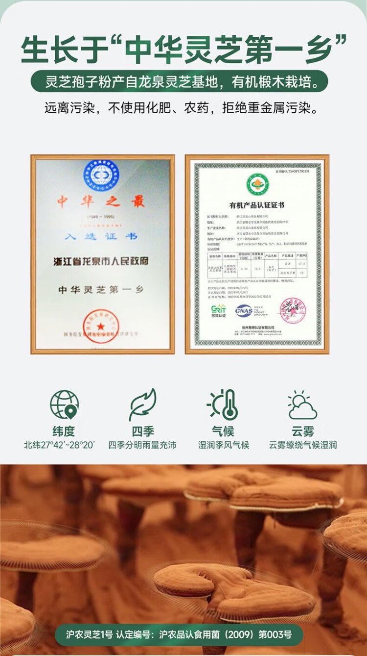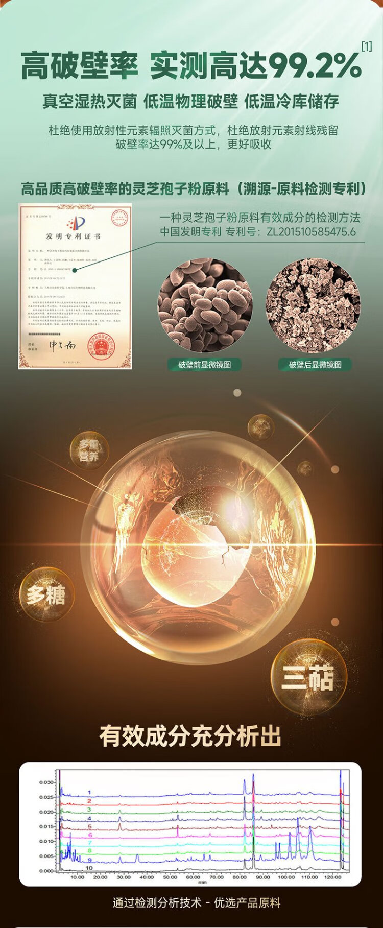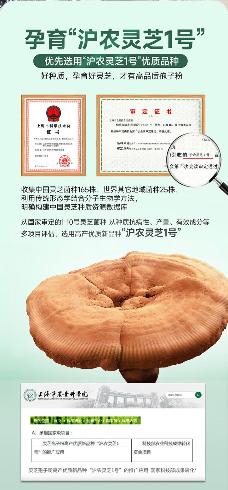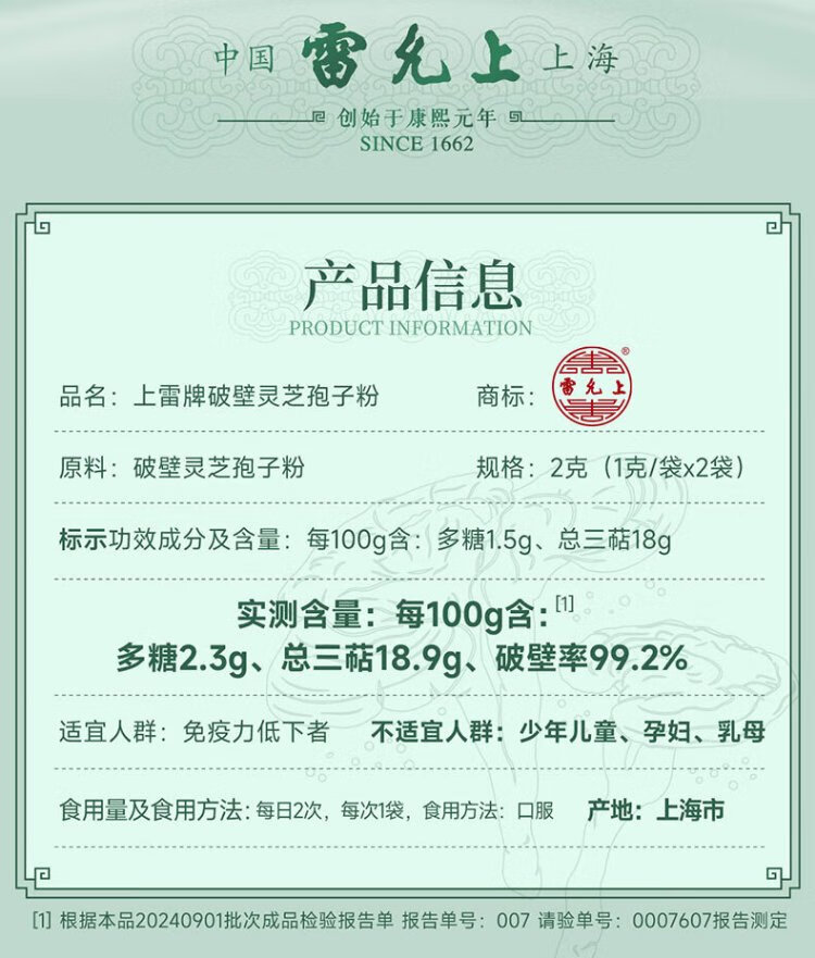 雷允上破壁灵芝孢子粉1克*2袋上海农科院林芝袍子粉高三萜增强免疫