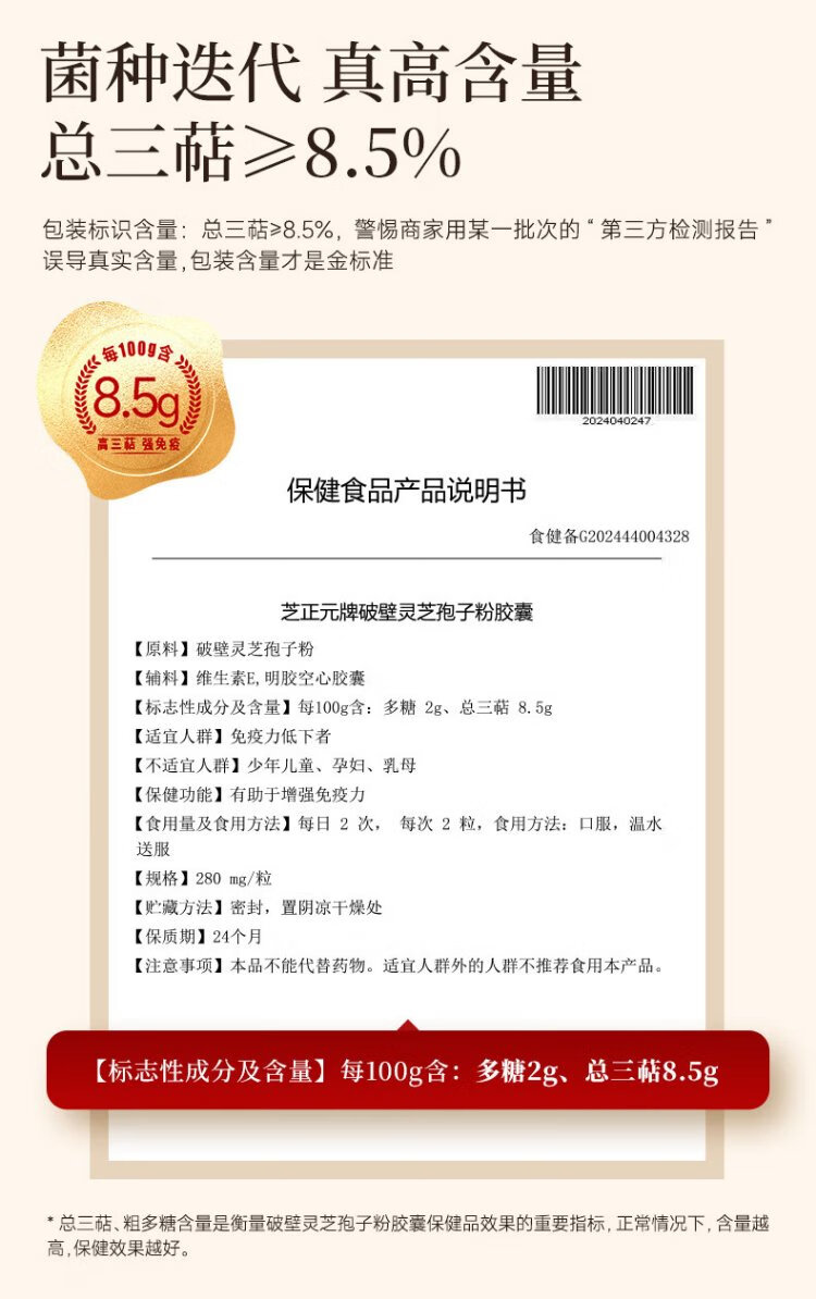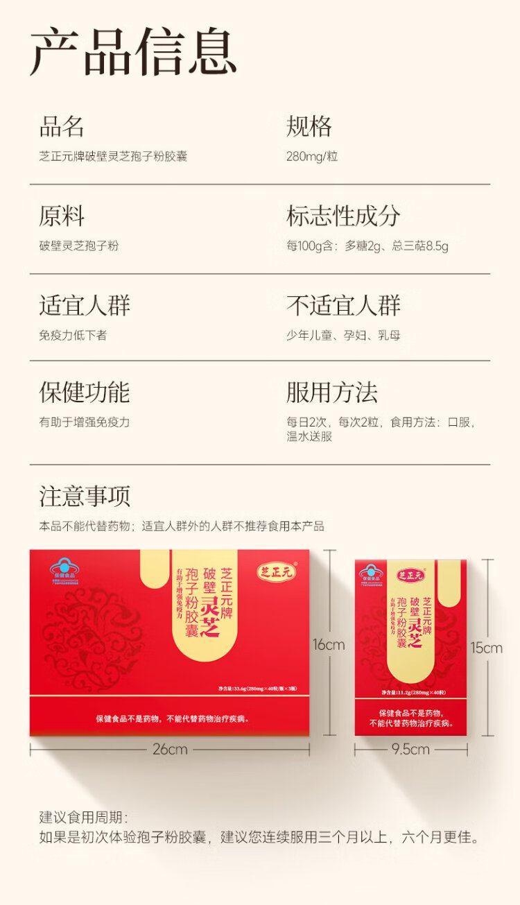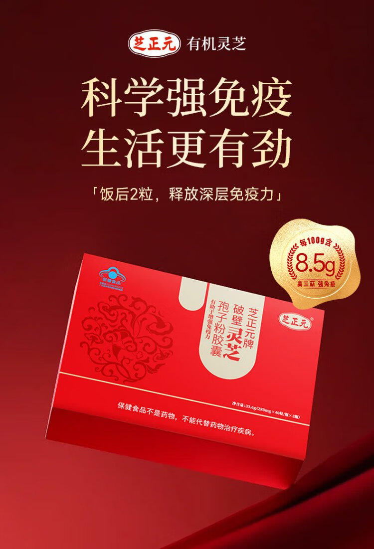 芝正元破壁灵芝孢子粉胶囊月度礼盒120粒送父母长辈老人礼品增强免疫