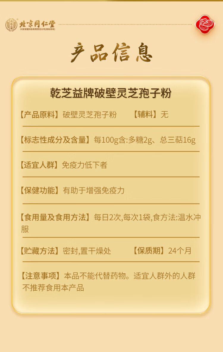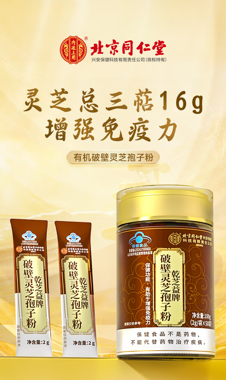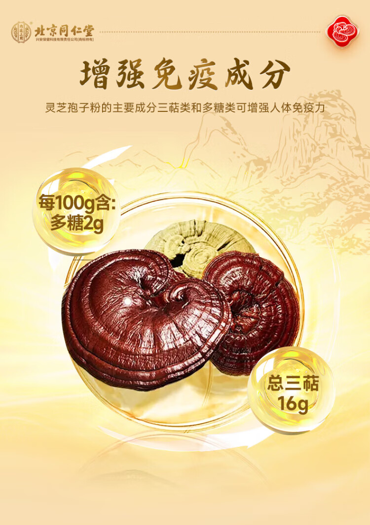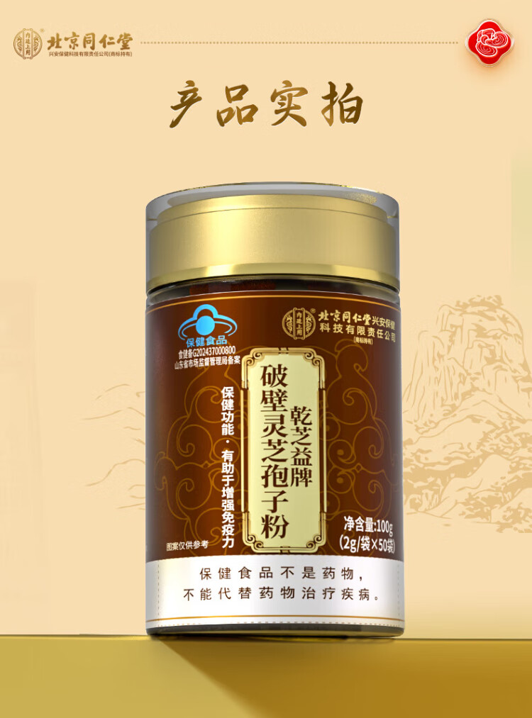 Beijing Tongrentang Broken Ganoderma Spore Powder 100g wird im Innenbereich verwendet, um die Immunität zu stärken und Gesundheitsprodukte als Geschenk für die Ältesten zu nähren.