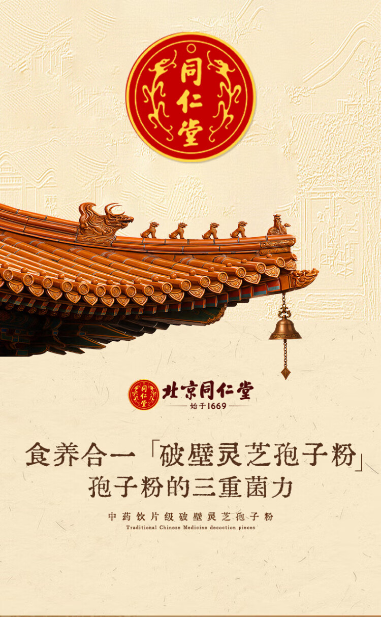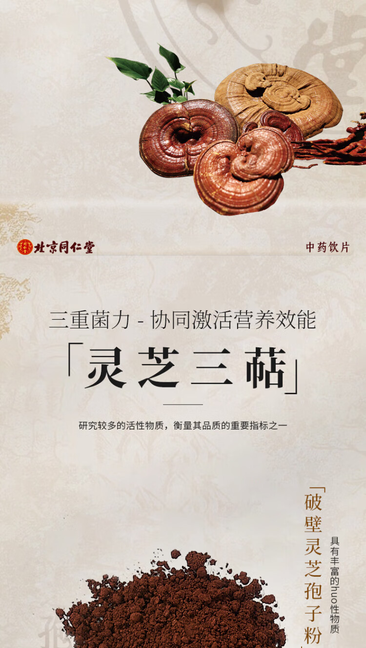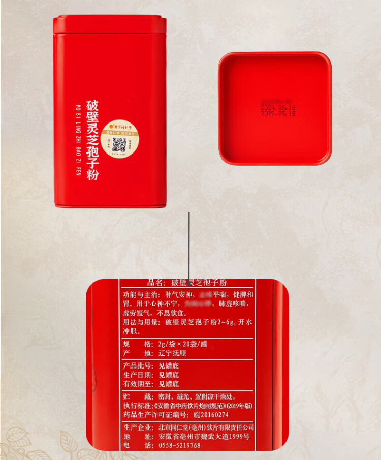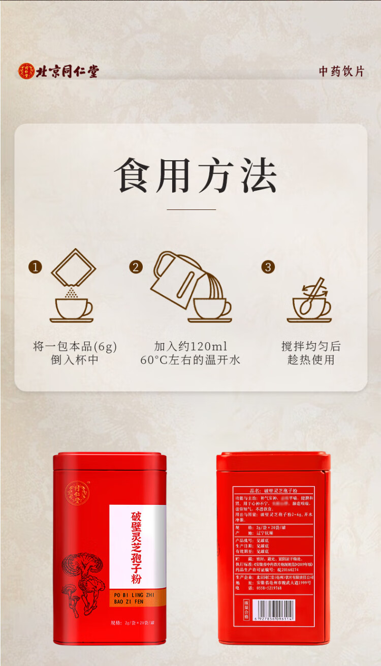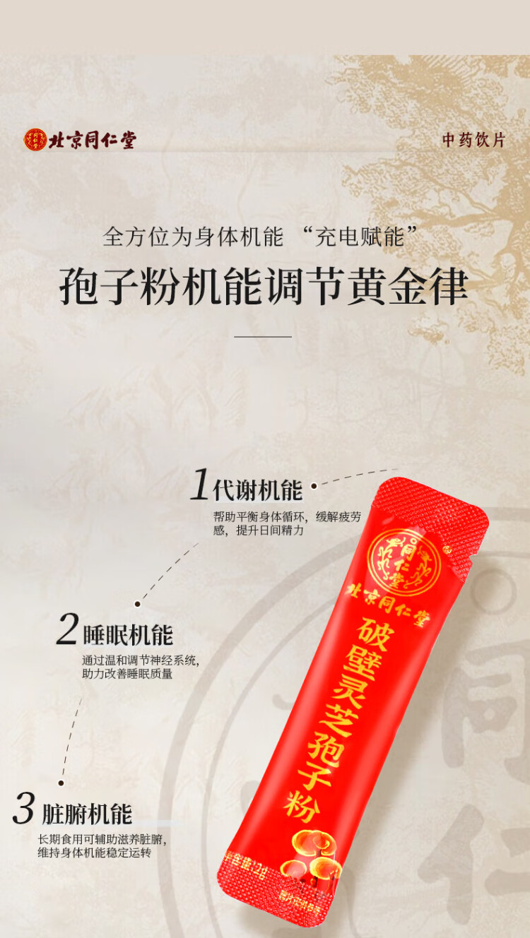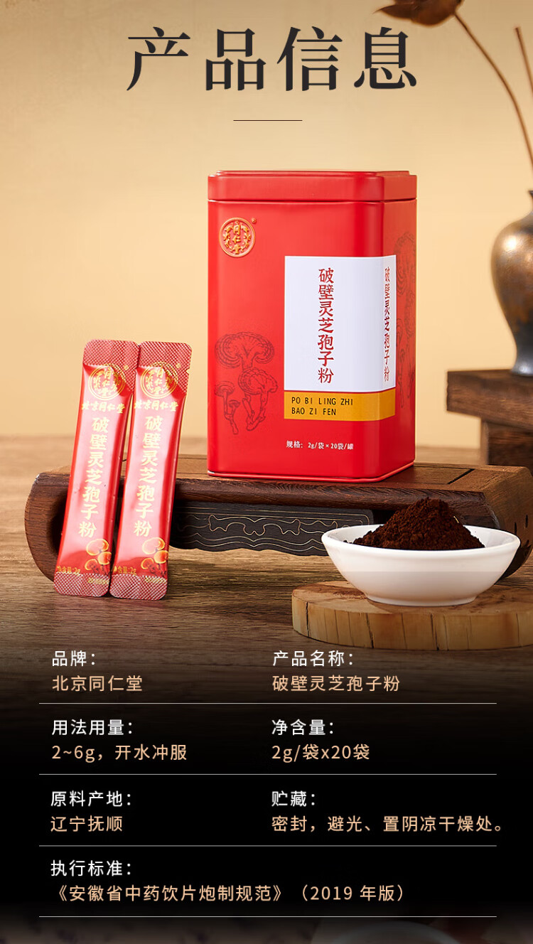 Beijing Tong Ren Tang's self-operated broken Ganoderma spore powder 2g*20 bags/cans, individually packaged in small bags, Chinese medicine pieces to replenish qi and calm the nerves, enhance immunity and recovery after surgery, tonic for middle-aged and elderly people