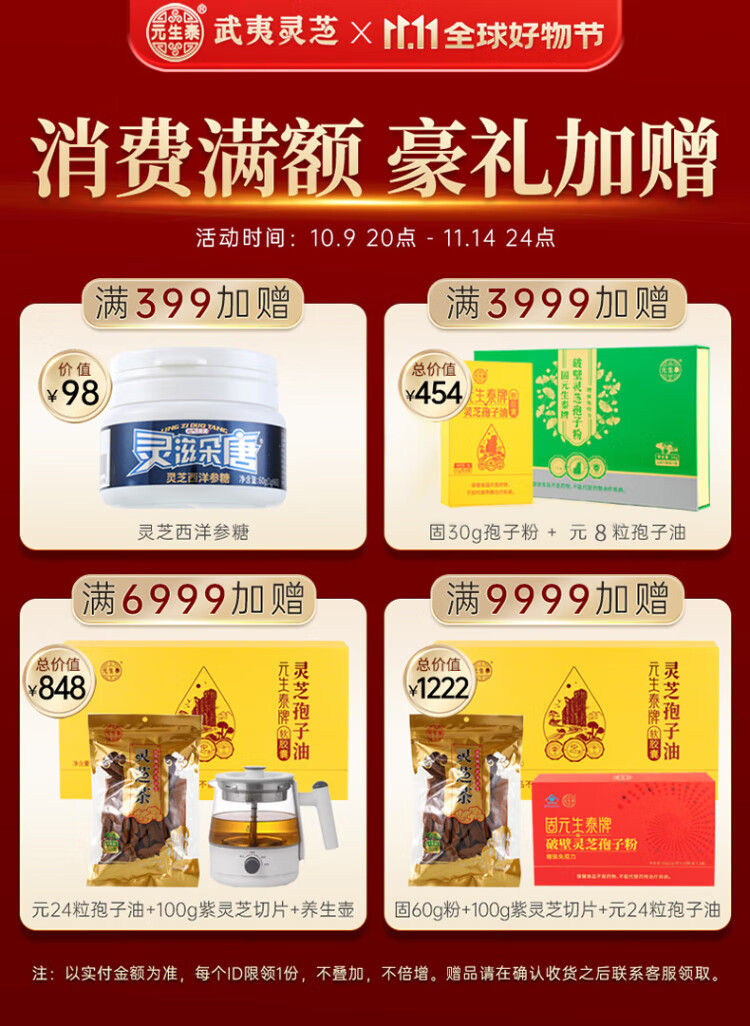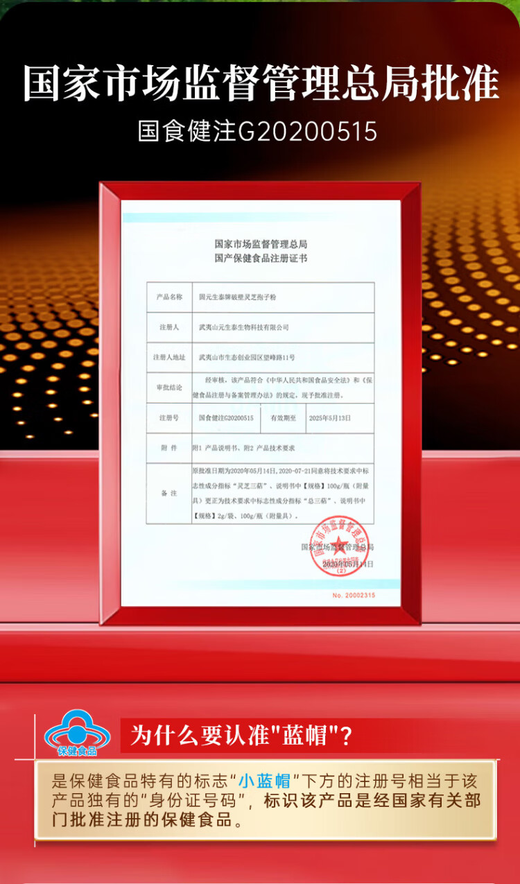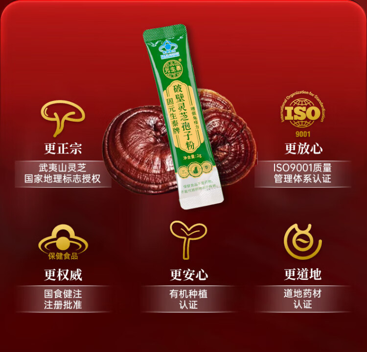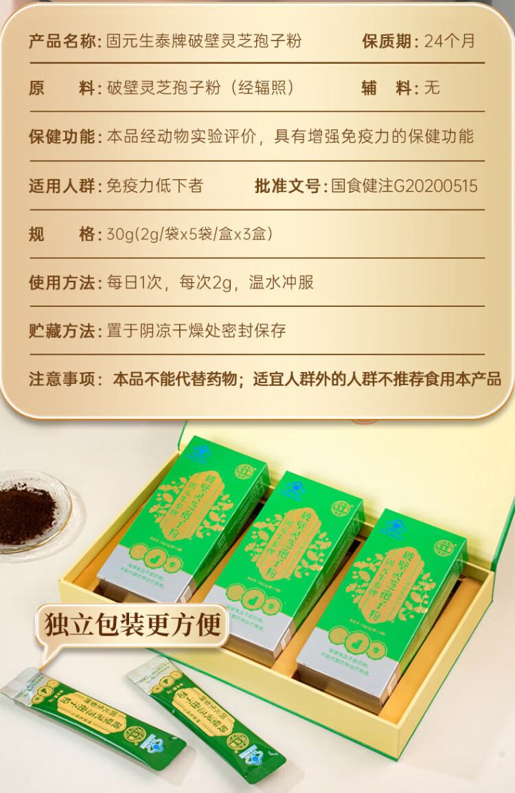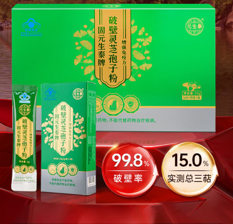 Yuanshengtai broken Ganoderma spore powder 2g*15 bags to enhance immunity Wuyi red Ganoderma powder elderly supplements for elders