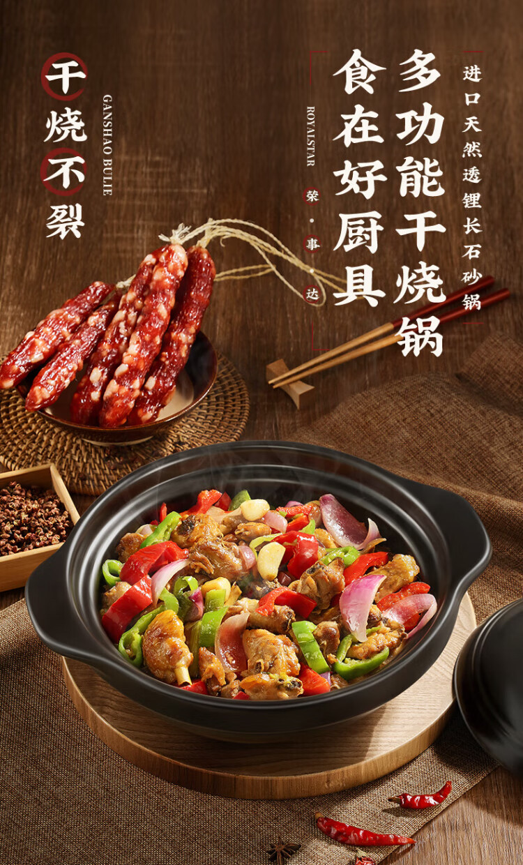 Royalstar claypot rice casserole ceramic soup stew pot high temperature resistant dry burning non-cracking gas stew pot special wide mouth 2.1L