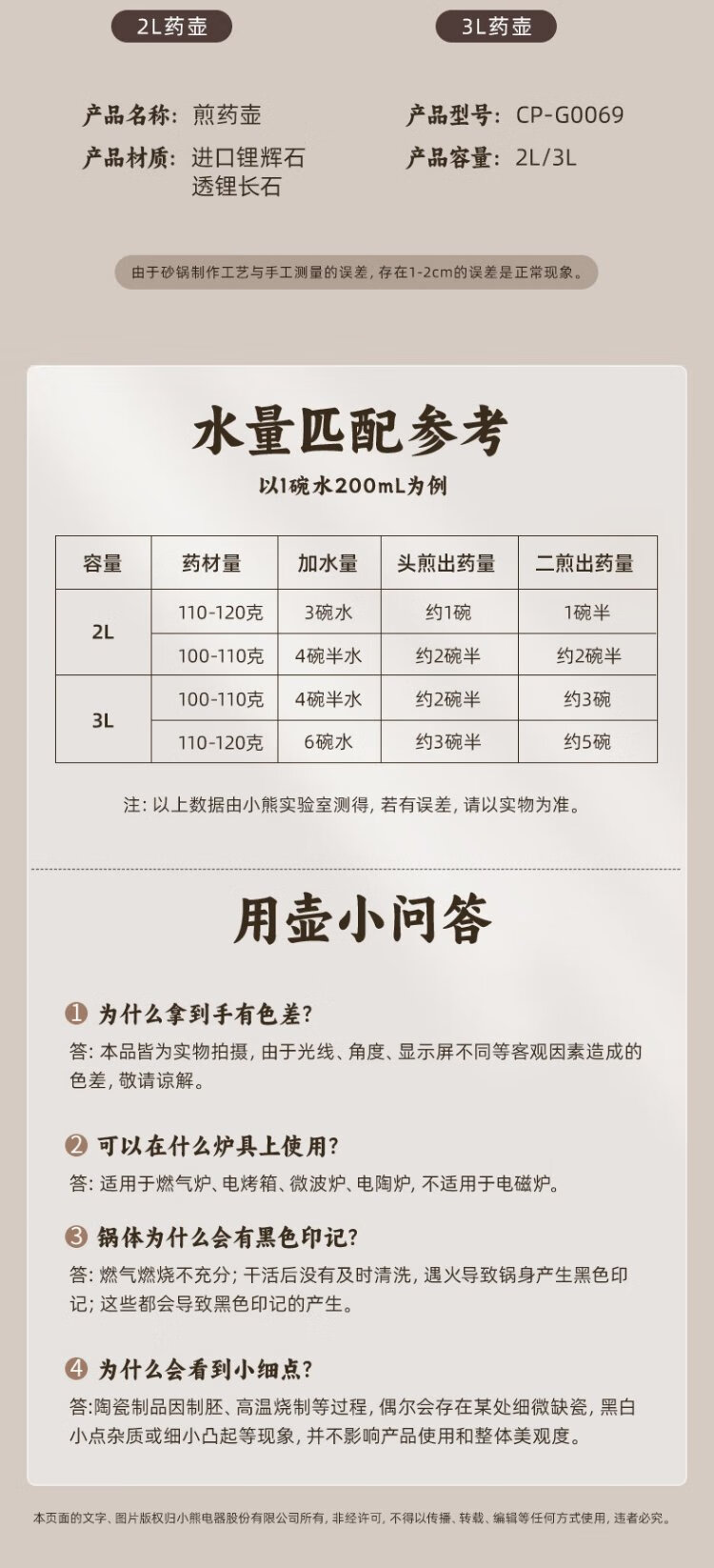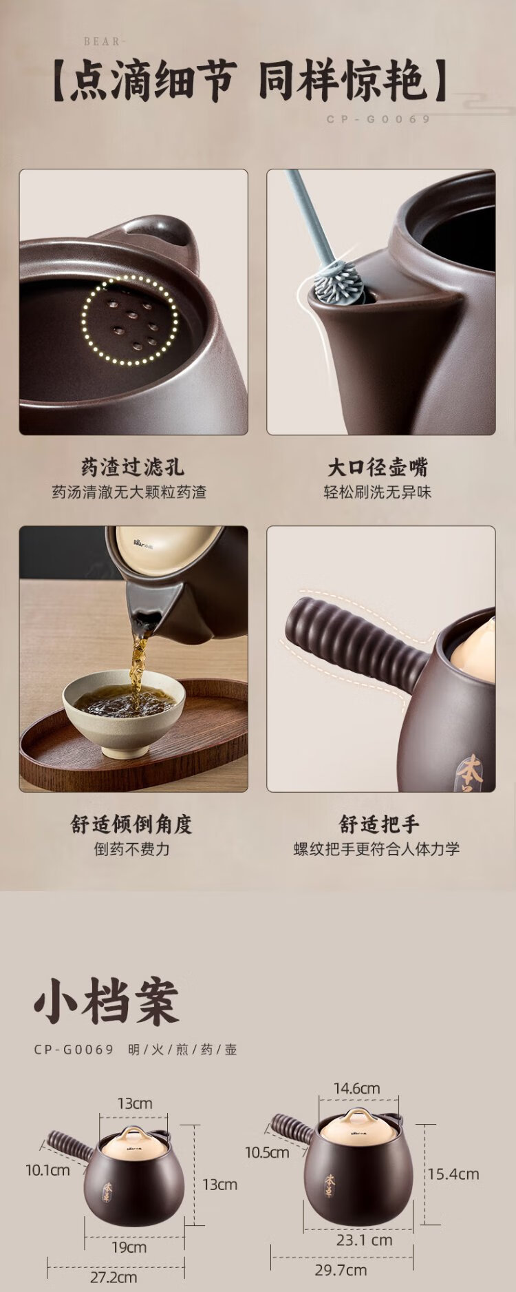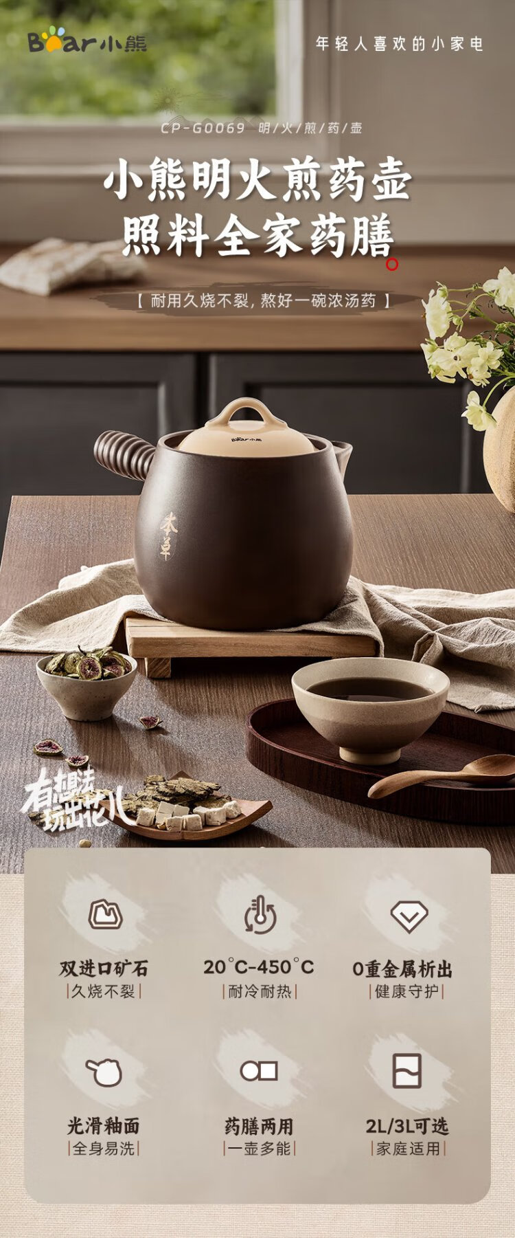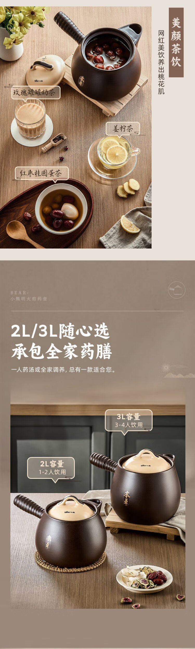 Bear (Bear) Chinese medicine casserole, high temperature resistant Chinese medicine pot, decocting medicine pot, 3L gas stove, ceramic pot, Chinese medicine pot G0069-P02