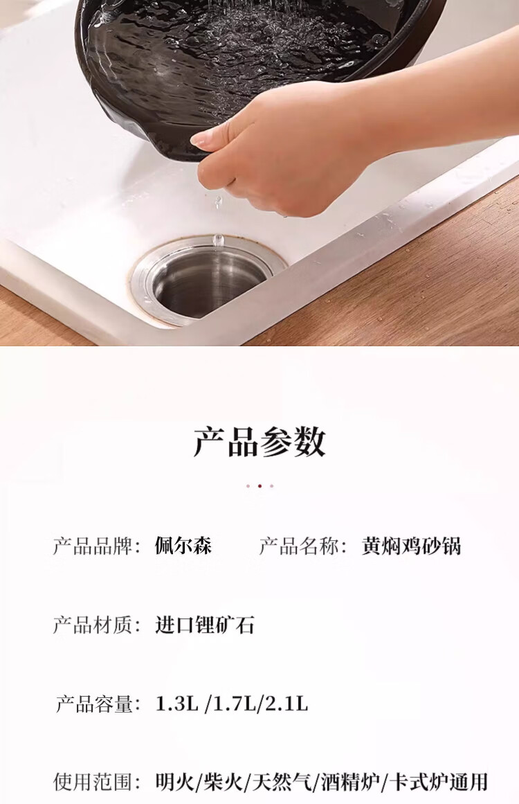 Persson casserole rice cooker soup pot stew pot ceramic pot wide mouth clay pot high temperature resistant dry burning non-cracking gas stove 2.6L