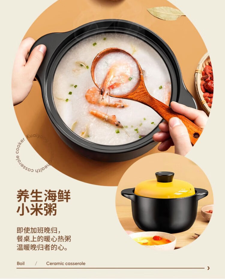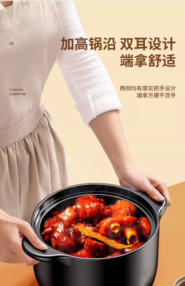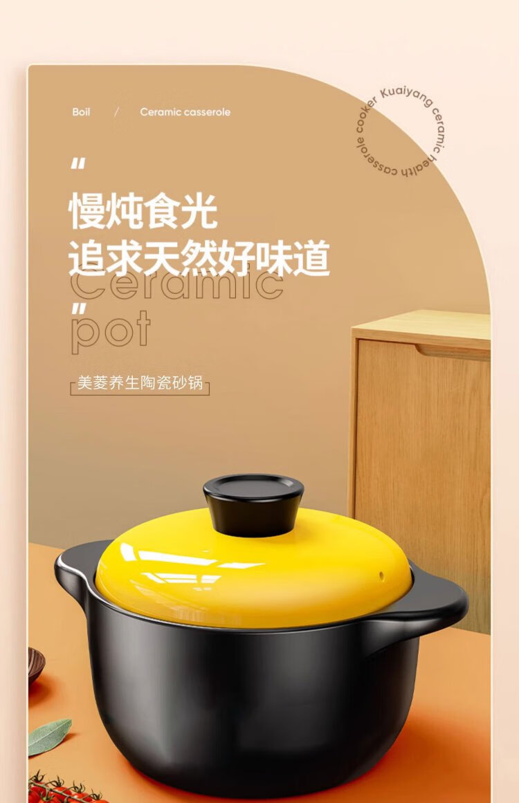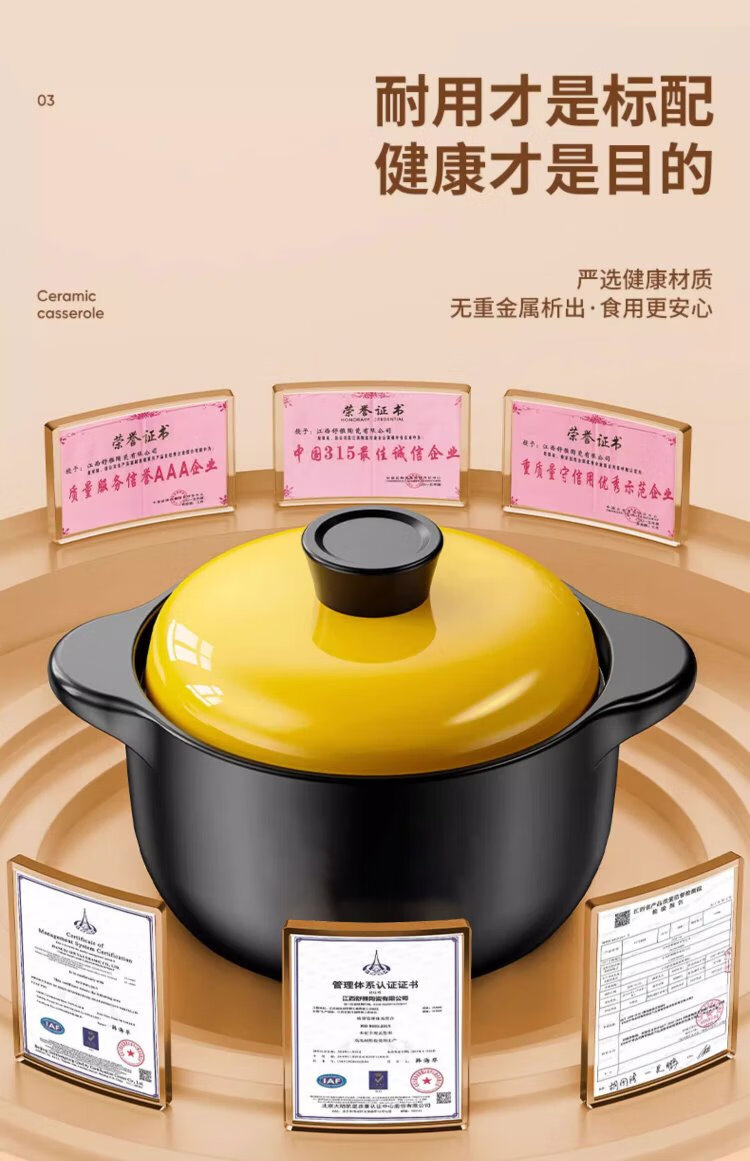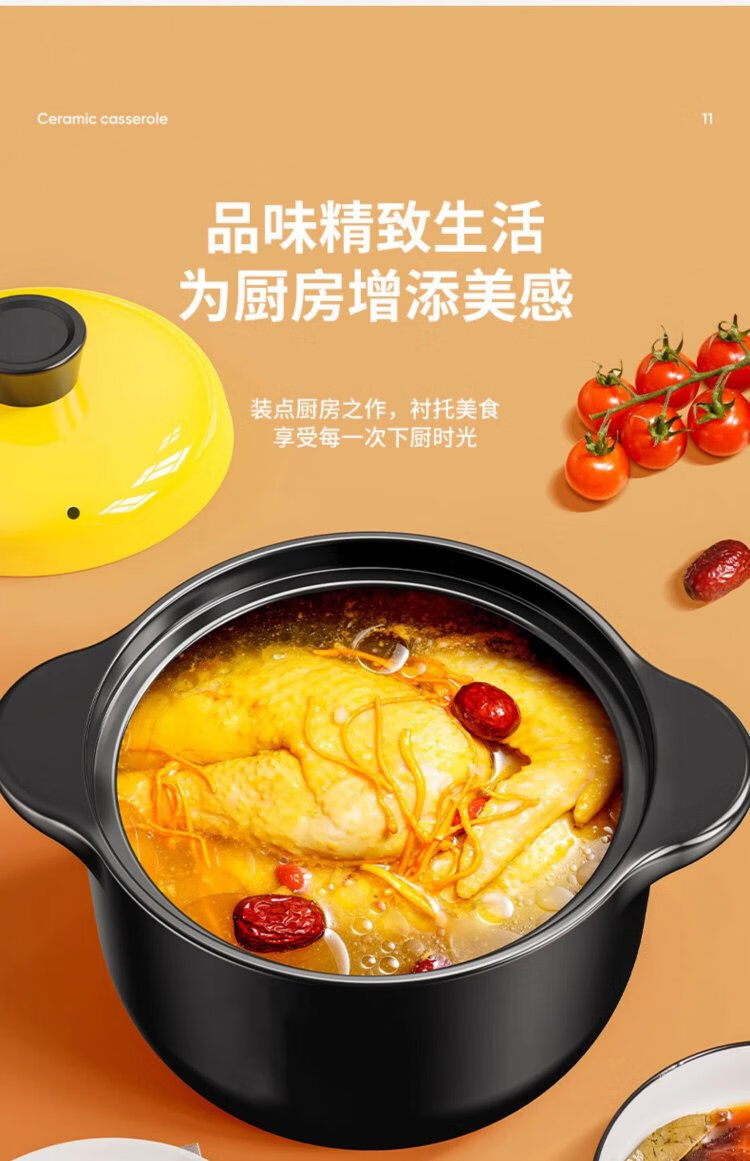 Persson casserole soup pot health pot high temperature resistant non-cracking ceramic stew pot household gas stew pot yellow lid 5L