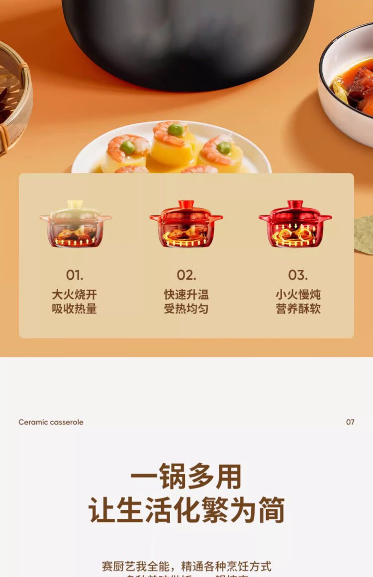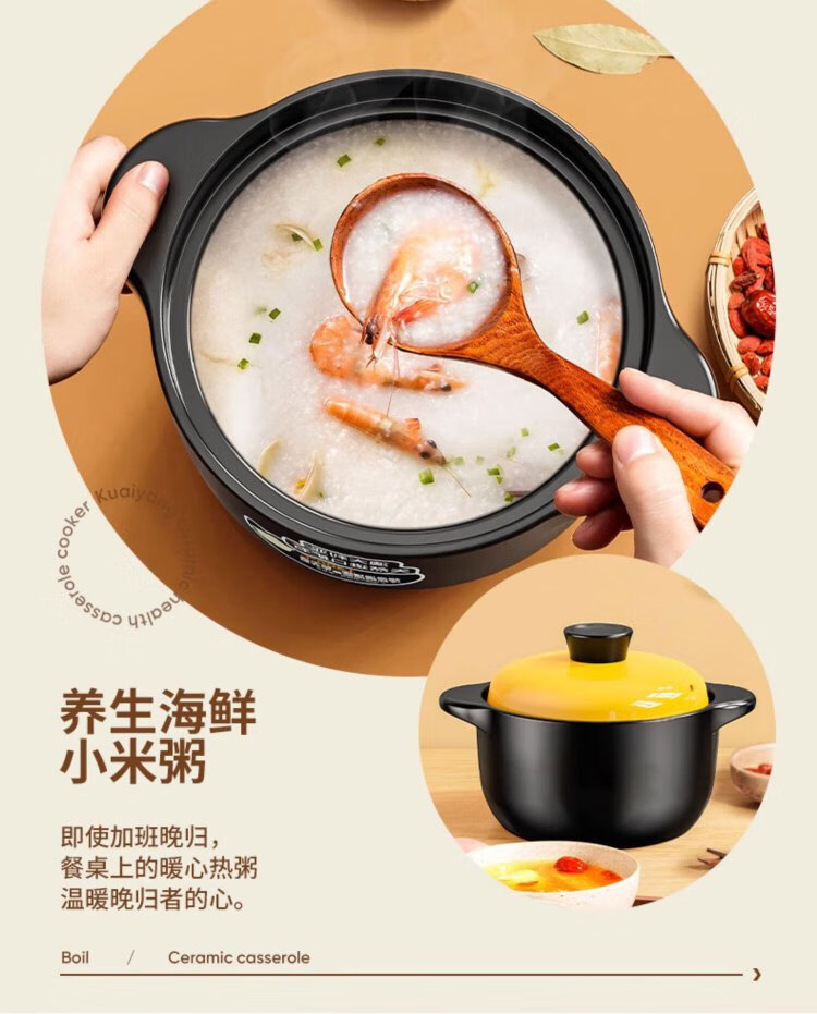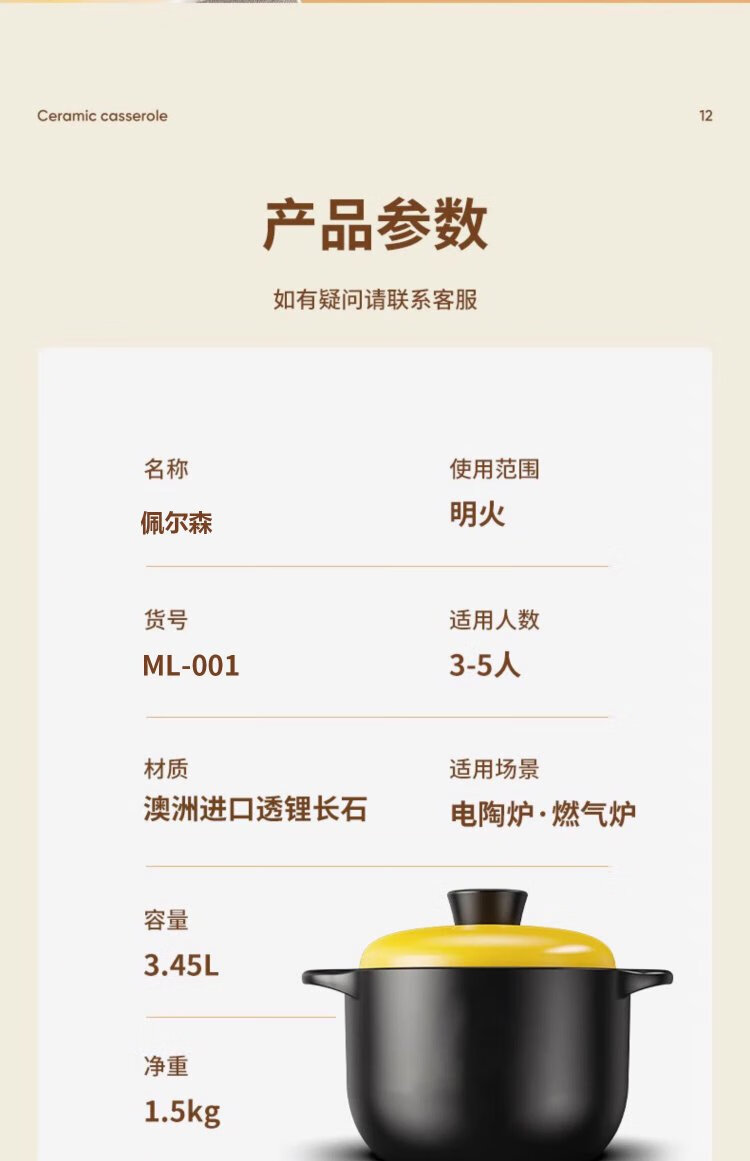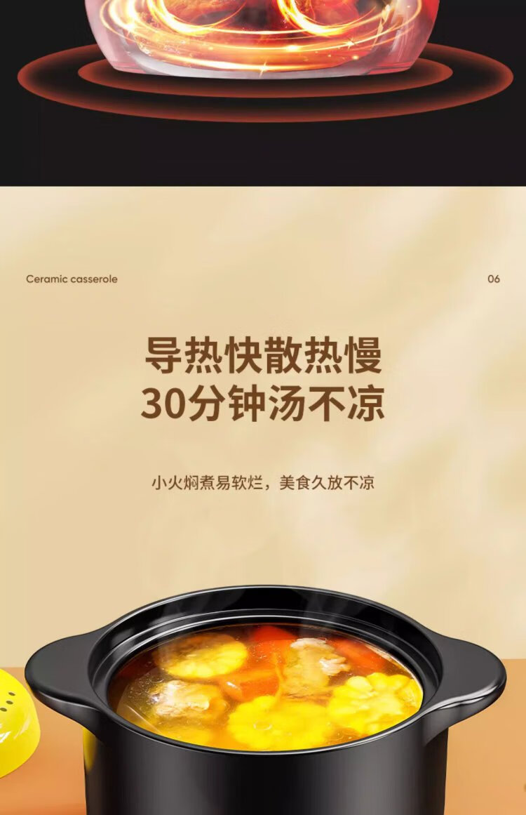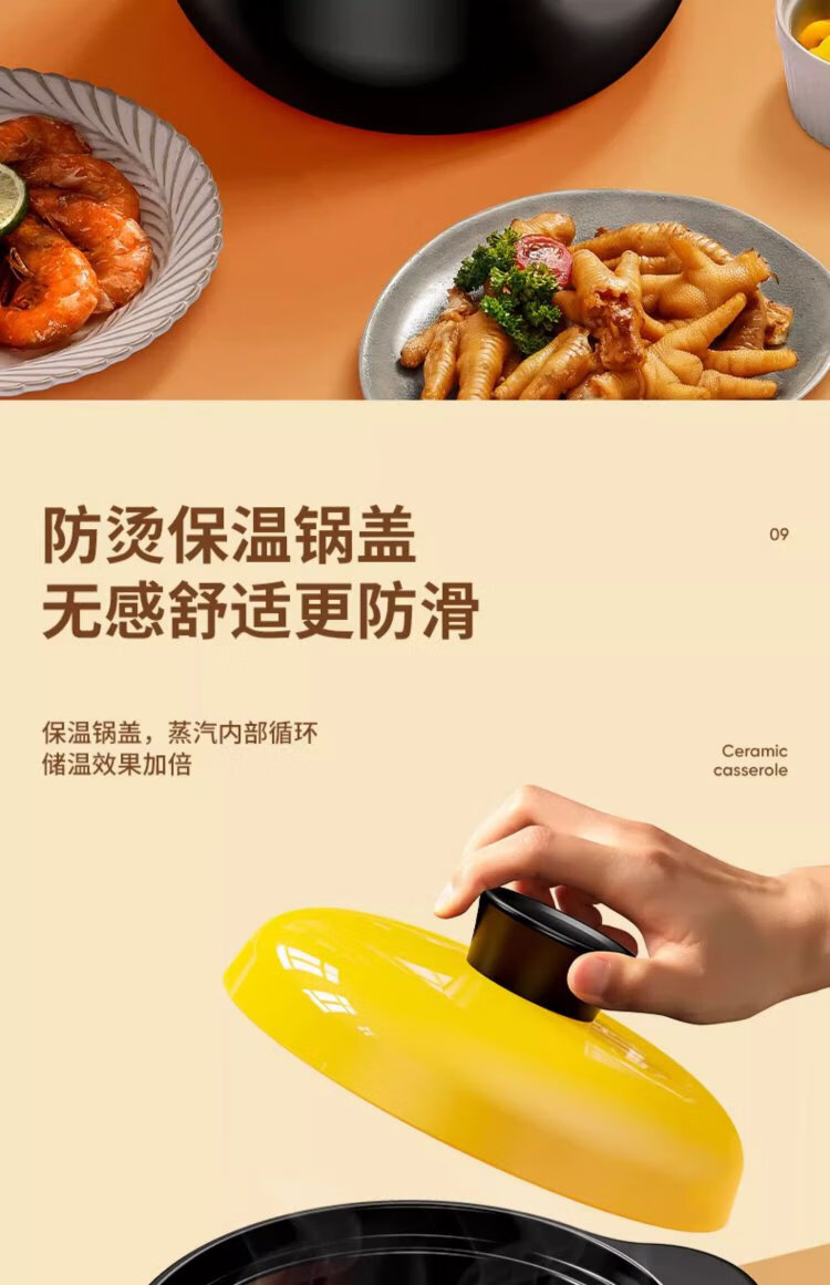 Persson casserole soup pot health pot high temperature resistant non-cracking ceramic stew pot household gas stew pot yellow lid 5L