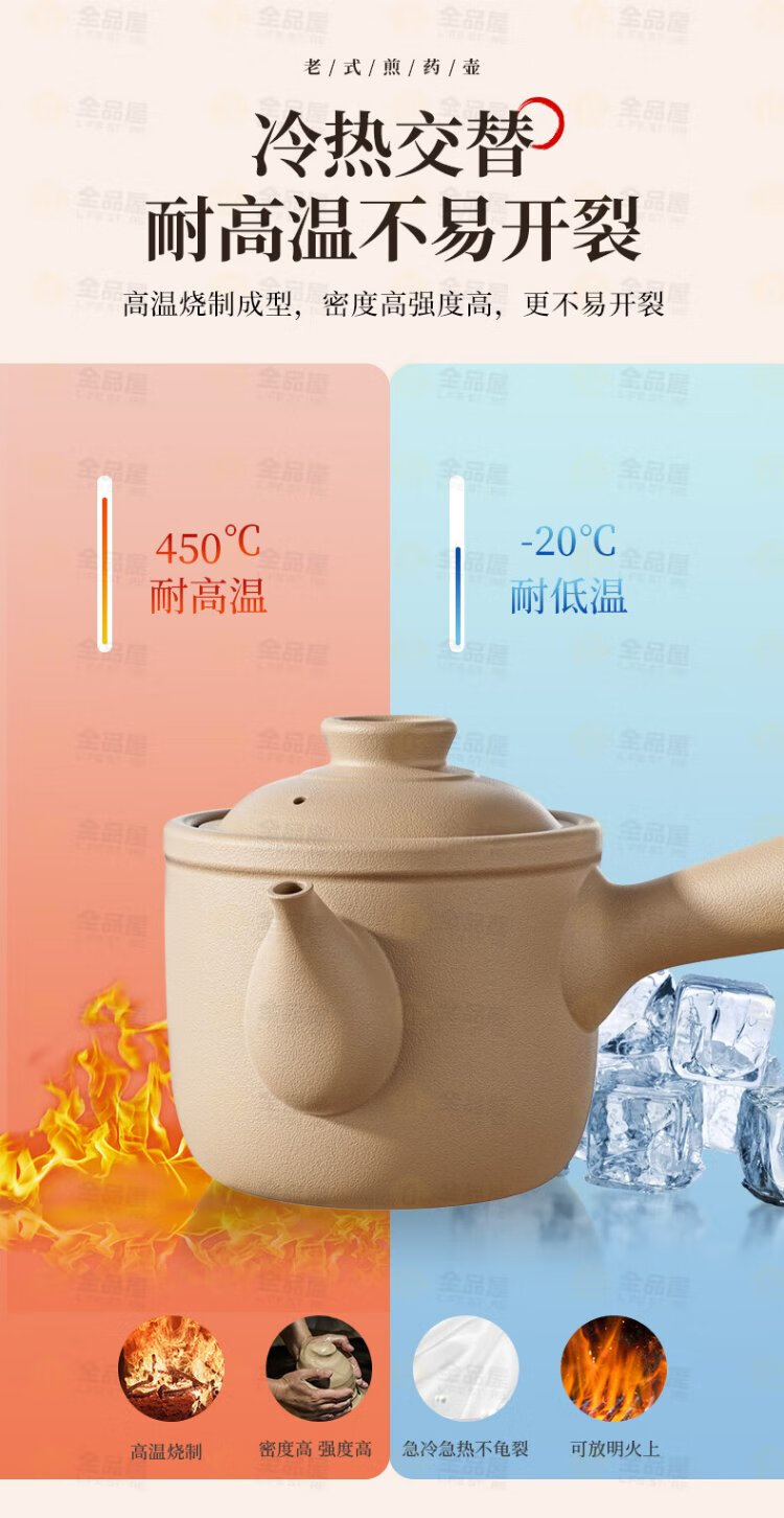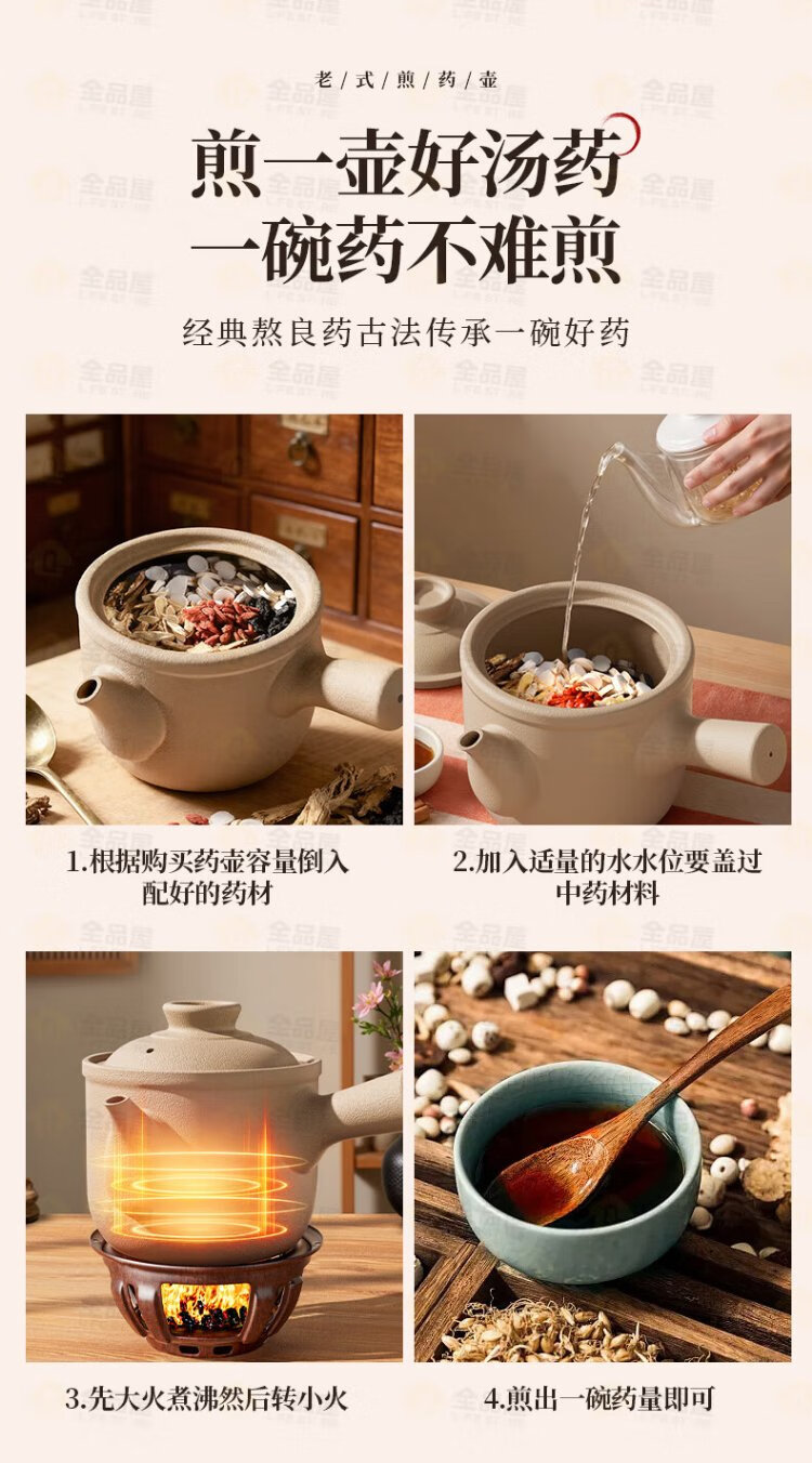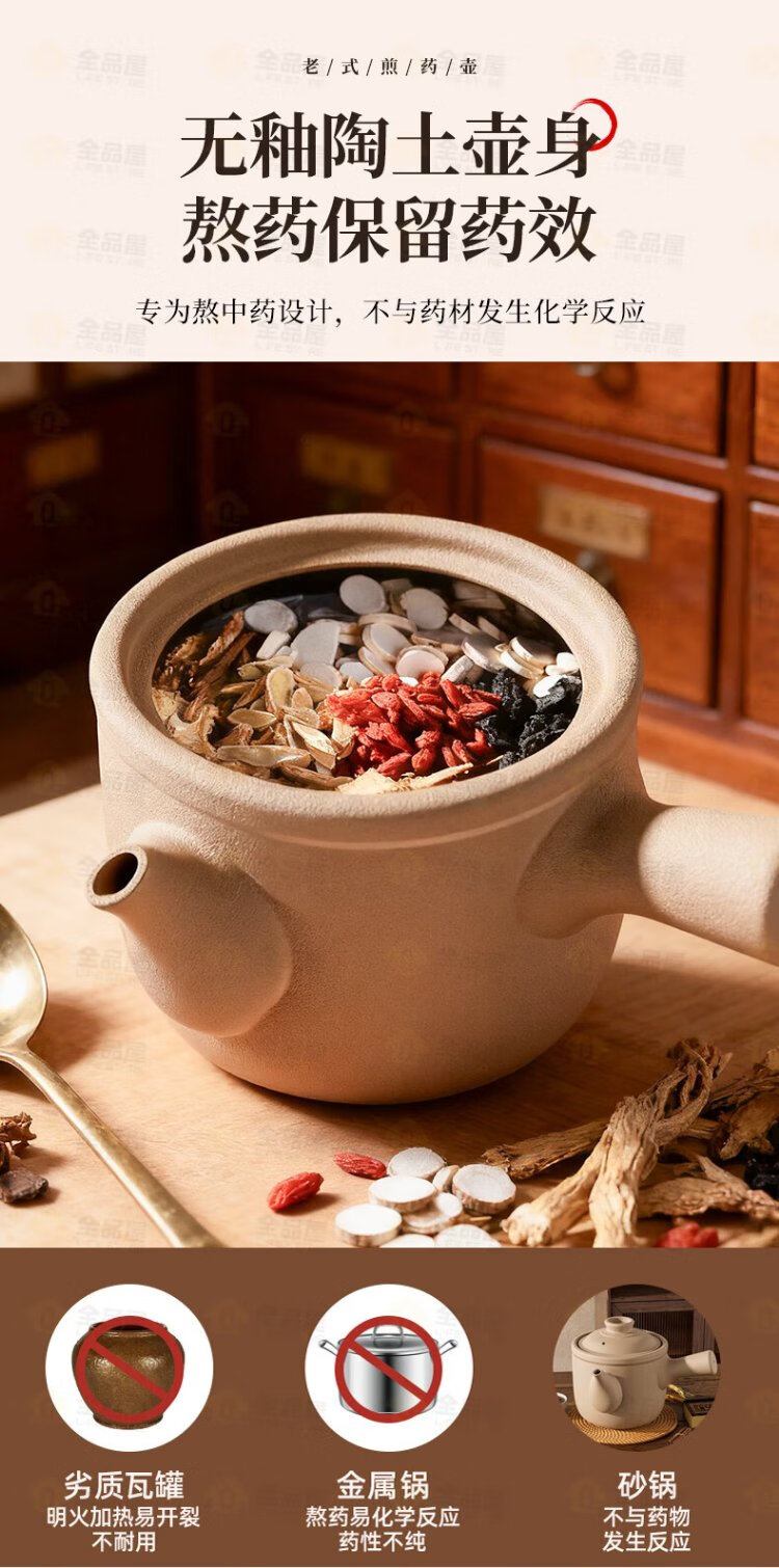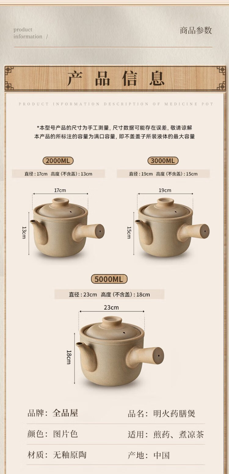 Quanpinwu old-fashioned Chinese medicine frying pan household boiling medicine casserole earthen pot boiling Chinese medicine unglazed medicine pot frying pan decoction medicine jar open fire