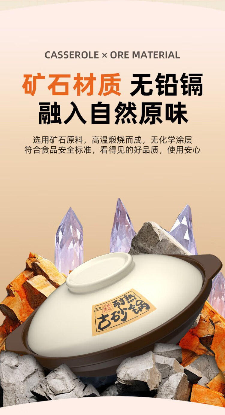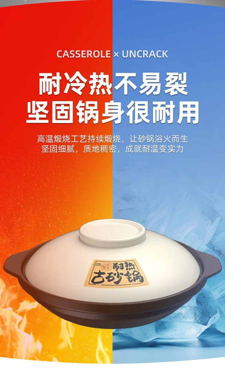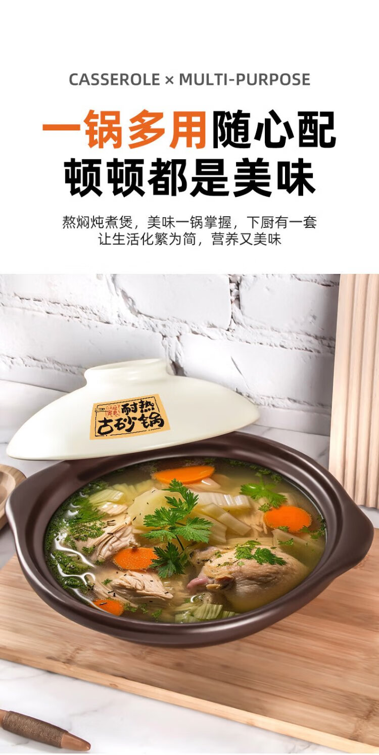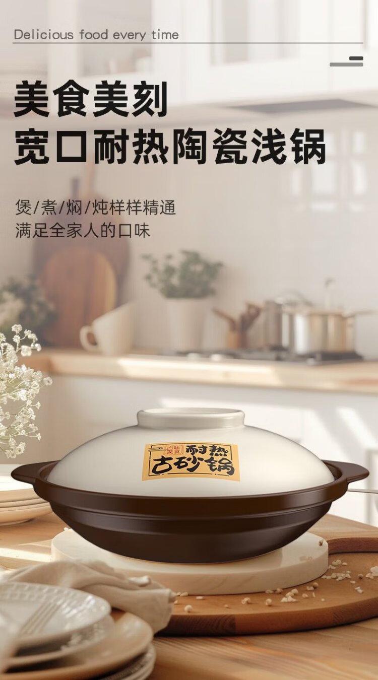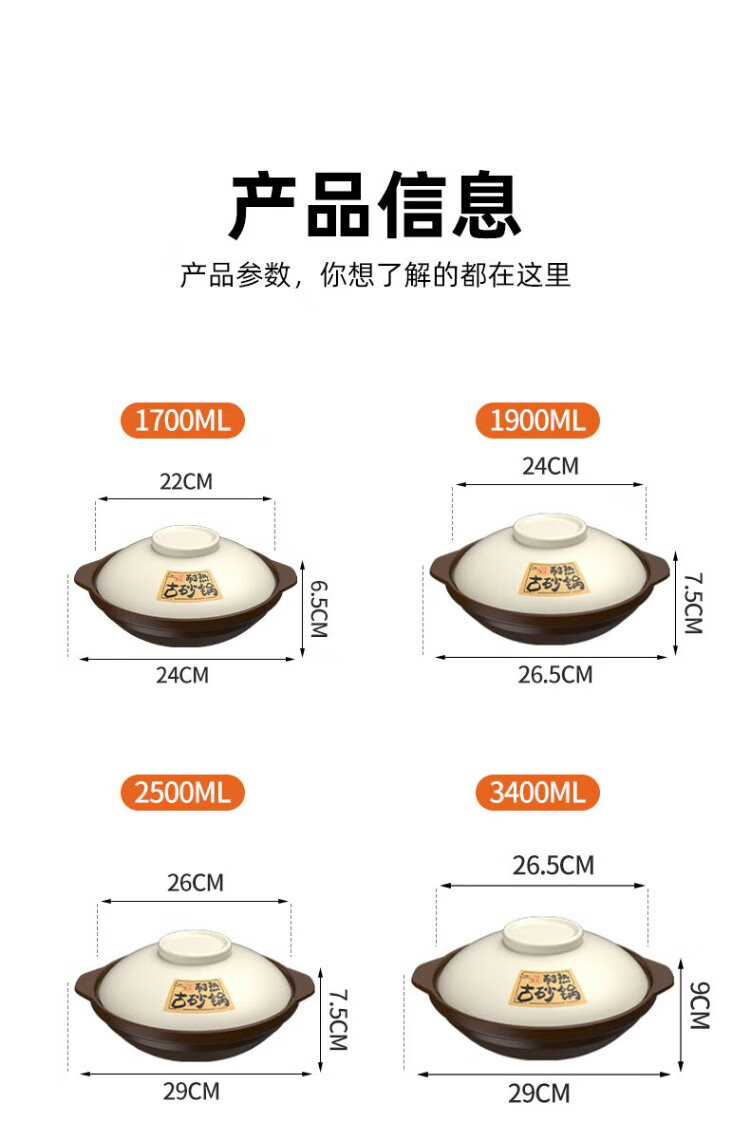 Quanpinwu Claypot Rice Claypot Special Dry-cooked Non-Cracked Clay Pot High-Temperature Resistant Shallow Pot Wide Mouth Dry-cooked Pot 1.9L
