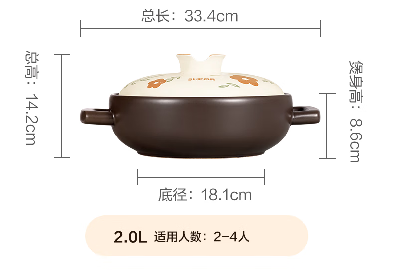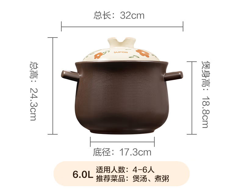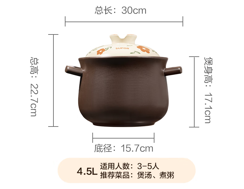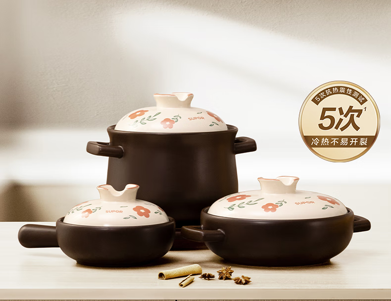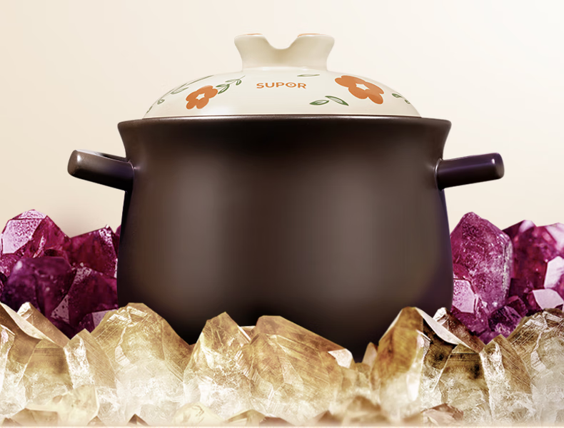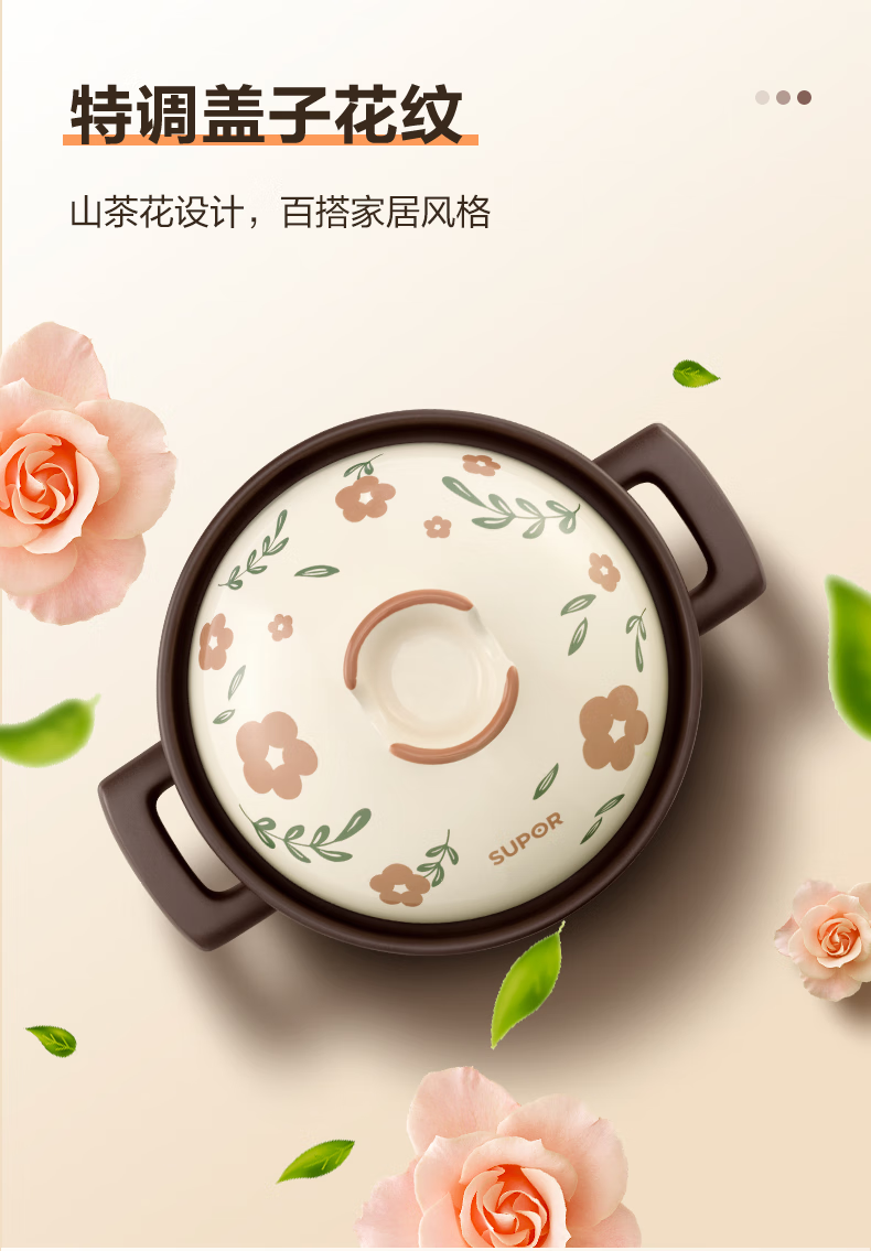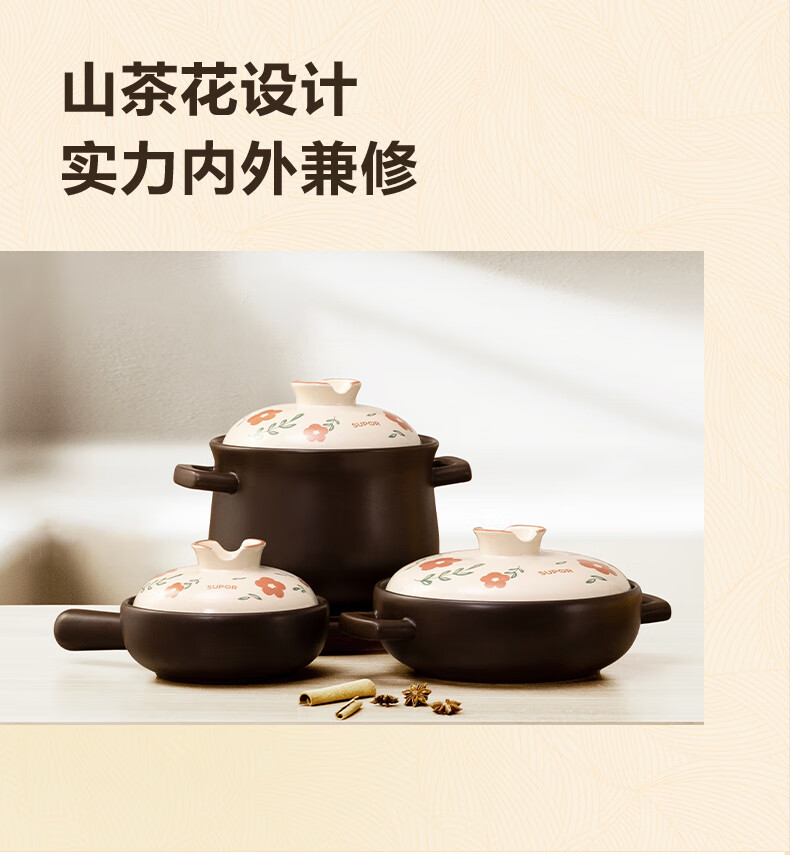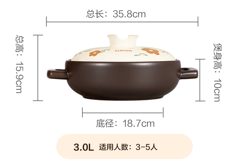 SUPOR ceramic clay pot for soup, medicine, porridge, rice, stew pot, health soup pot, big belly pot, high temperature resistance and open flame special ceramic pot 3L