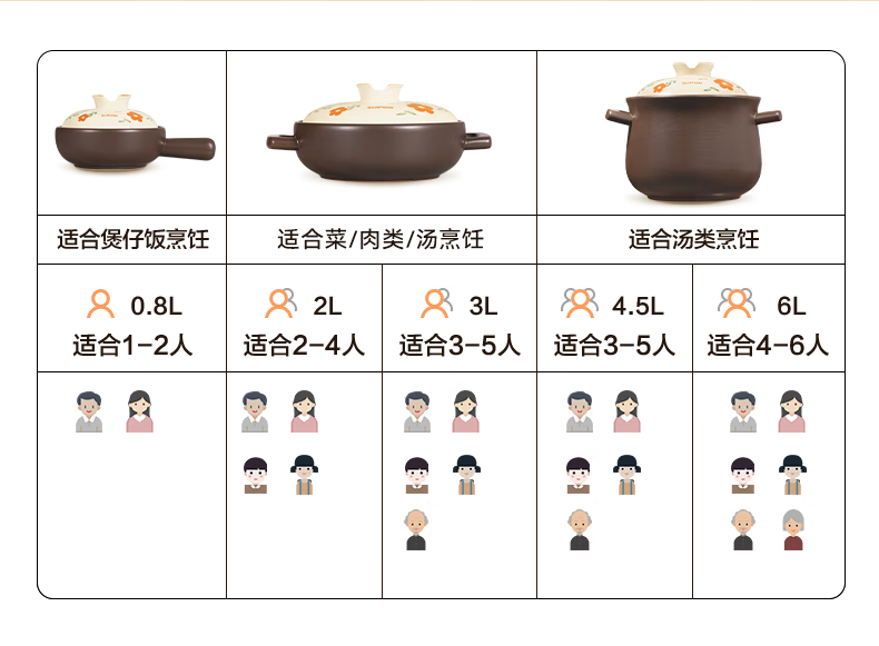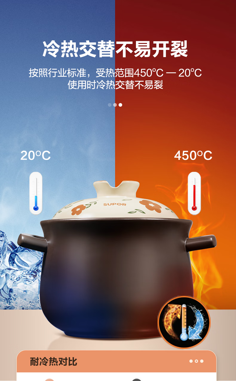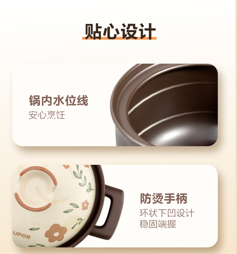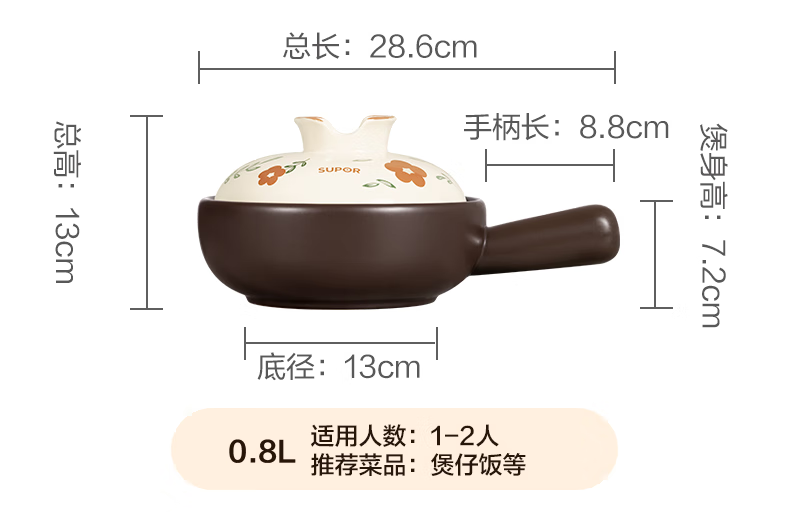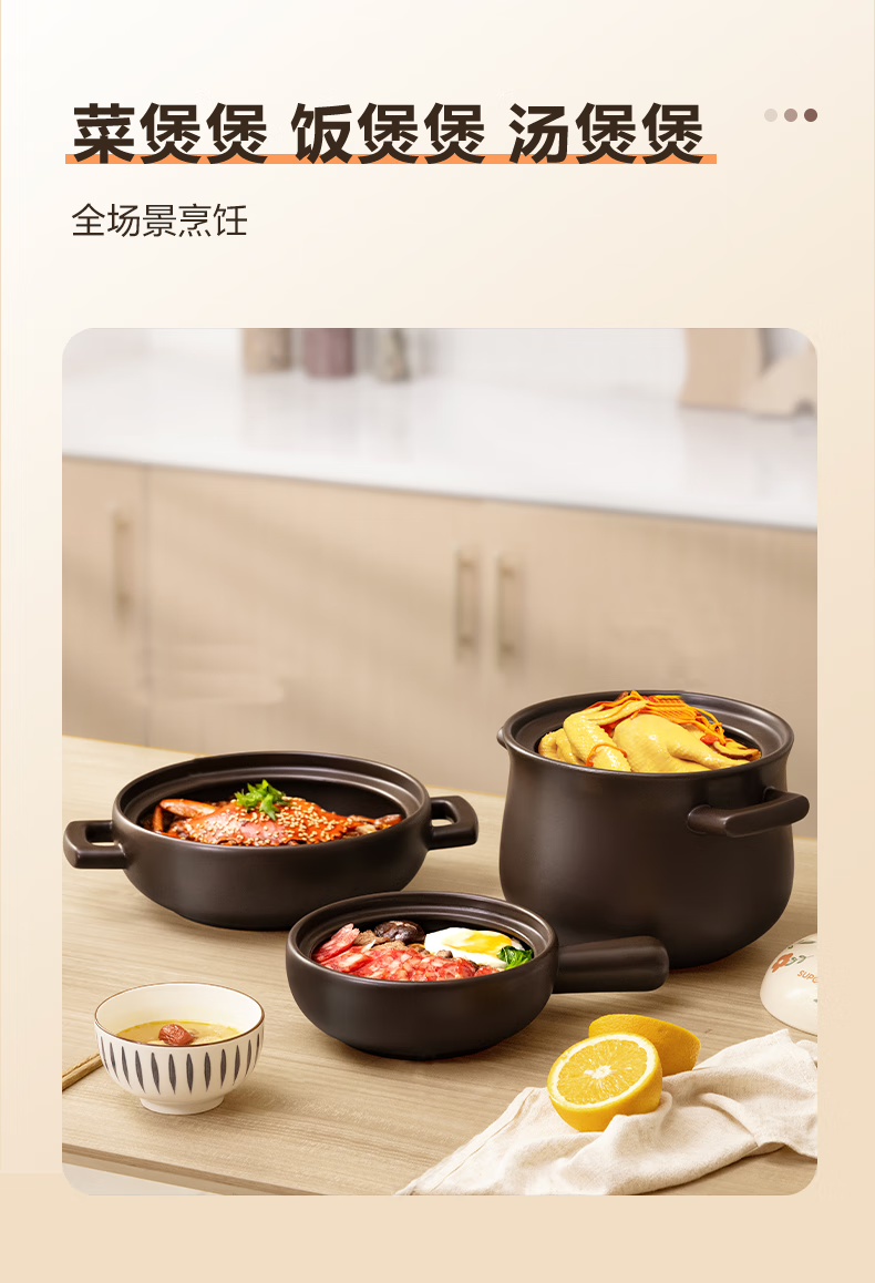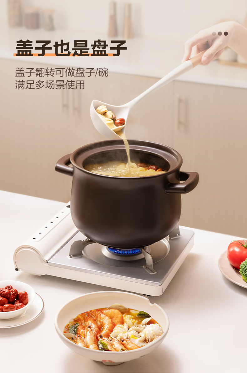 SUPOR ceramic clay pot for soup, medicine, porridge, rice, stew pot, health soup pot, big belly pot, high temperature resistance and open flame special ceramic pot 3L