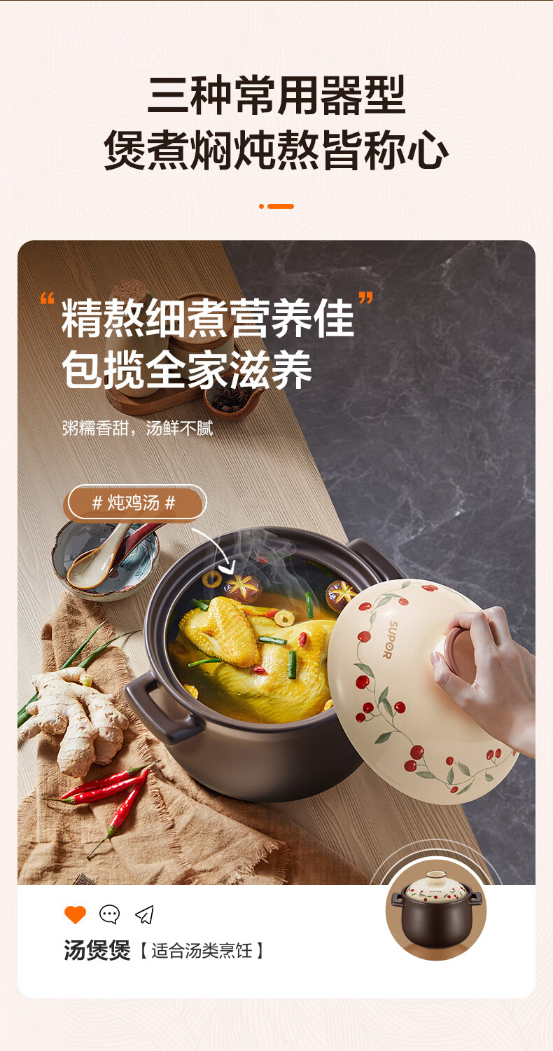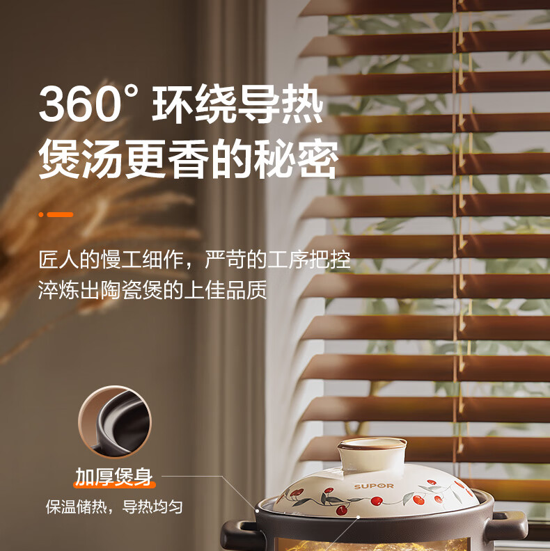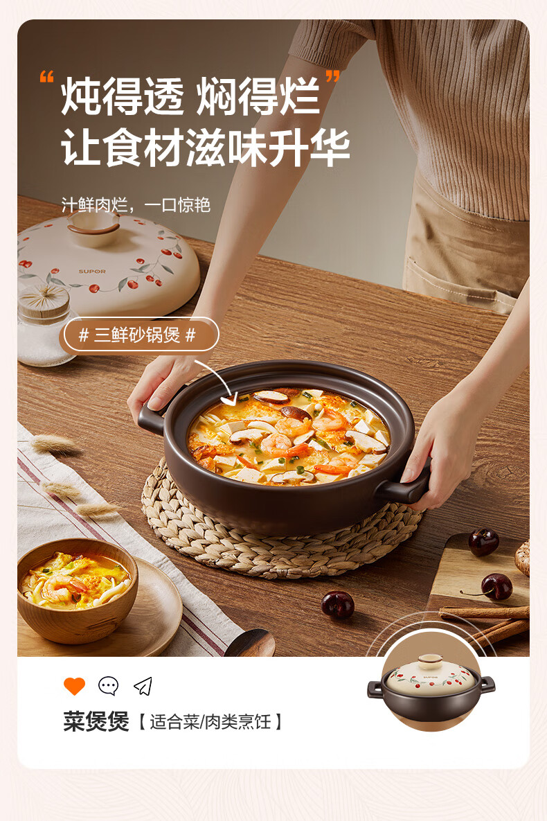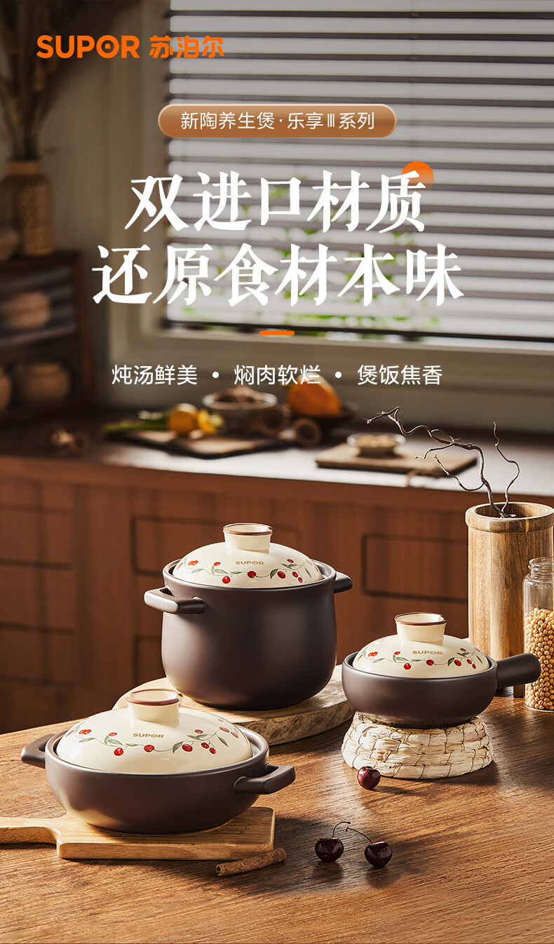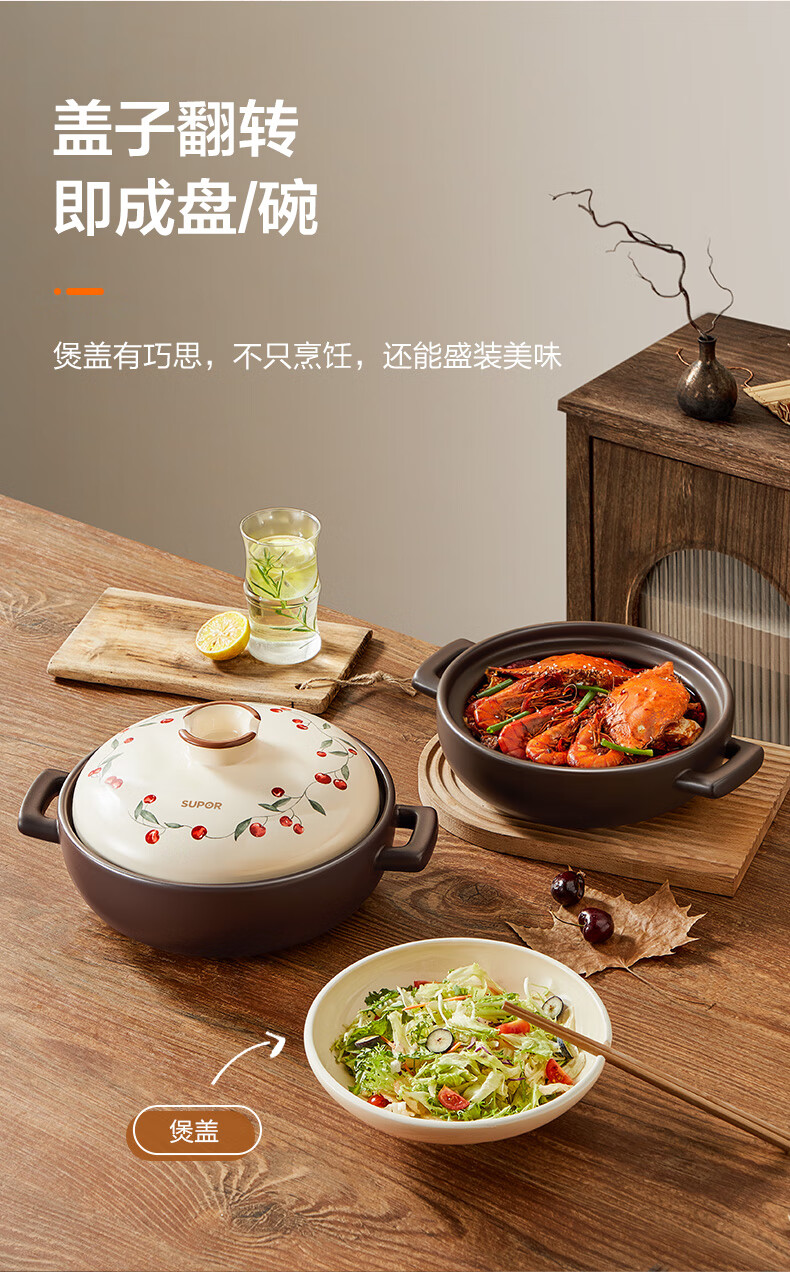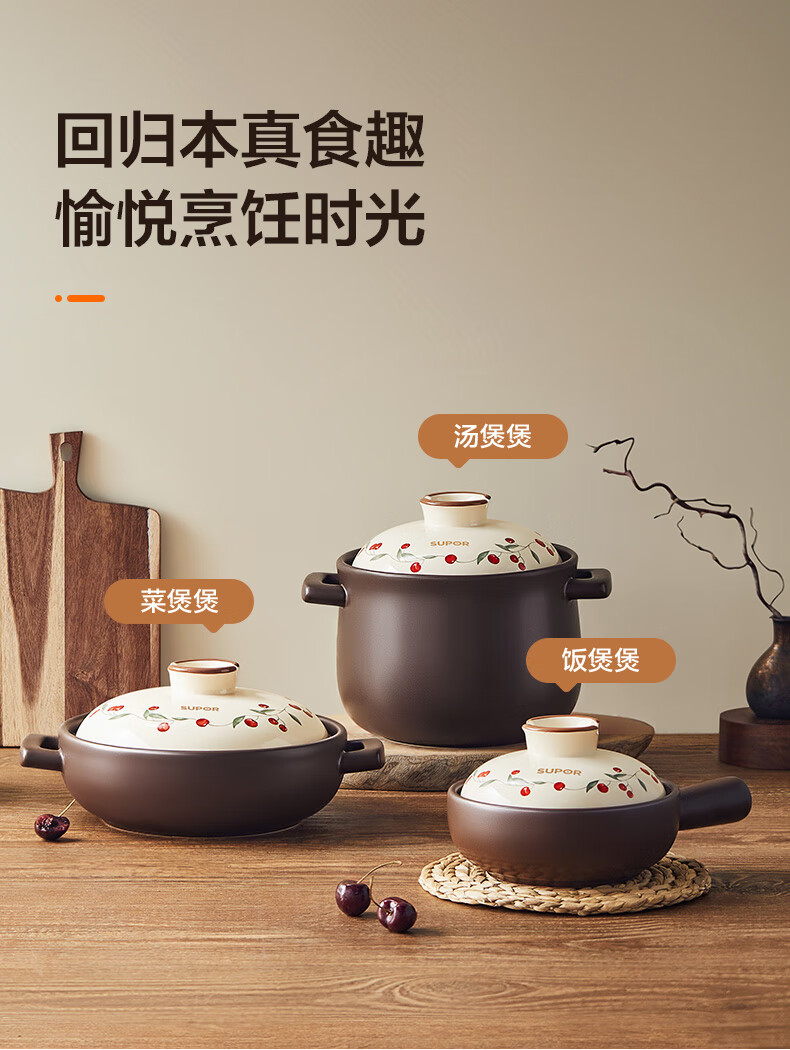 SUPOR ceramic pot, soup pot, household casserole soup pot, high temperature resistant casserole, rice casserole, gas open flame special vegetable pot, stew, stew, 3-4 servings, 3L