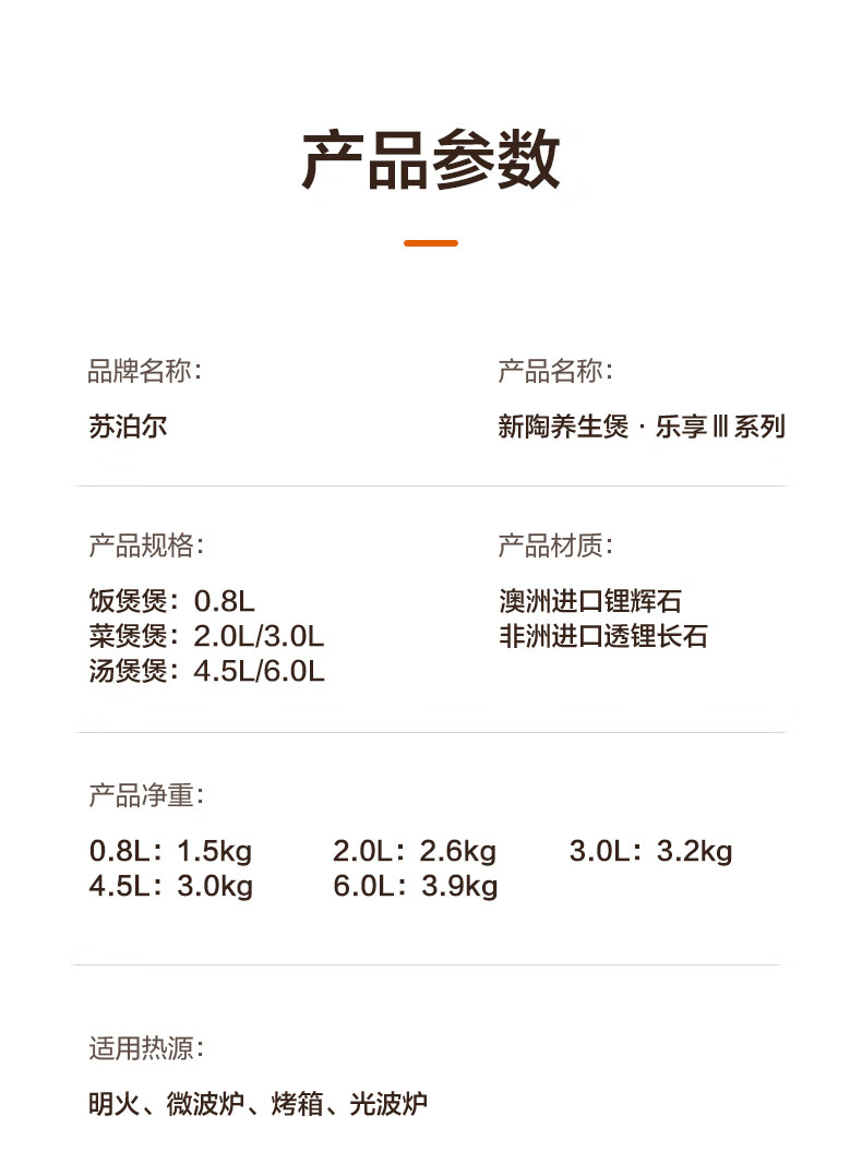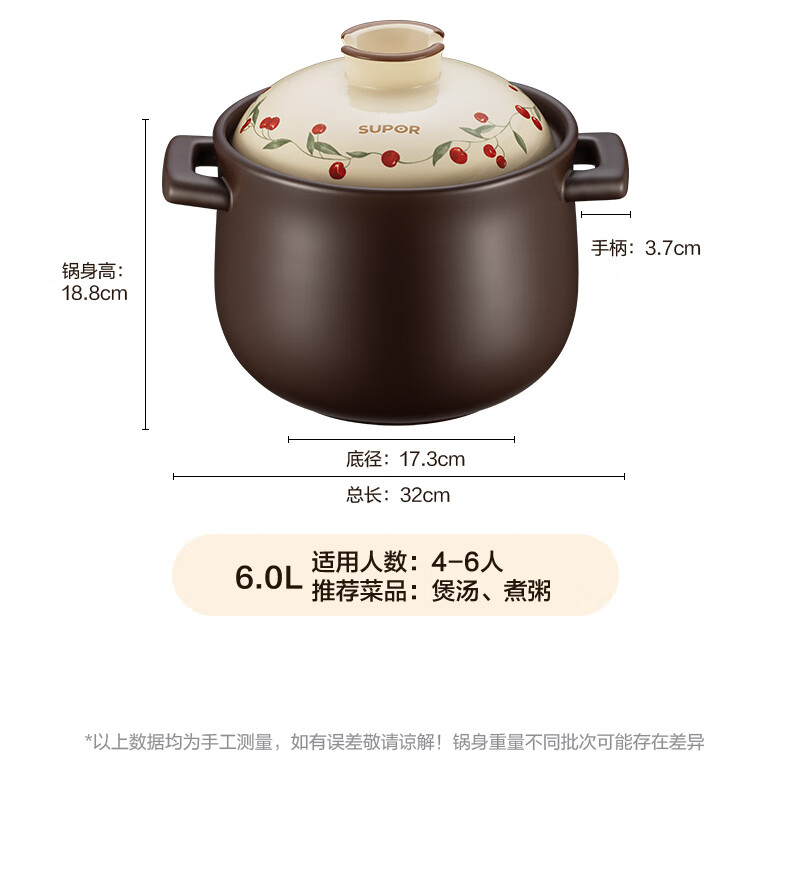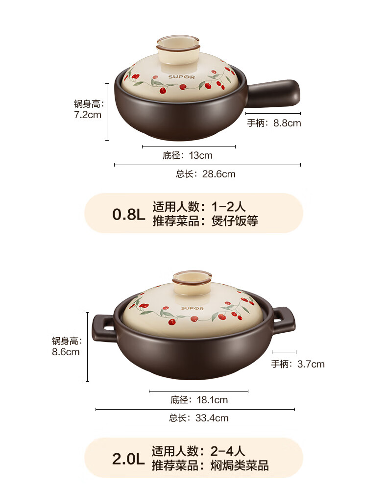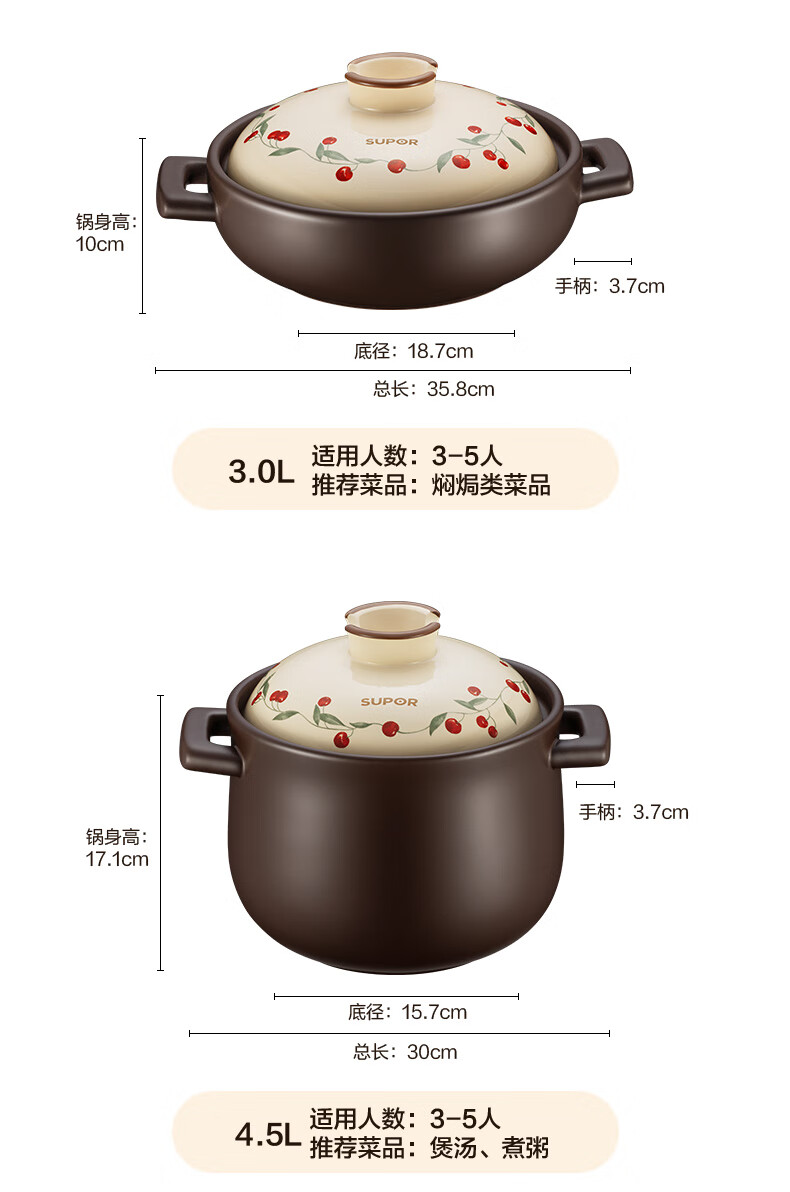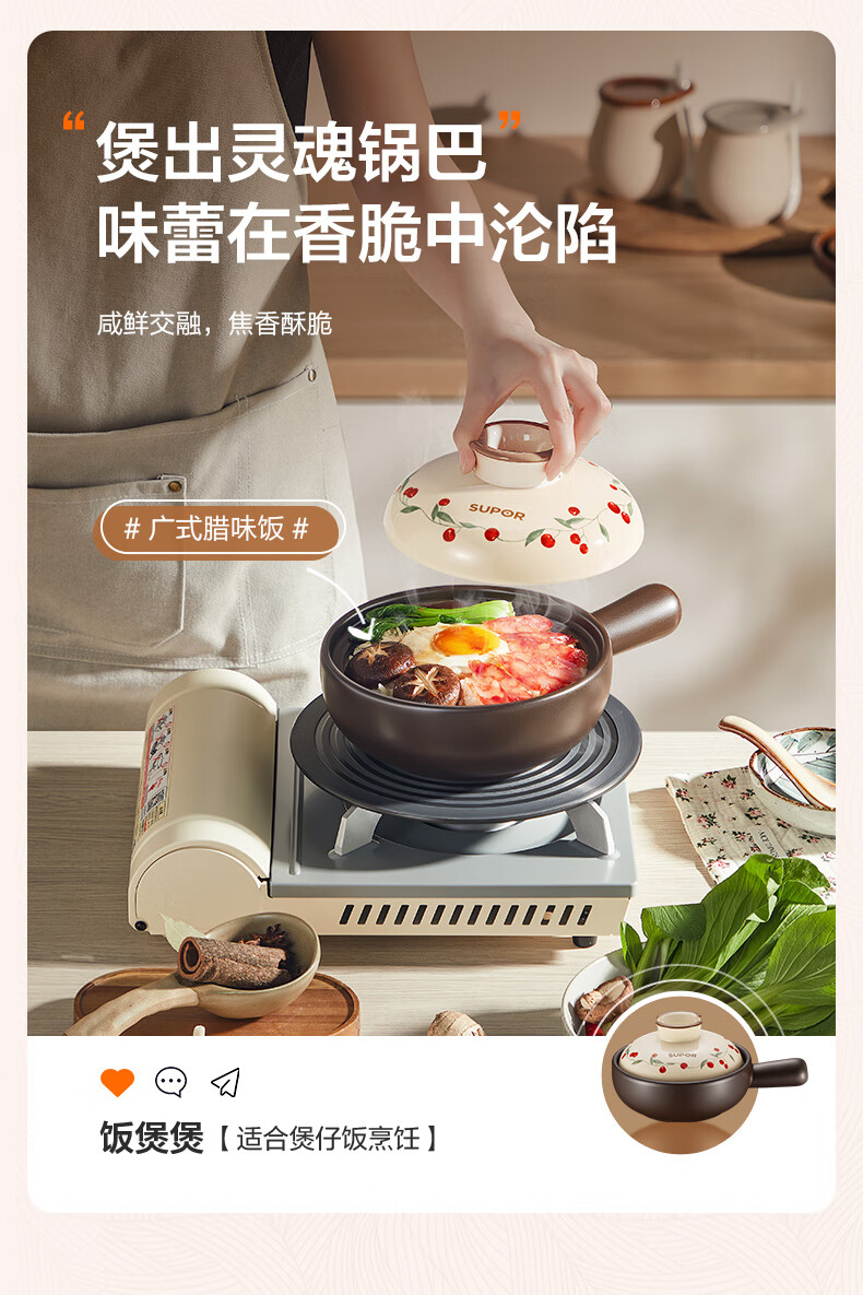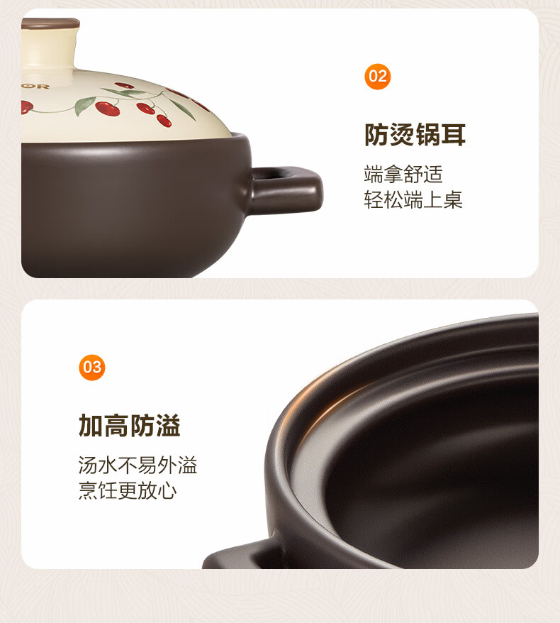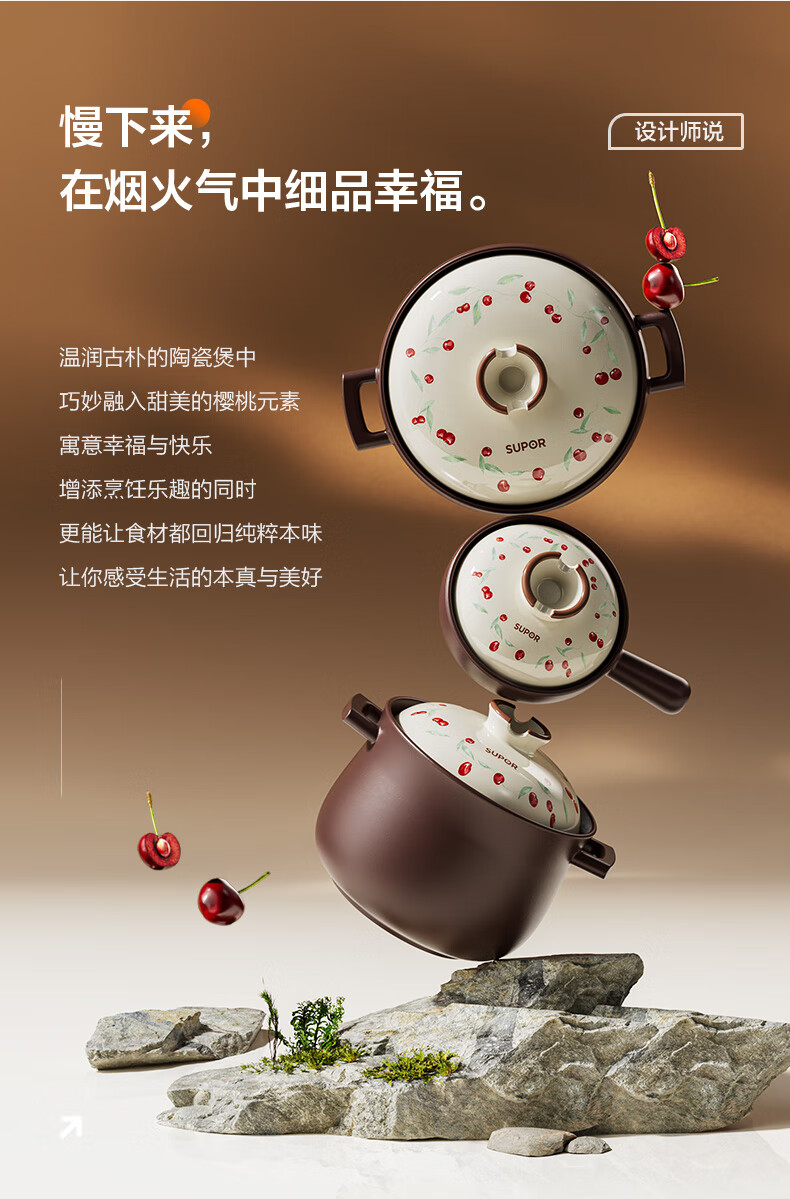 SUPOR ceramic pot, soup pot, household casserole soup pot, high temperature resistant casserole, rice casserole, gas open flame special vegetable pot, stew, stew, 3-4 servings, 3L