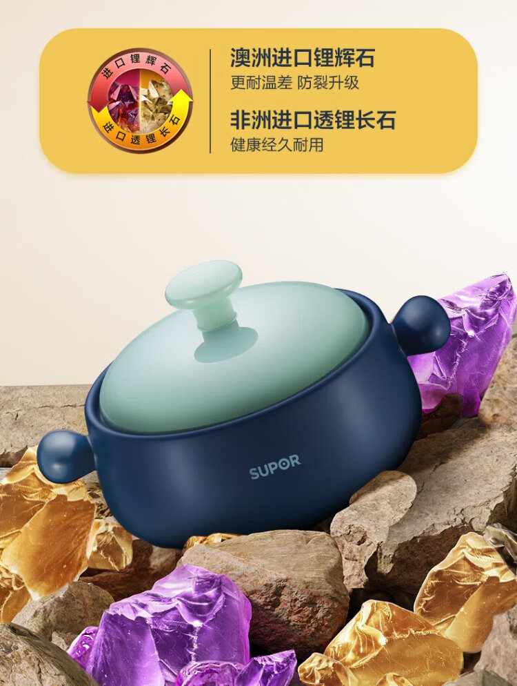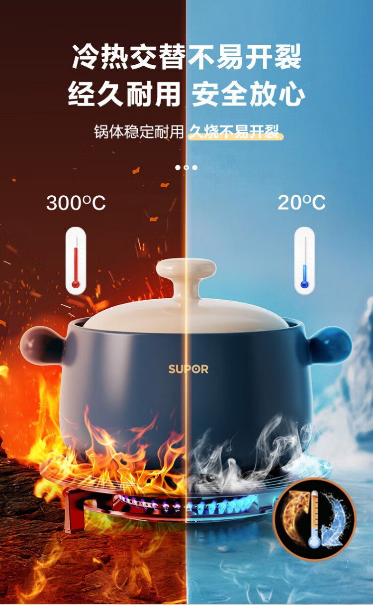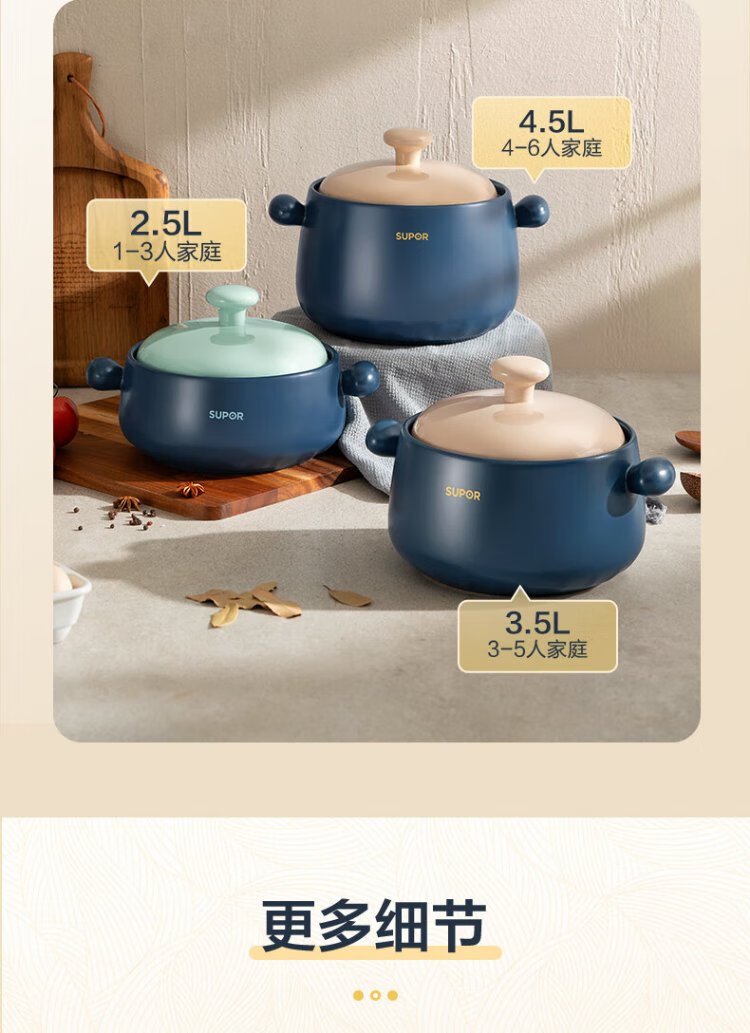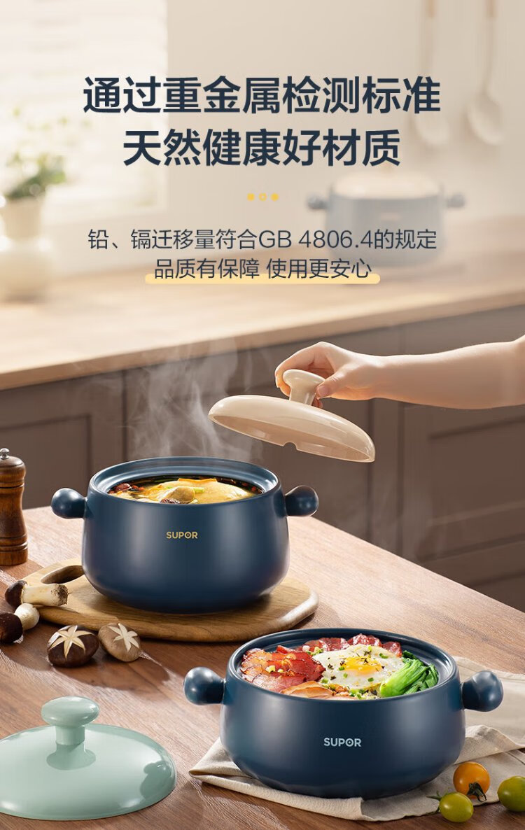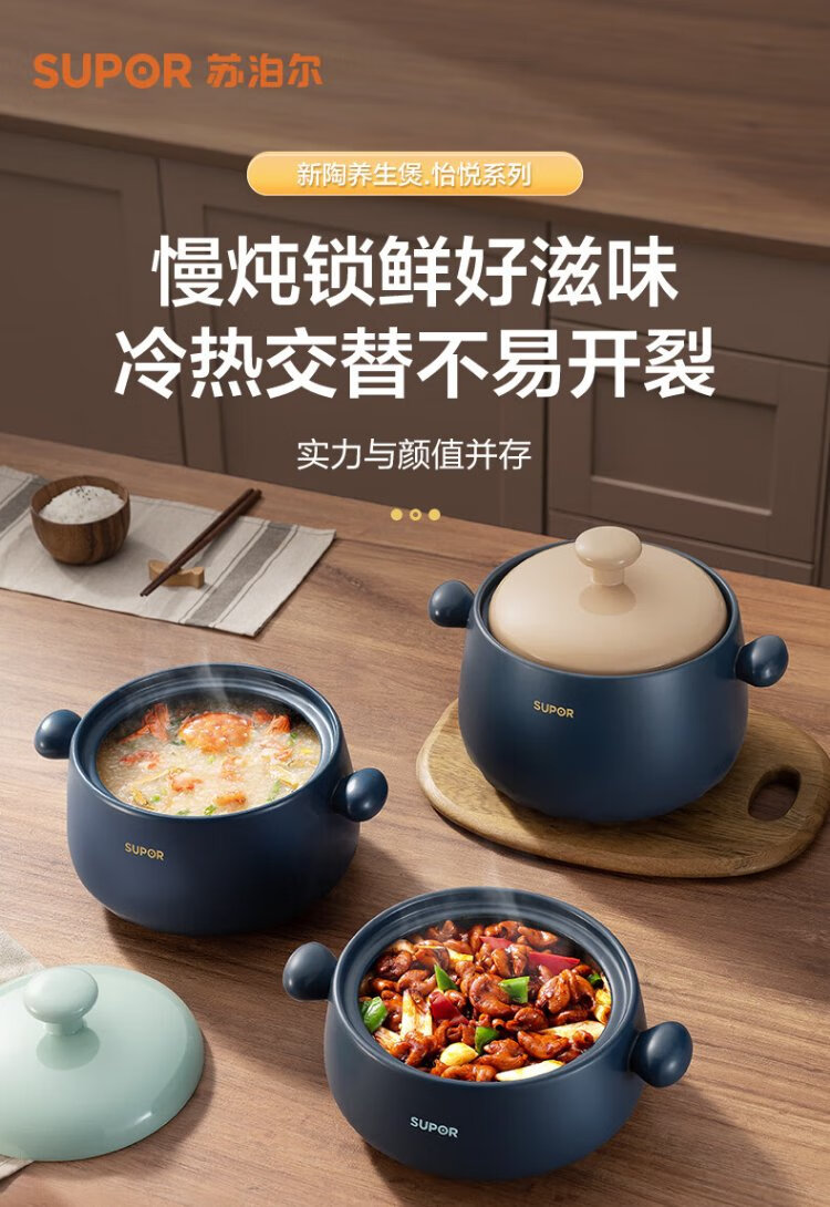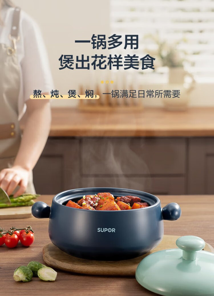 SUPOR casserole is high temperature resistant and not easy to crack. Household clay pot rice casserole Chinese medicine decoction soup casserole stew pot ceramic pot deep soup pot suitable for 3~5 people 3.5L