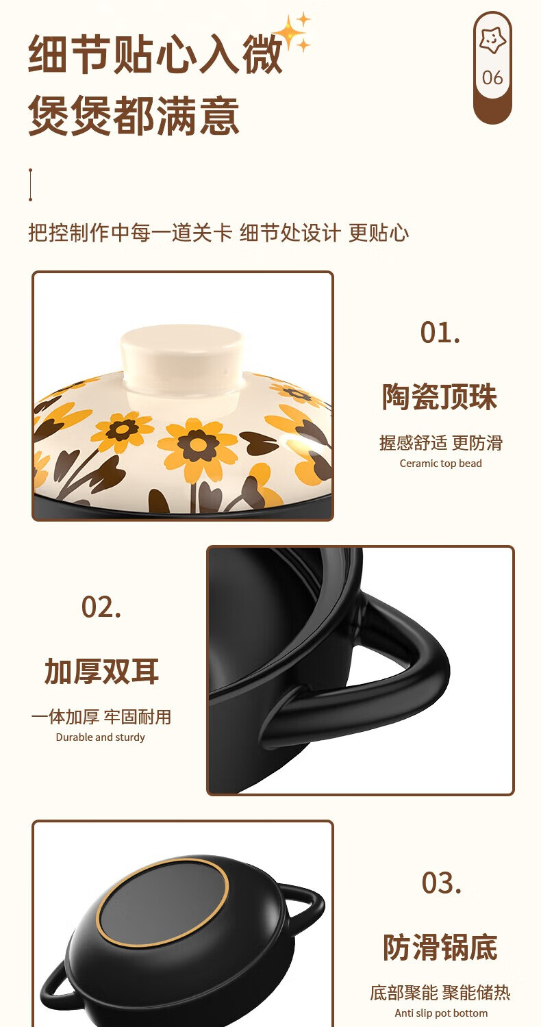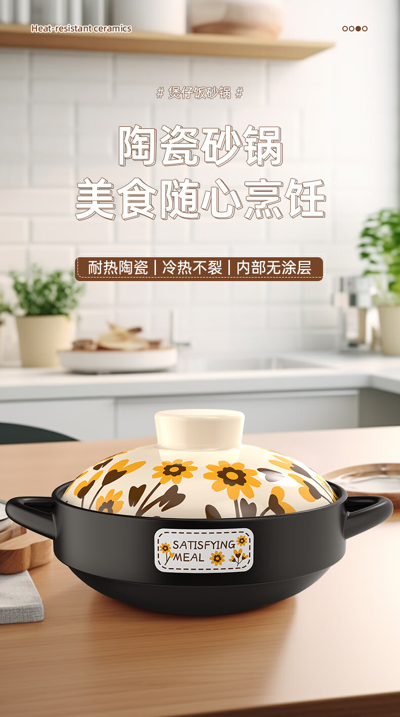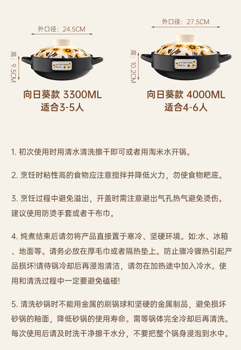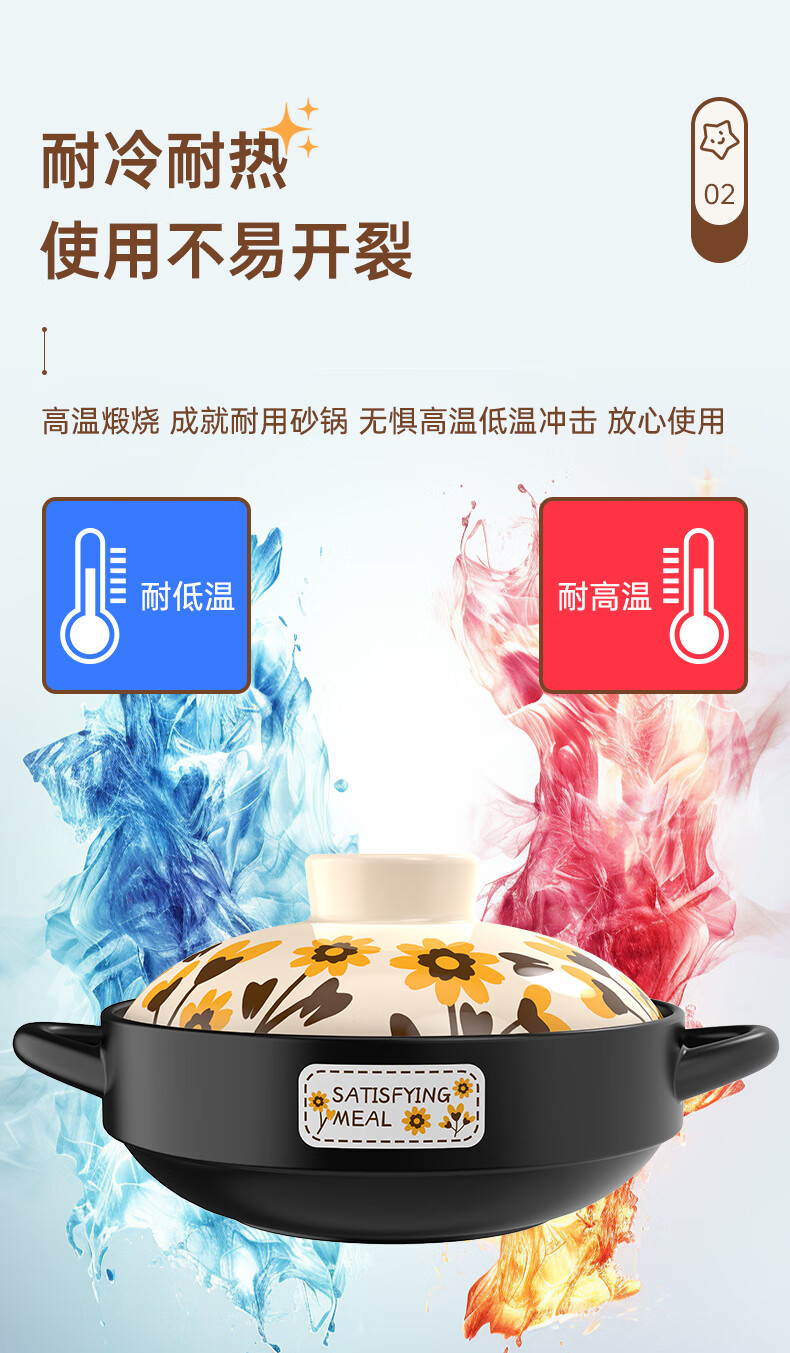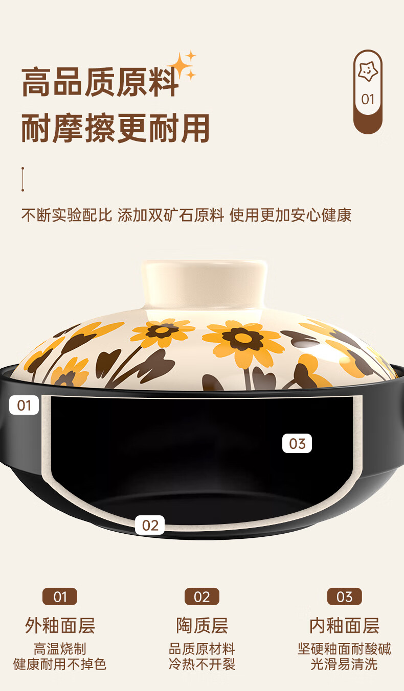 Kangshu Sunflower Household Casserole Gas Stove Open Flame High Temperature Resistance Dry-cooked Claypot Rice Gas Stove Special Soup Pot Casserole Heat Resistant Sunflower Casserole Servings 3-5 3.3L