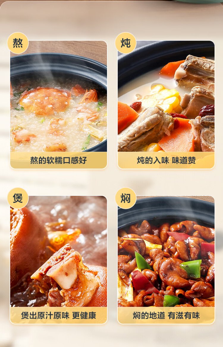 SUPOR casserole is high temperature resistant and not easy to crack. Household clay pot rice casserole Chinese medicine decoction soup casserole stew pot ceramic pot suitable for 3~5 people 3.5L