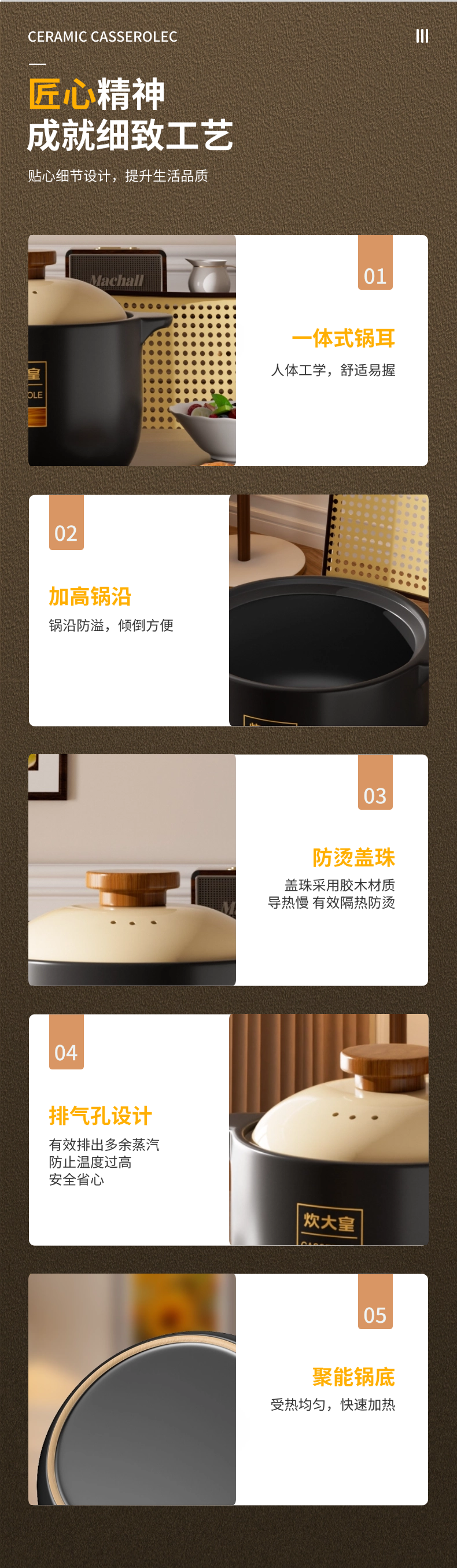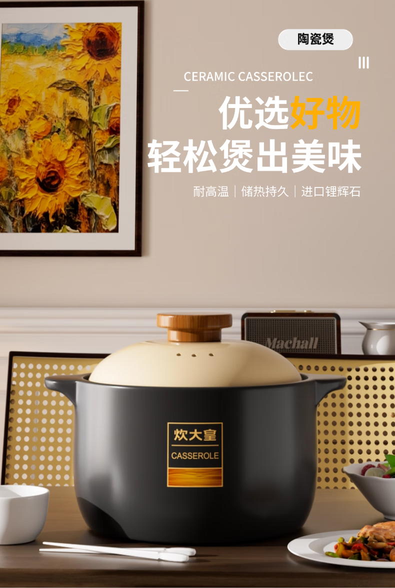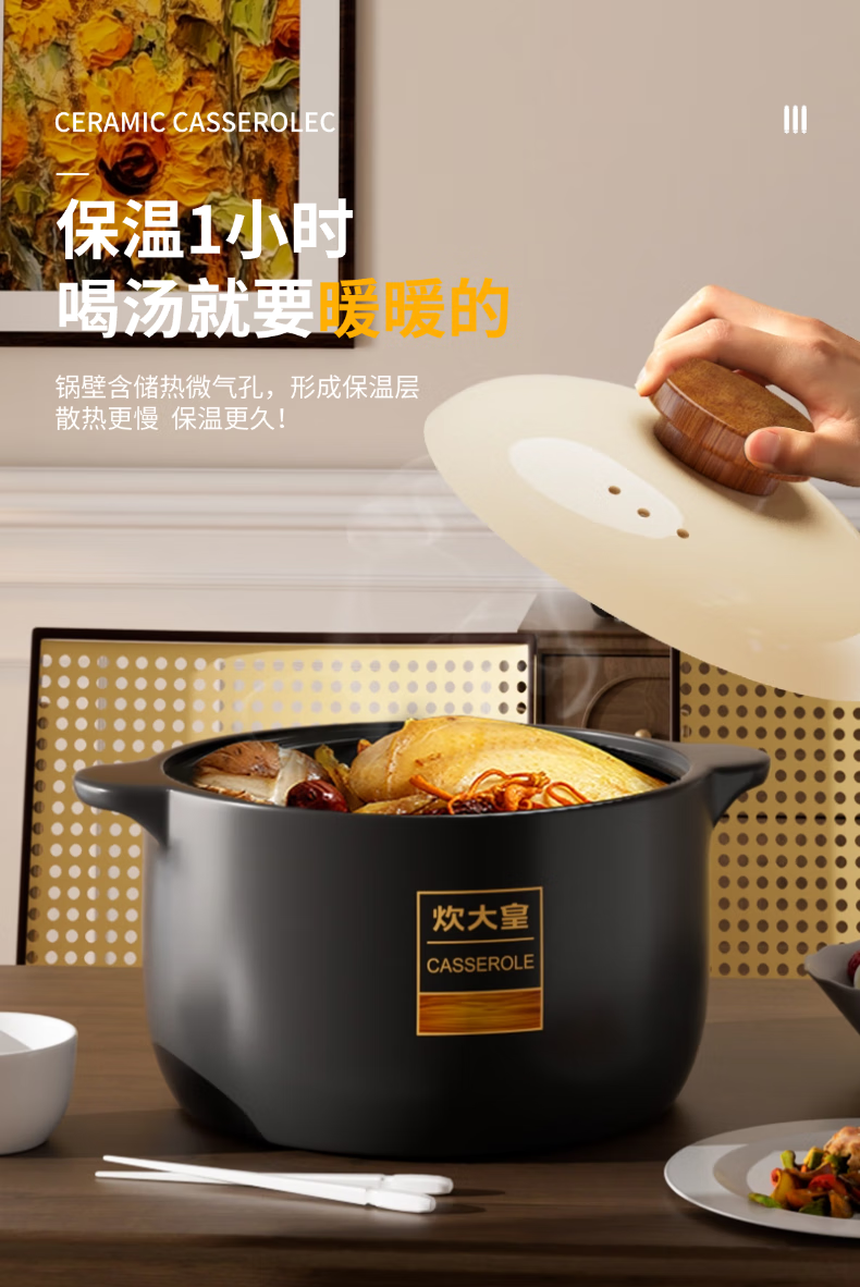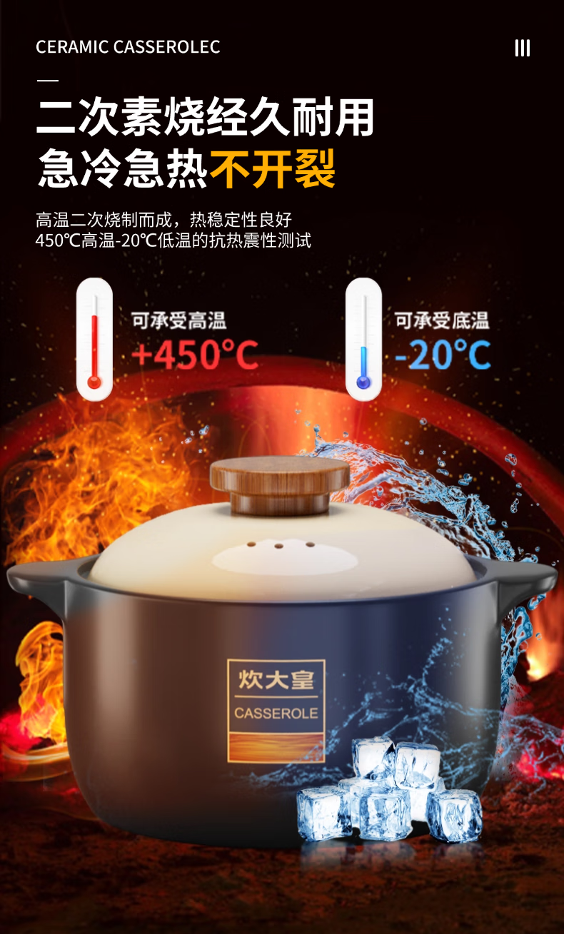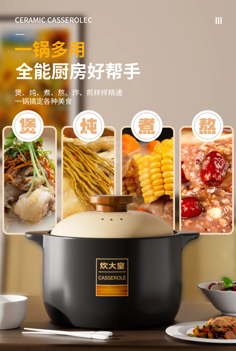 Cuidahuang Nordic style casserole stew pot household high temperature resistant soup pot gas direct burning soup pot stew soup health pot big belly pot dry cooking without cracking suitable for 3-6 people 5L