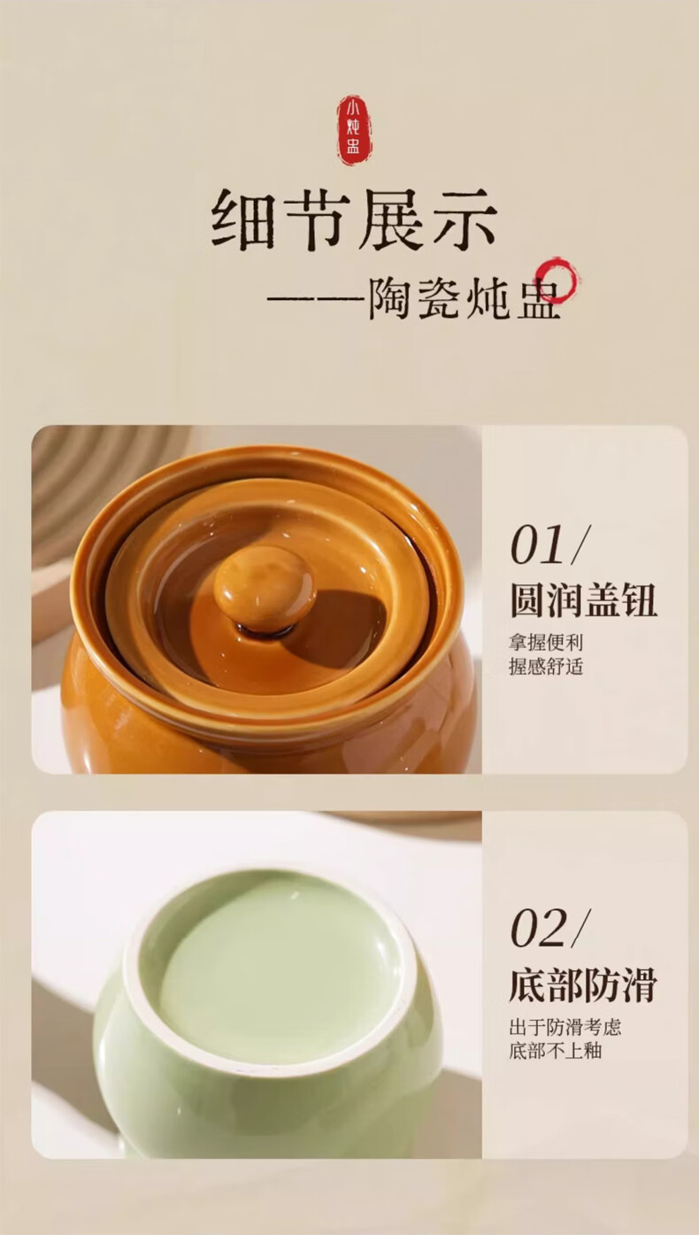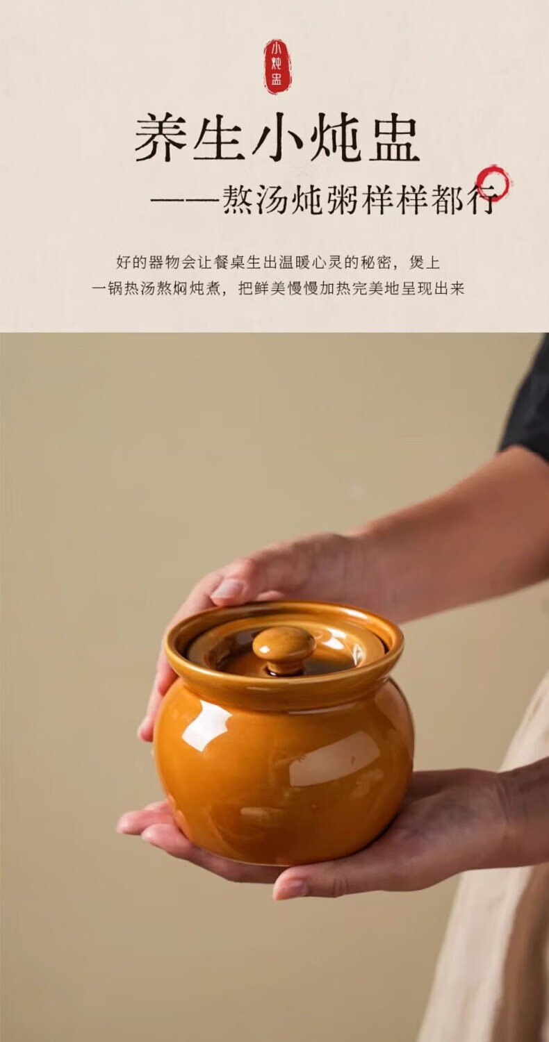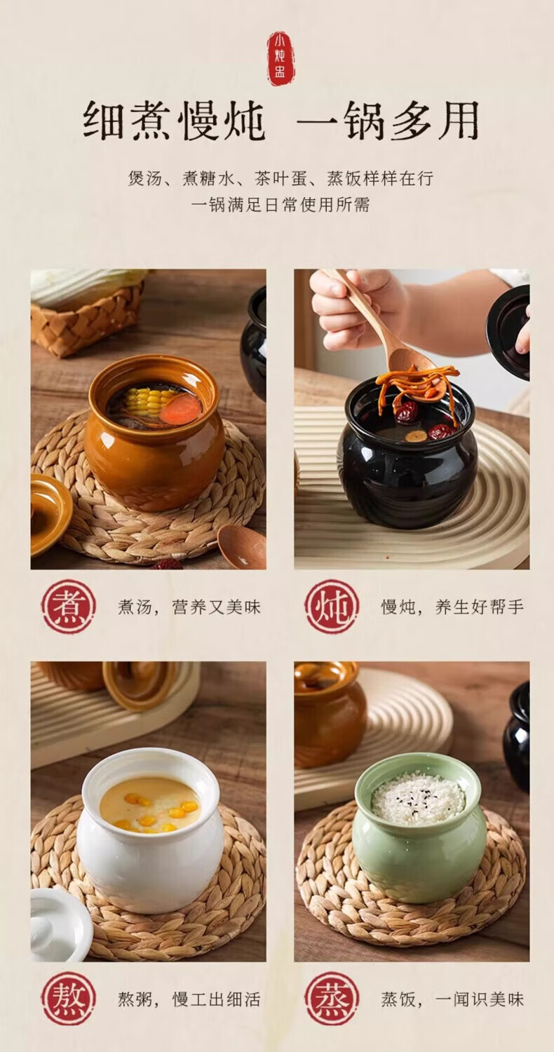 Earthen pot stew pot with water-proof red bird soup, steamed egg stew pot with lid, Chinese style Shaxian snack ceramic stew pot, green stew pot, one pack 500ml