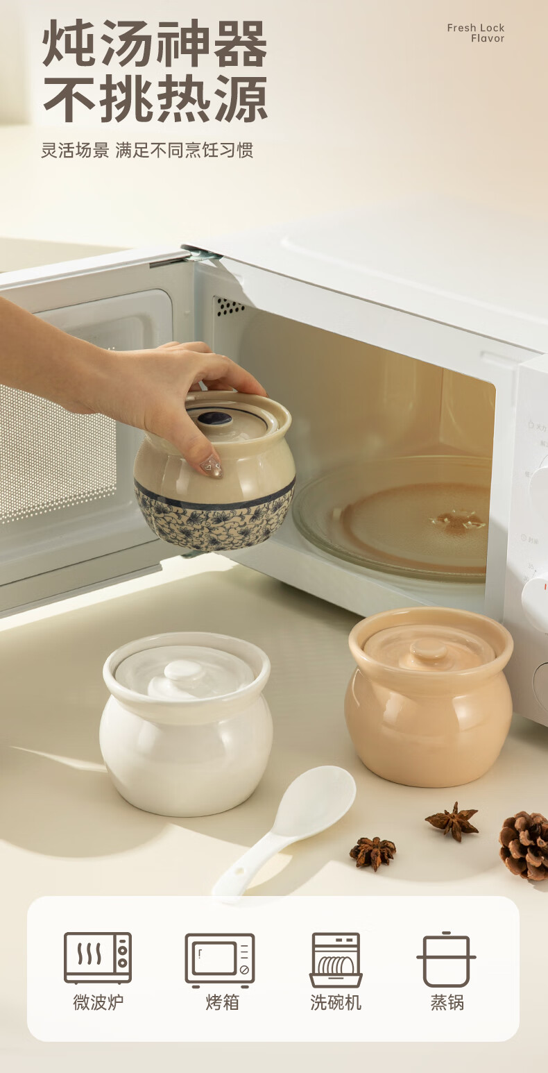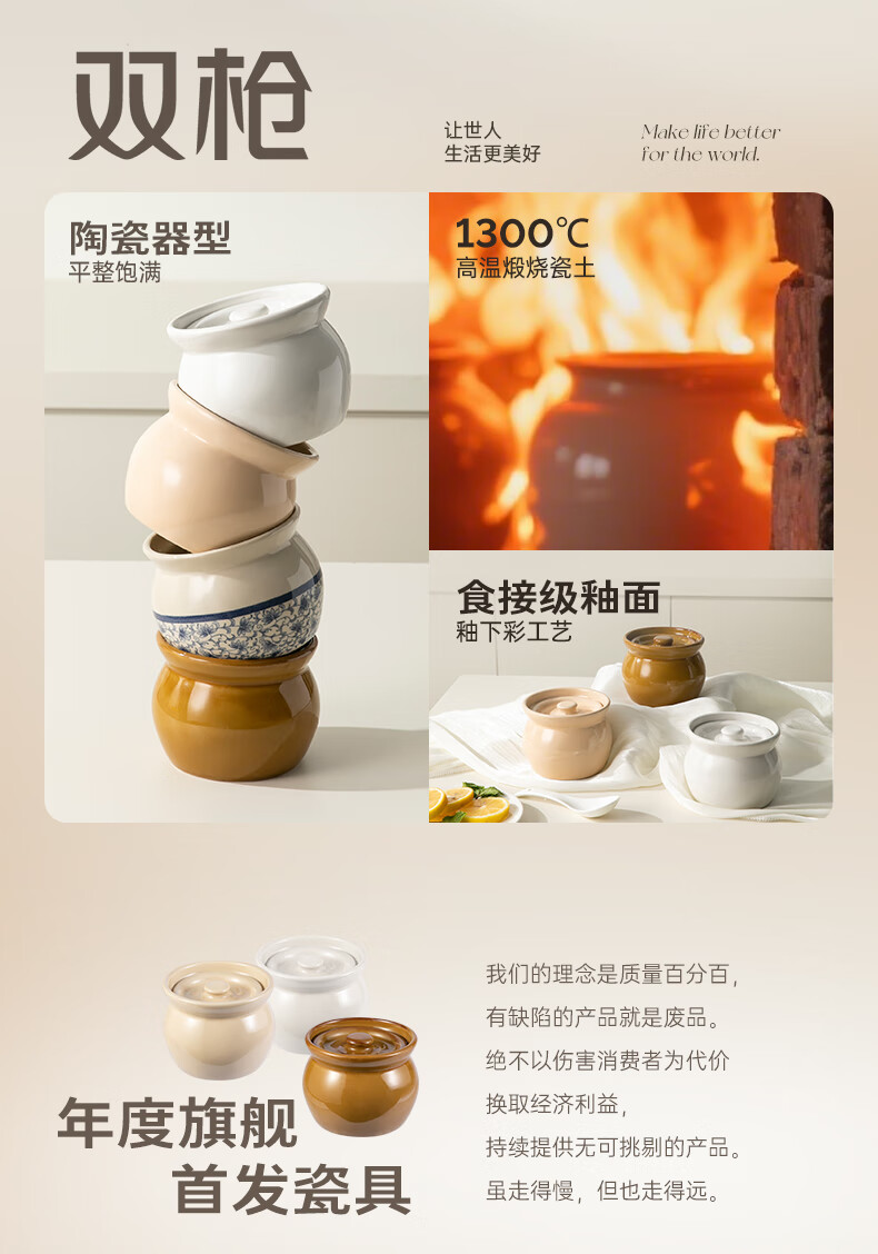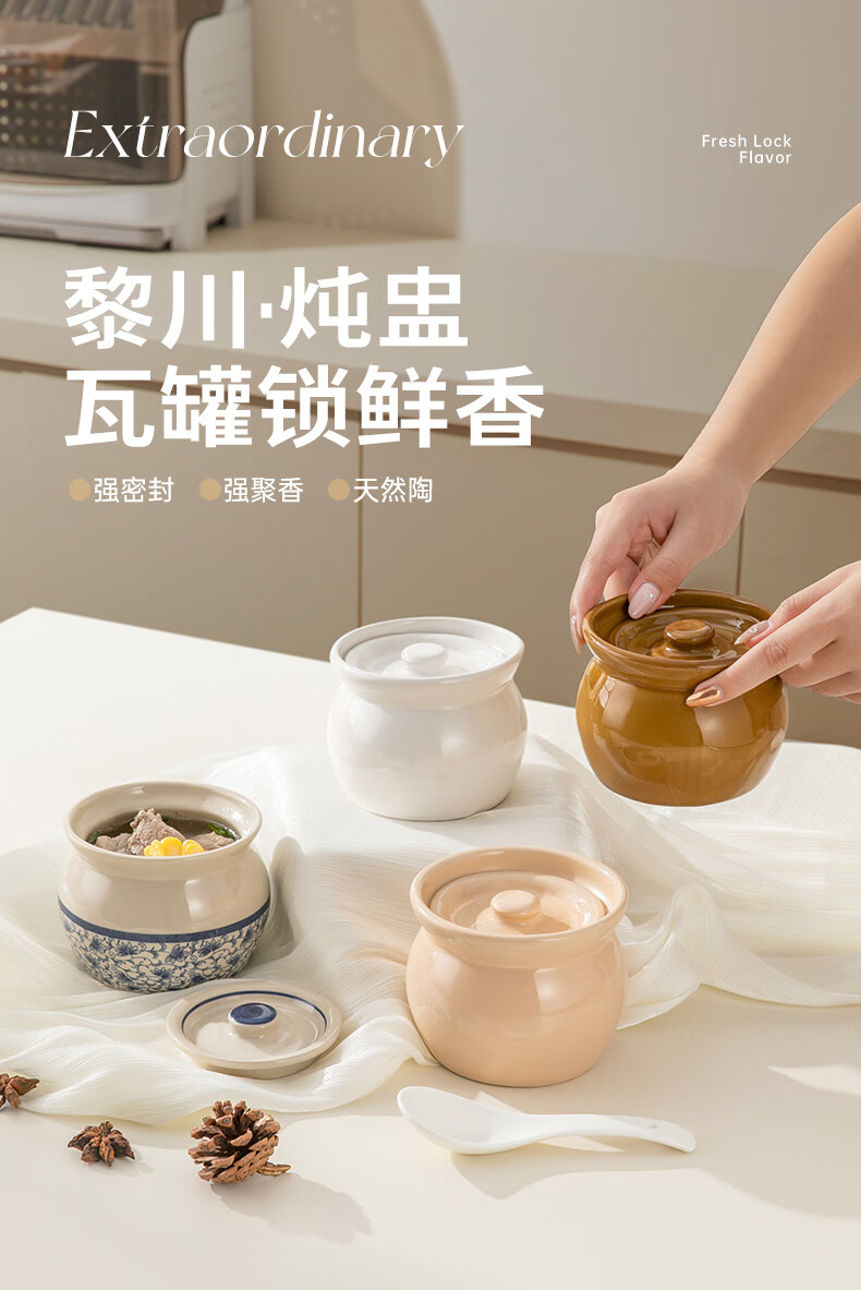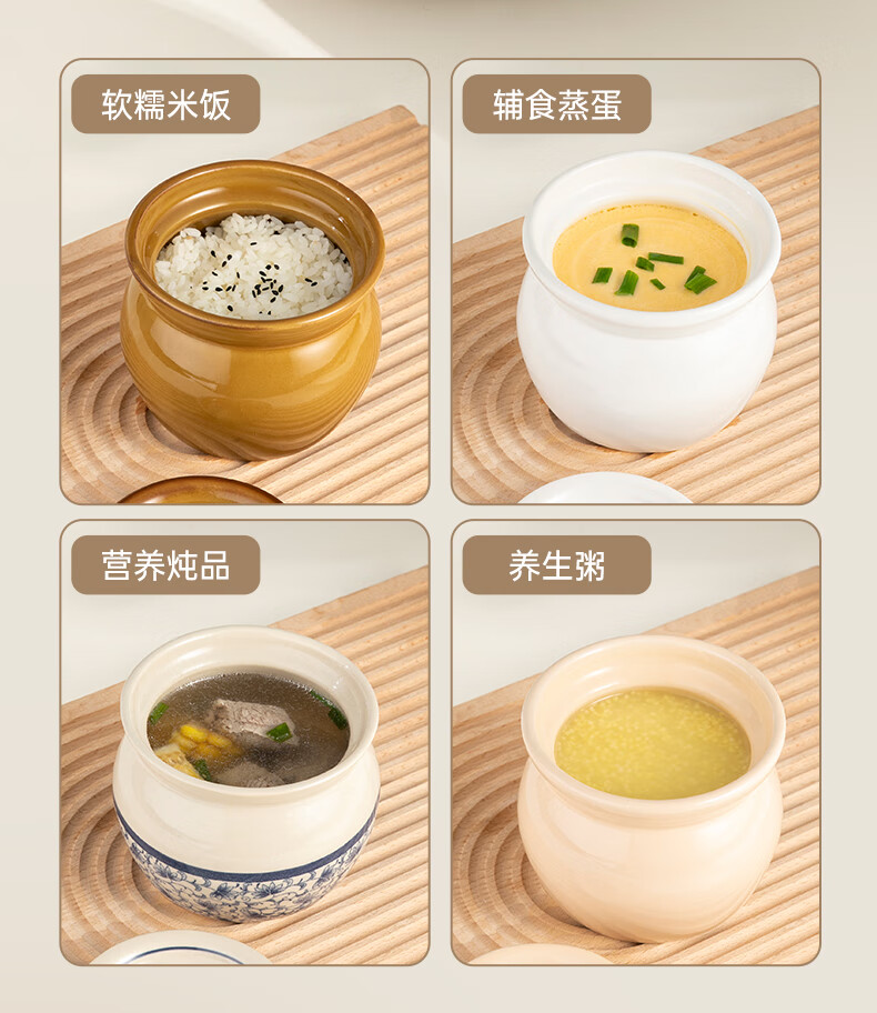 Double gun ceramic stew pot, earthenware pot soup, water-proof household roasted pear cup, bird's nest special earthen pot stew pot, egg custard simmering soup soup cup, hot-selling four-piece set, blue and white + white + brown + pink 410ml