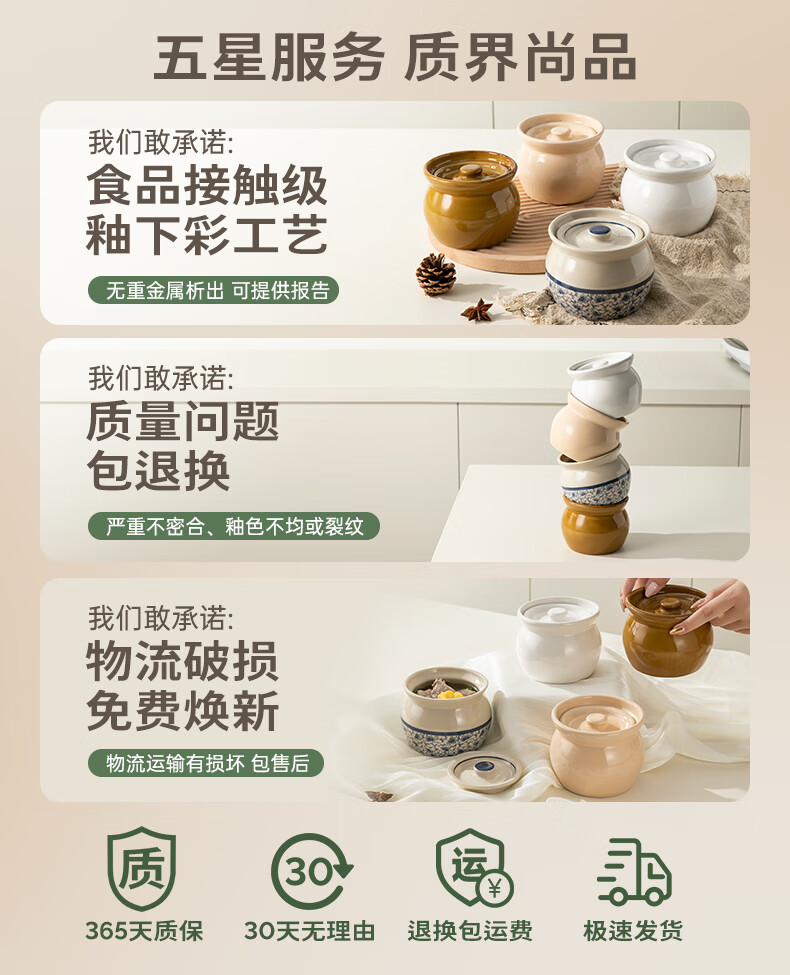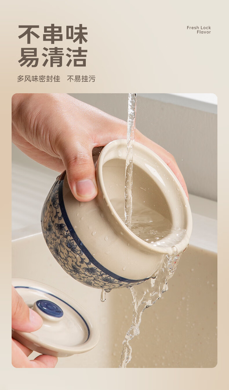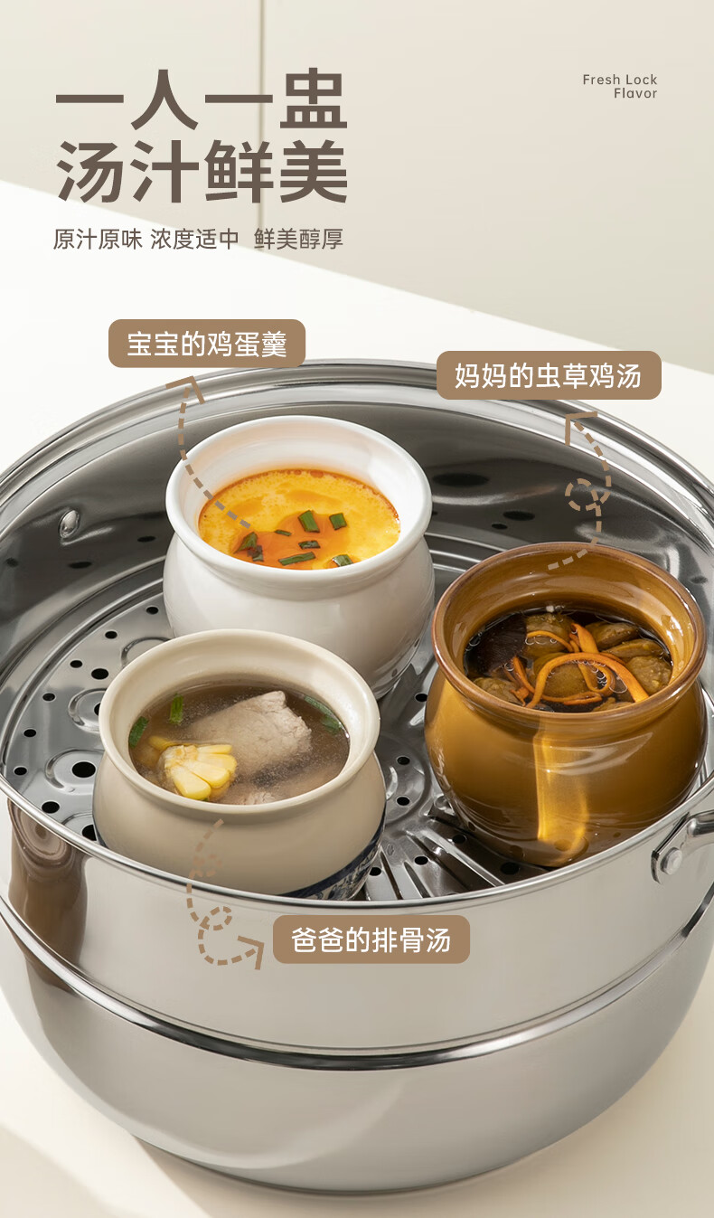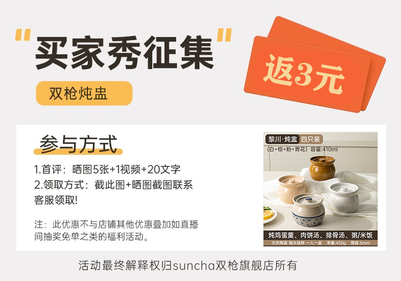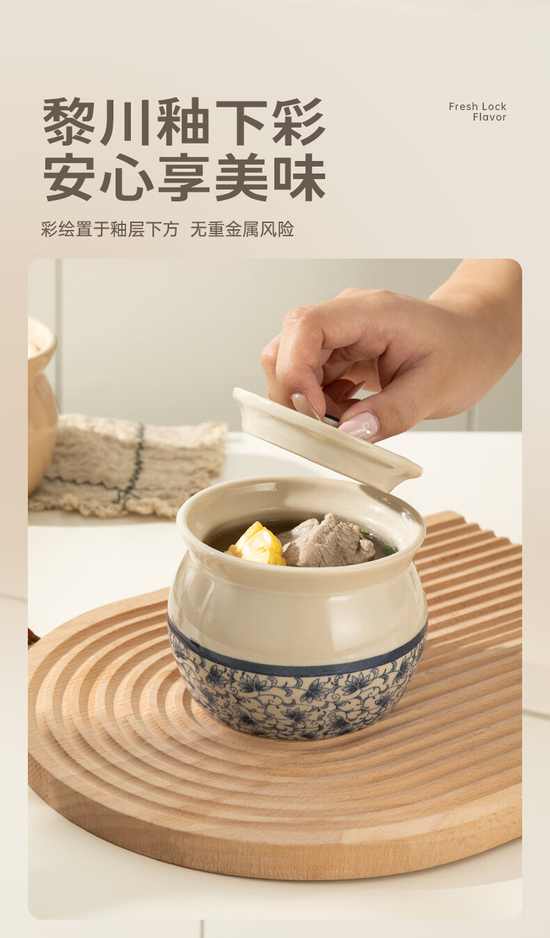 Double gun ceramic stew pot, earthenware pot soup, water-proof household roasted pear cup, bird's nest special earthen pot stew pot, egg custard simmering soup soup cup, hot-selling four-piece set, blue and white + white + brown + pink 410ml